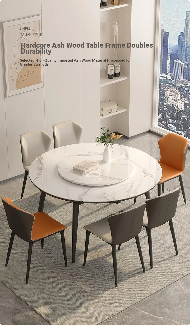 51.18in Dining Table +6 Chairs [Enoch Rock Plate + Fangyuan Dual-use]]