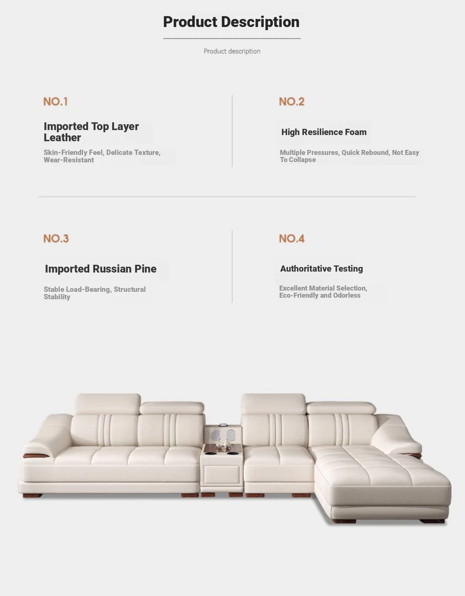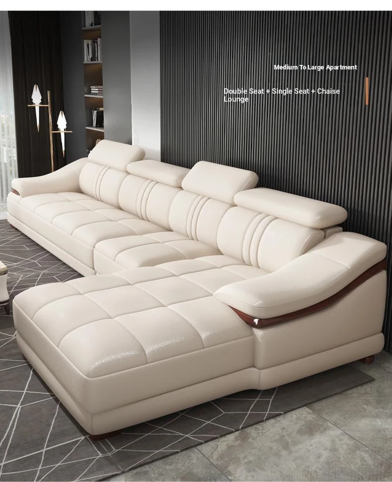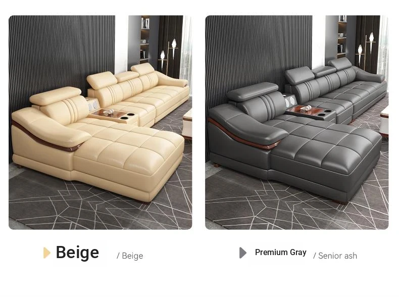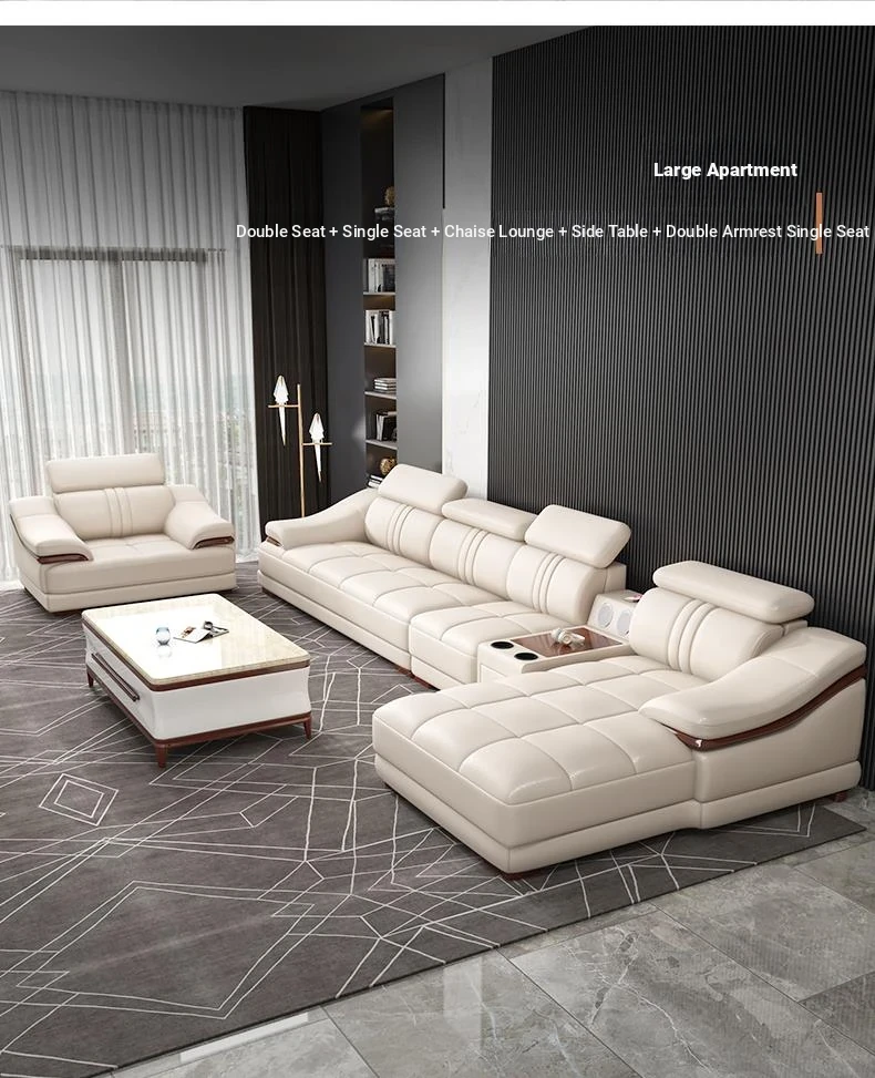 Free Shipping to Xinjiang - Genuine Leather Sofa in Modern Minimalist Design, Featuring Top-Grade Cowhide; Perfect for Any Living Room Size - Versatile Leather Upholstered Sofa Set