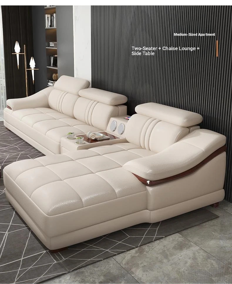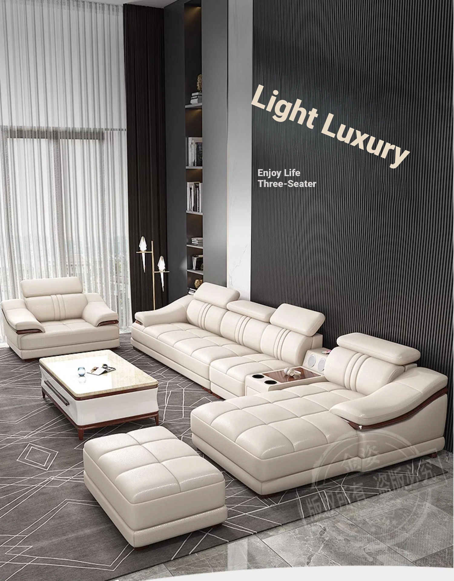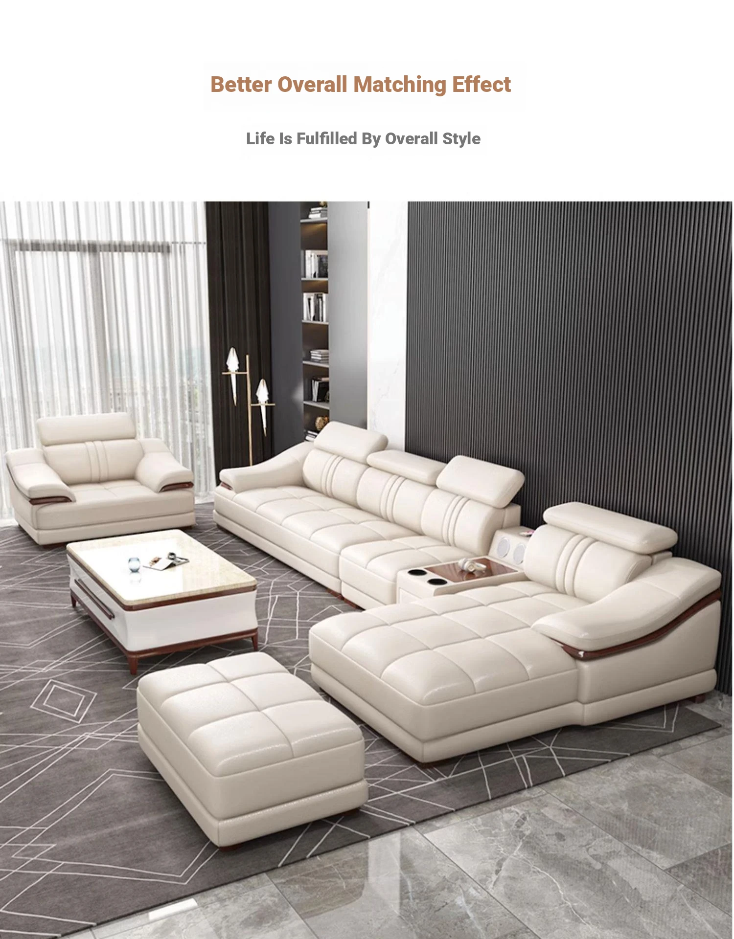 Free Shipping to Xinjiang - Genuine Leather Sofa in Modern Minimalist Design, Featuring Top-Grade Cowhide; Perfect for Any Living Room Size - Versatile Leather Upholstered Sofa Set