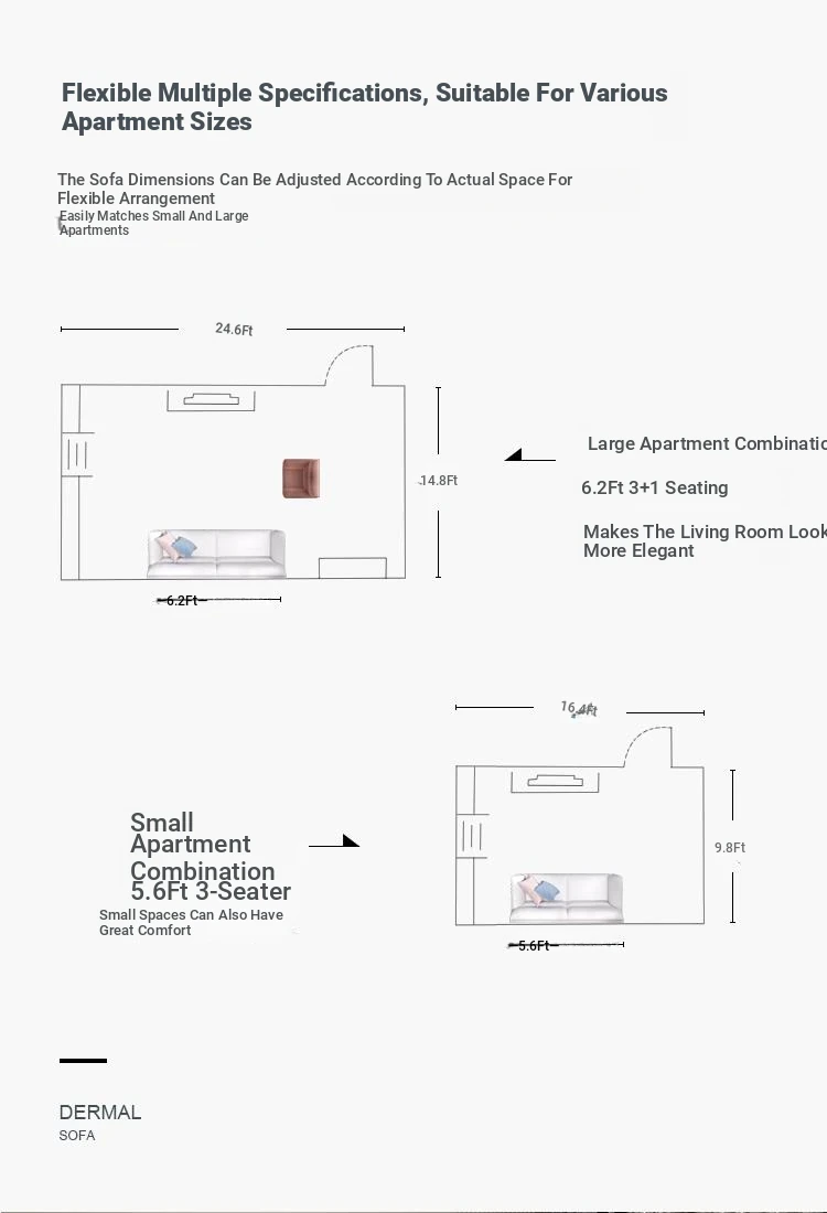 Four-seat 82.68 in-Selected Leather Latex Pad