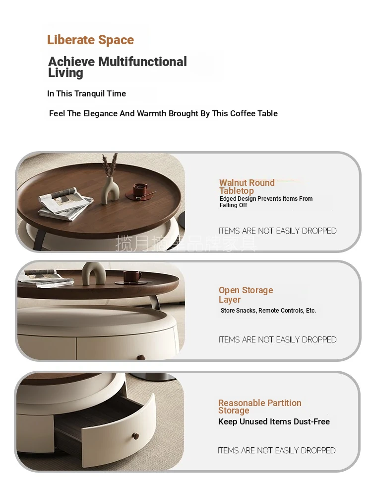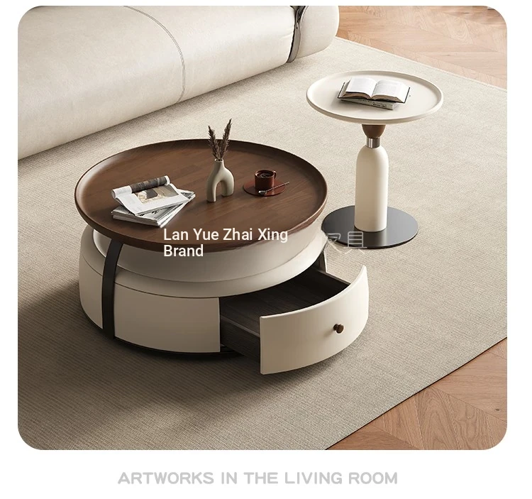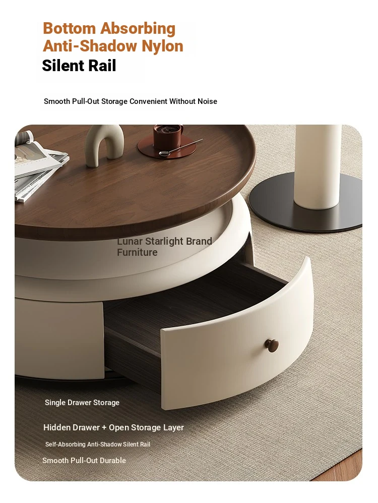 French Cream Style Small Space Living Room Coffee Table Set - Minimalist Piano Lacquer Storage Design by Designer, New Arrival