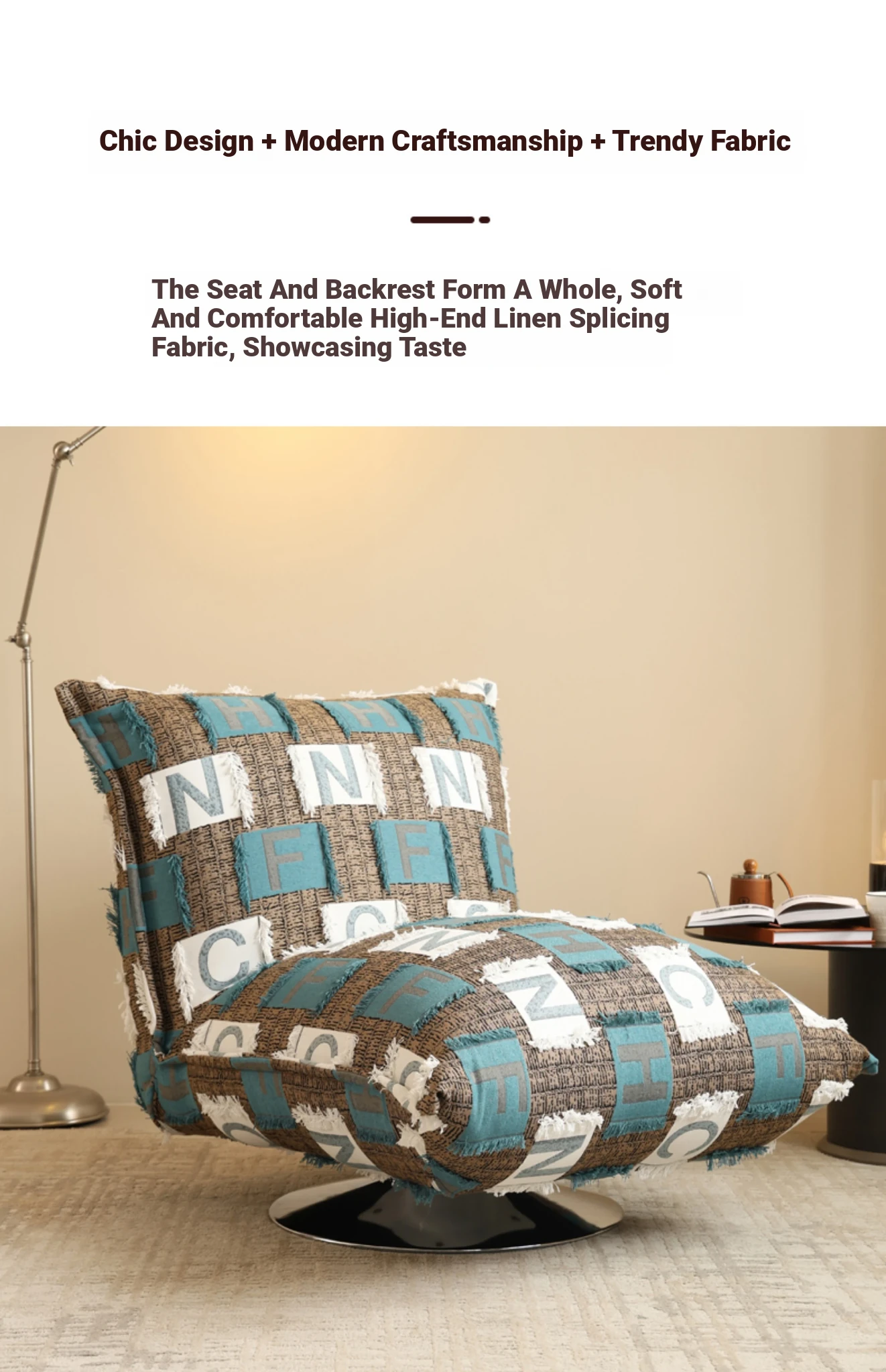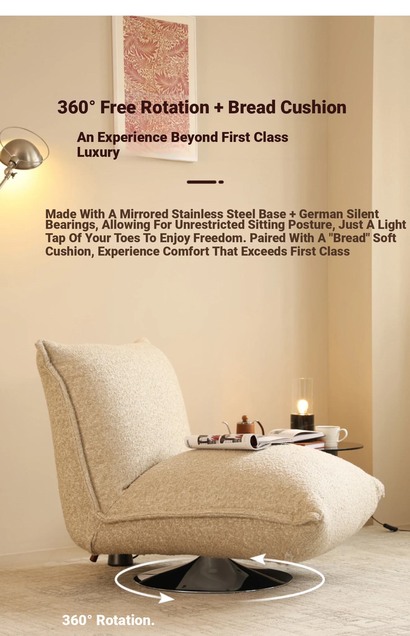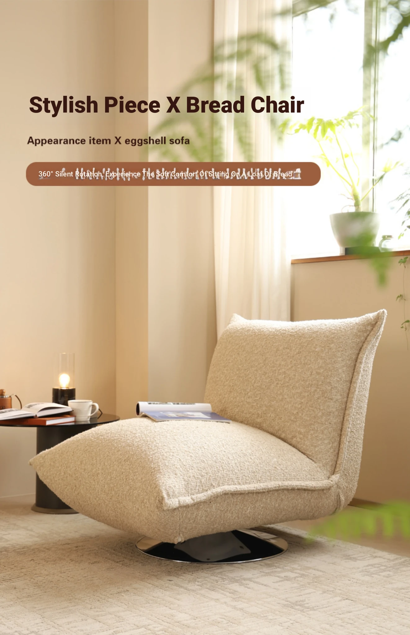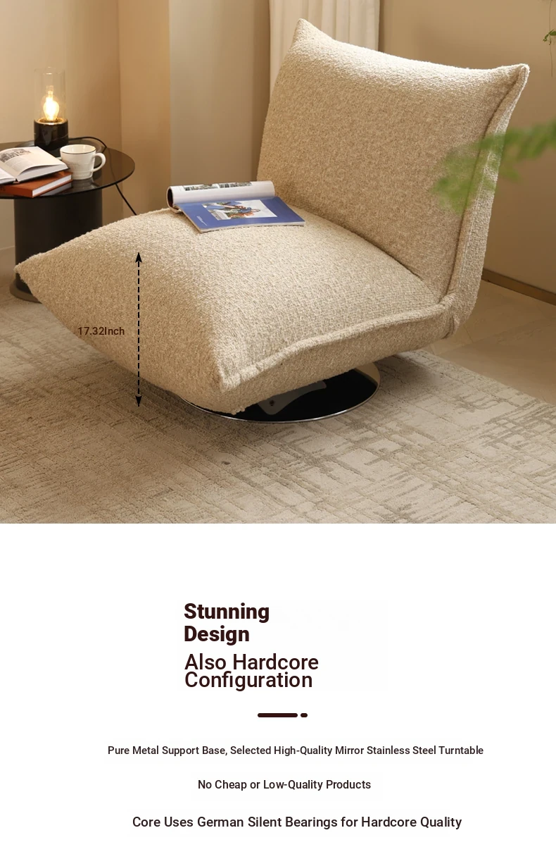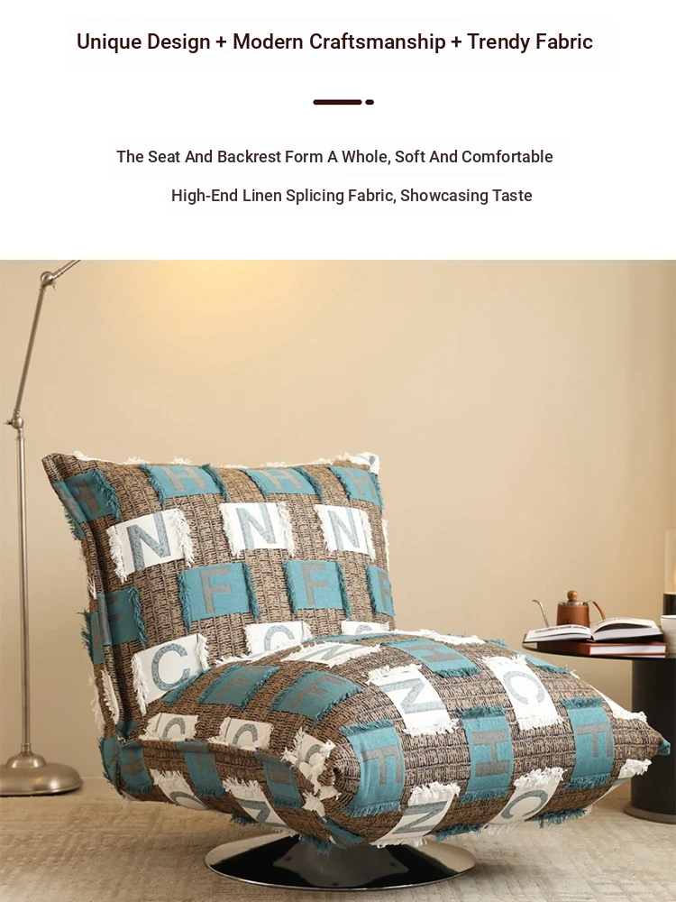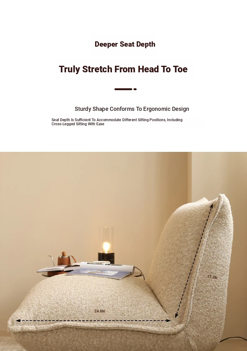 French Creamy Lazy Sofa - Cozy Single Lounge Chair for Balcony or Living Room, Adorable Fabric Cloud Bread Sofa for Relaxation