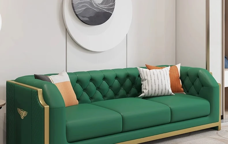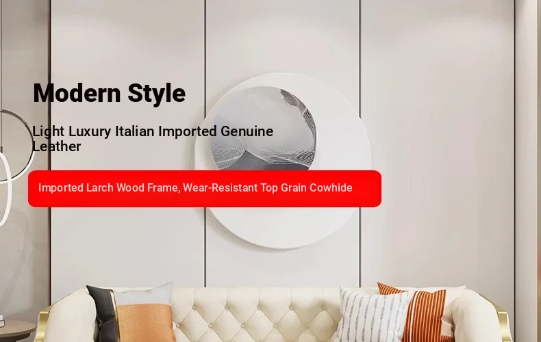 Italian Luxury Genuine Leather Sofa for Small Living Rooms - Premium Top-Grain Cowhide, Modern Minimalist Design with Straight-Line Stitching for Elegant Home Décor