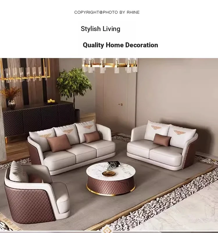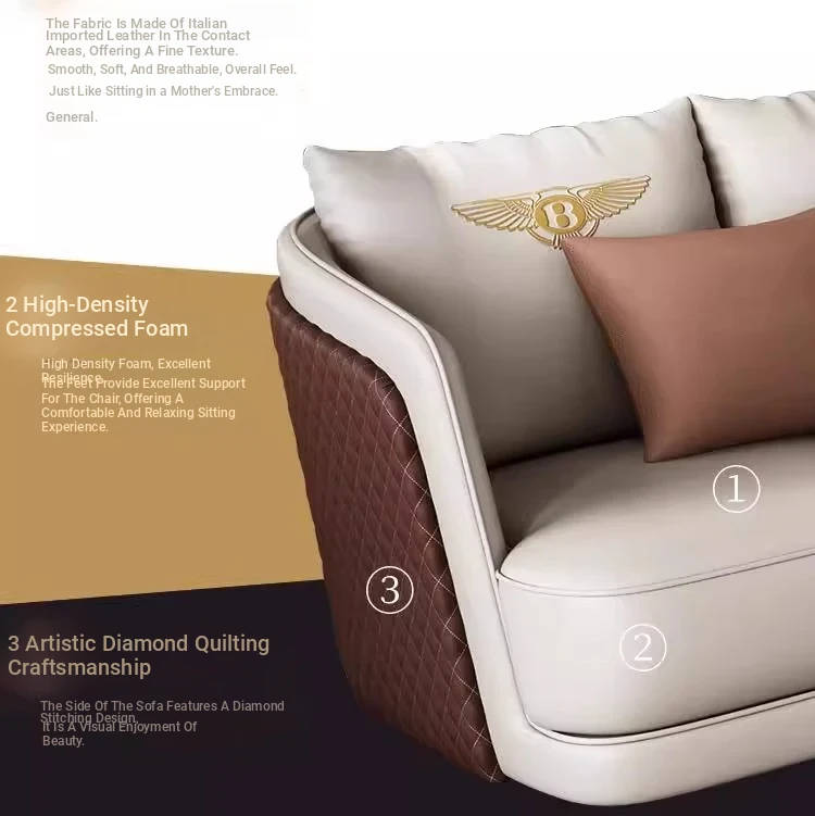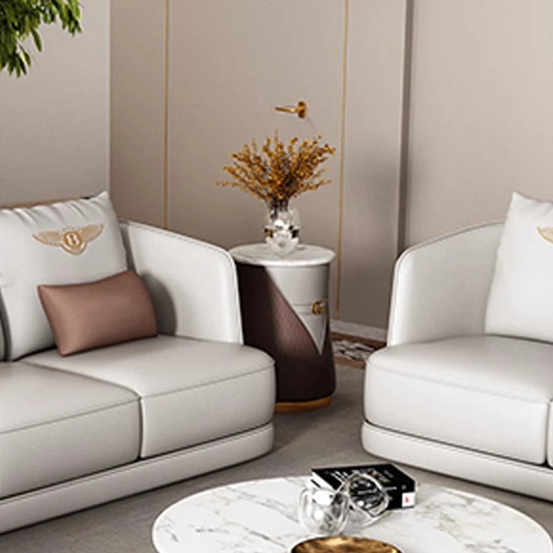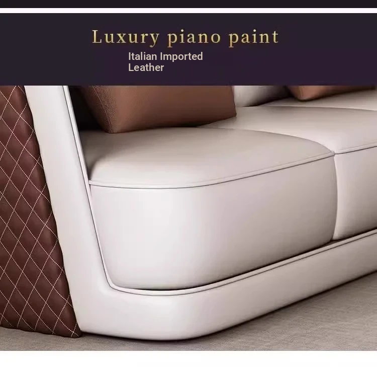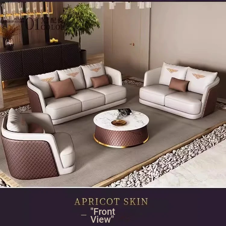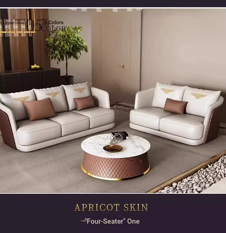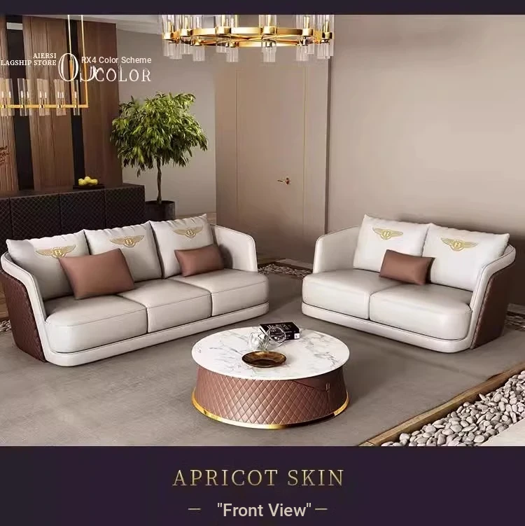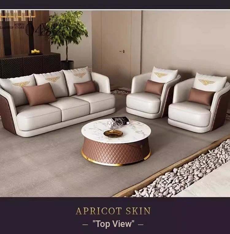Italian Luxury Genuine Leather Sofa Set - Premium Top Grain Leather, Compact Design for Small Living Rooms, Stylish Designer Sofa and Coffee Table Combo for Home Use