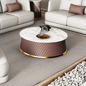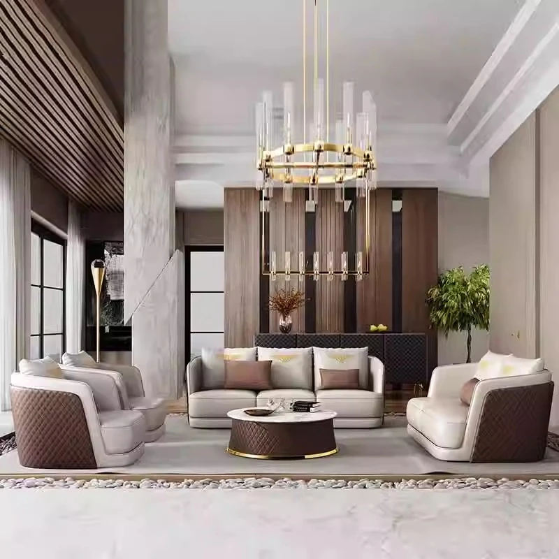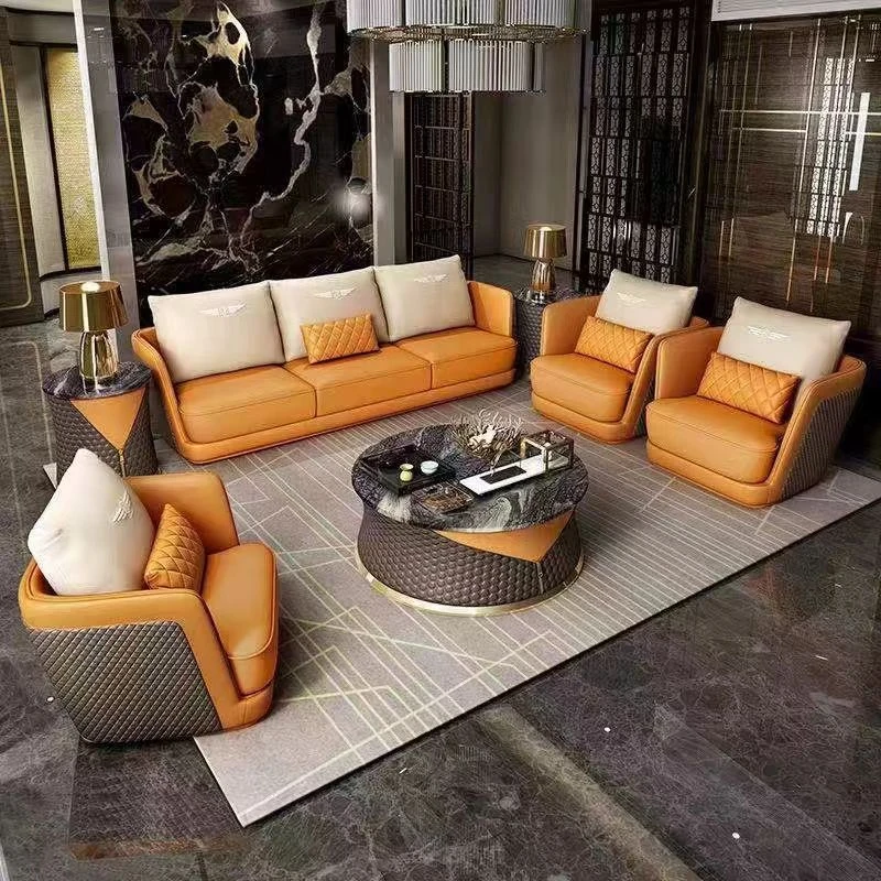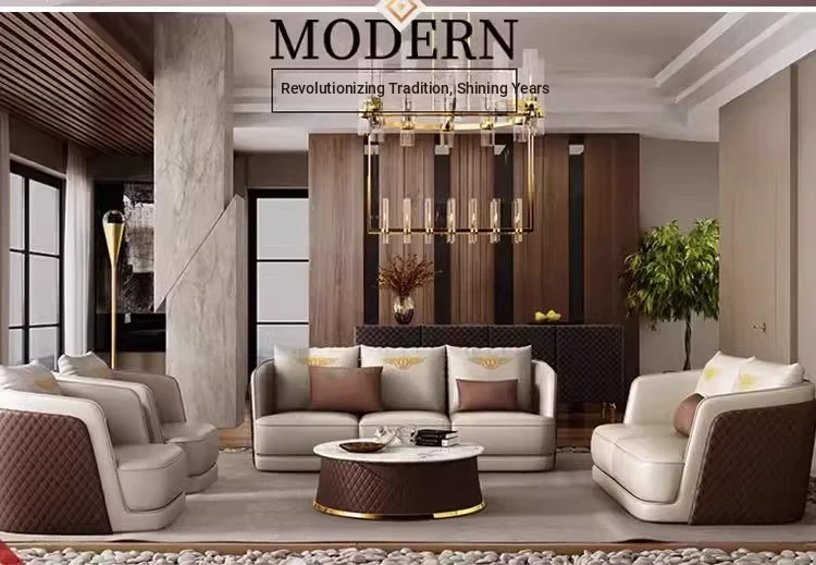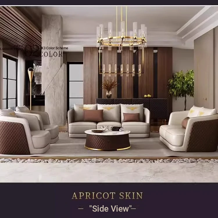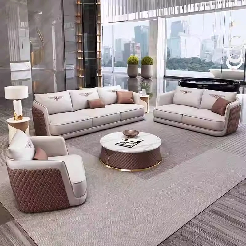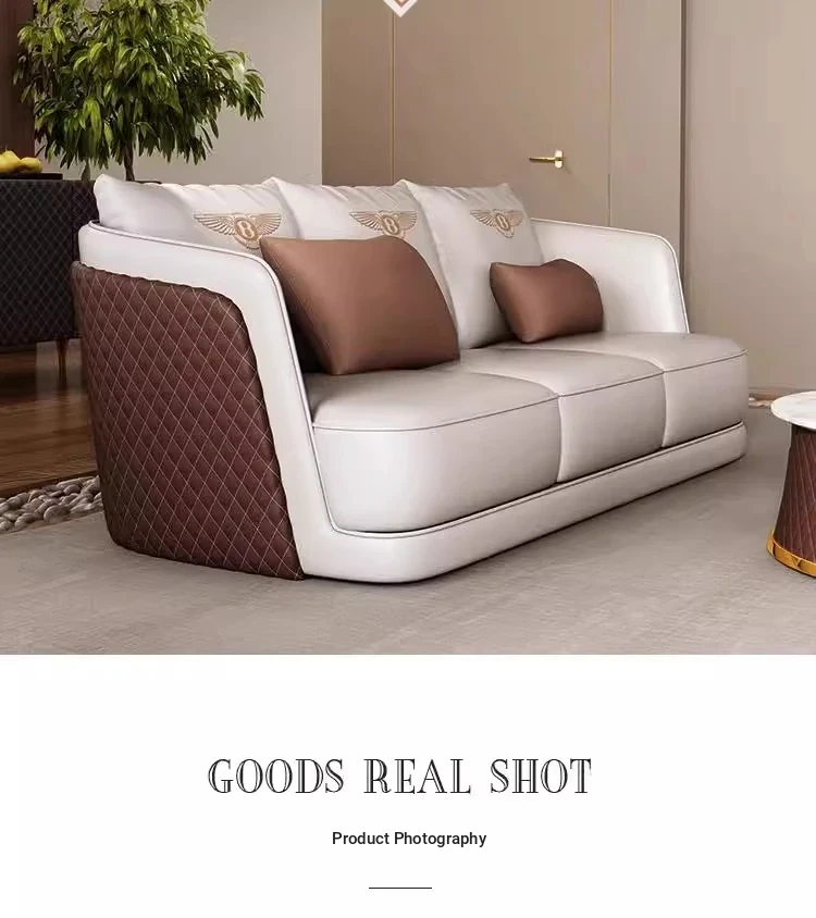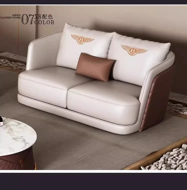 Italian Luxury Genuine Leather Sofa Set - Premium Top Grain Leather, Compact Design for Small Living Rooms, Stylish Designer Sofa and Coffee Table Combo for Home Use