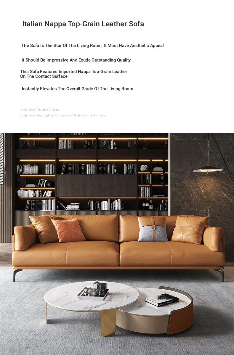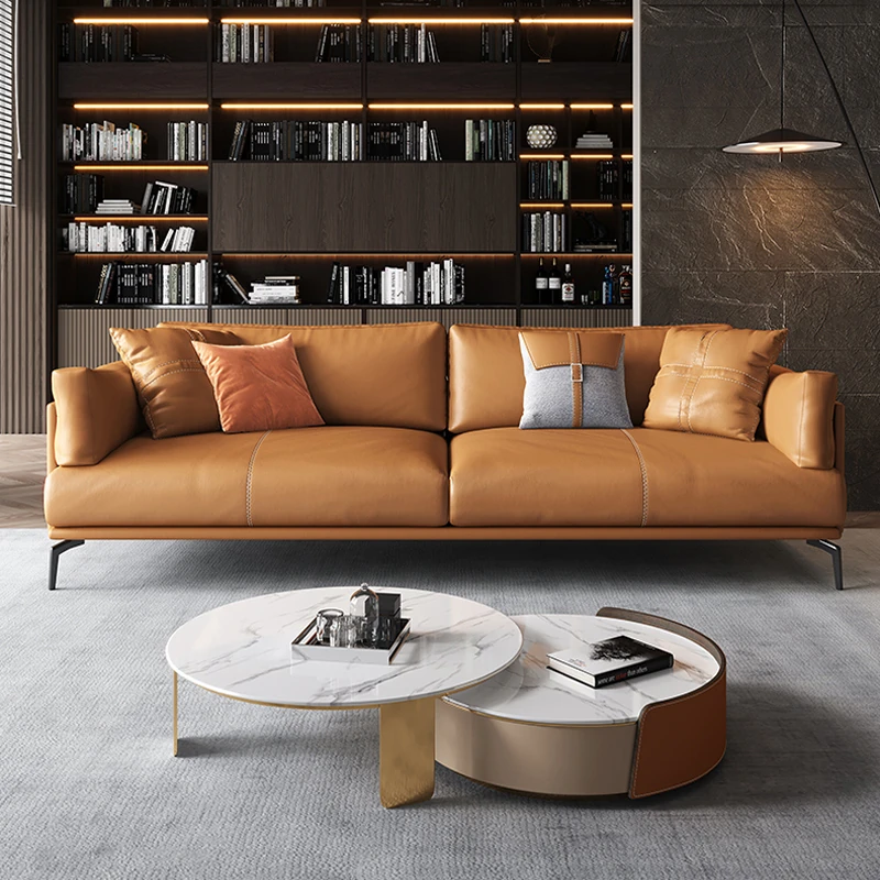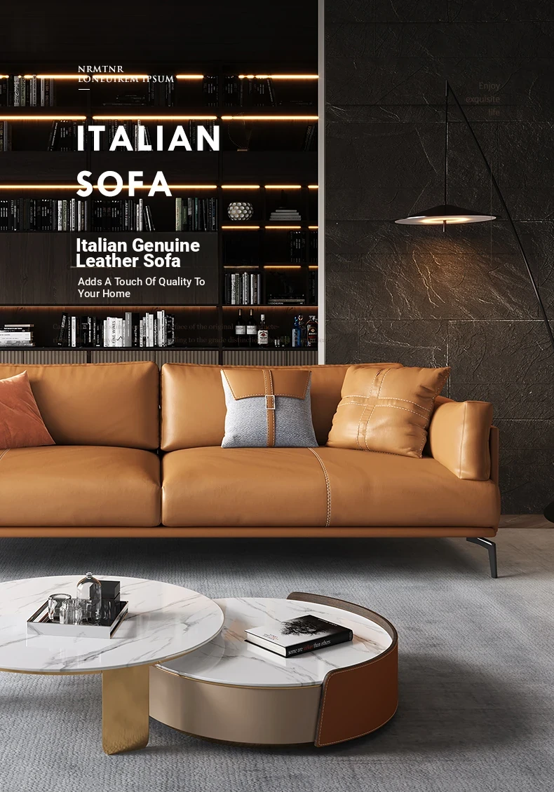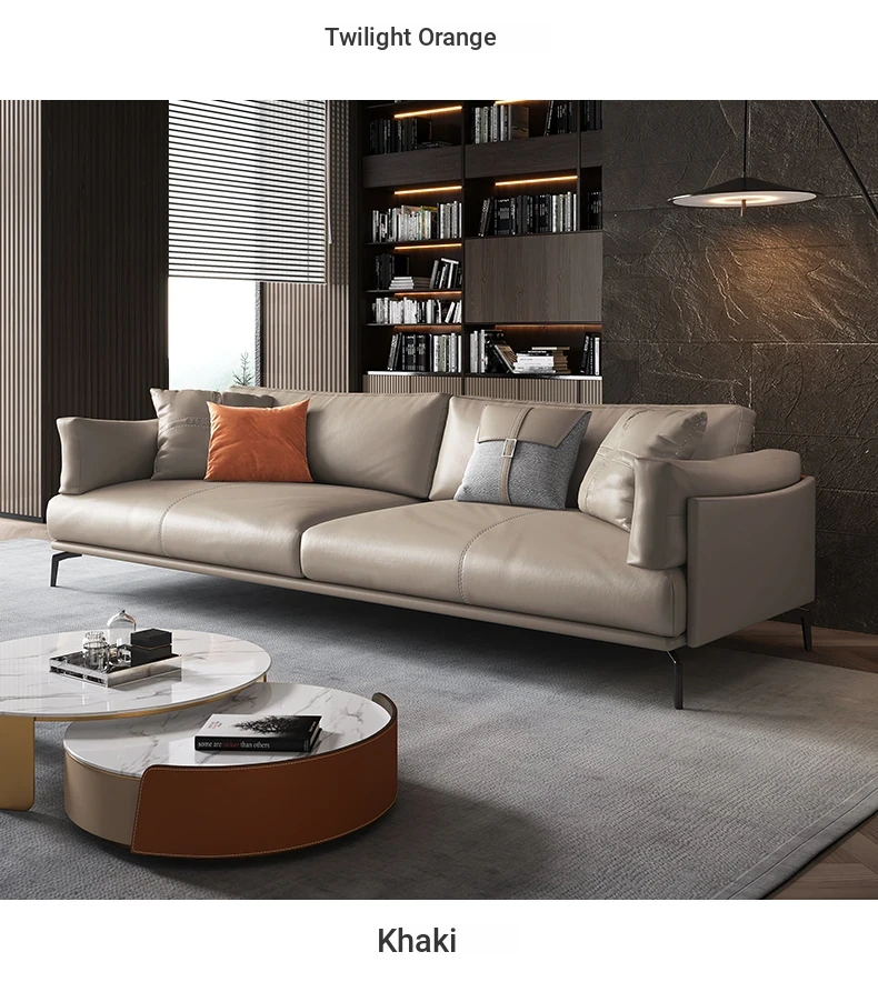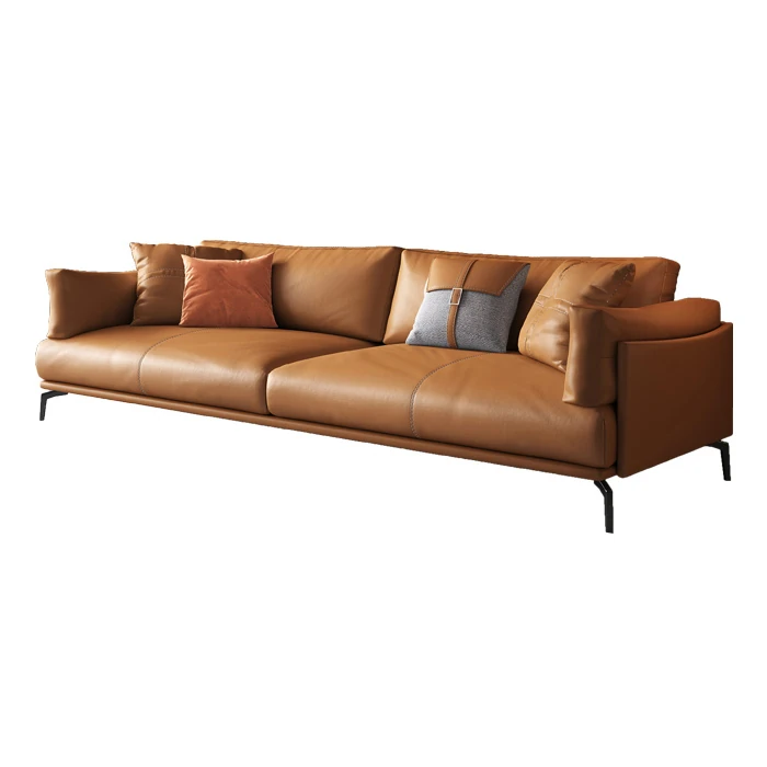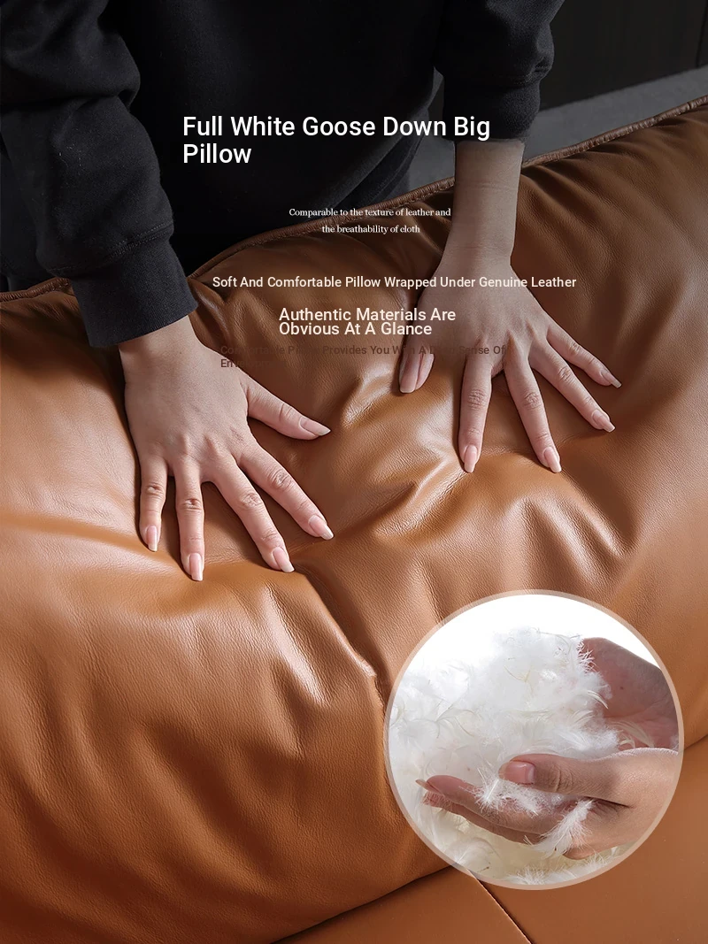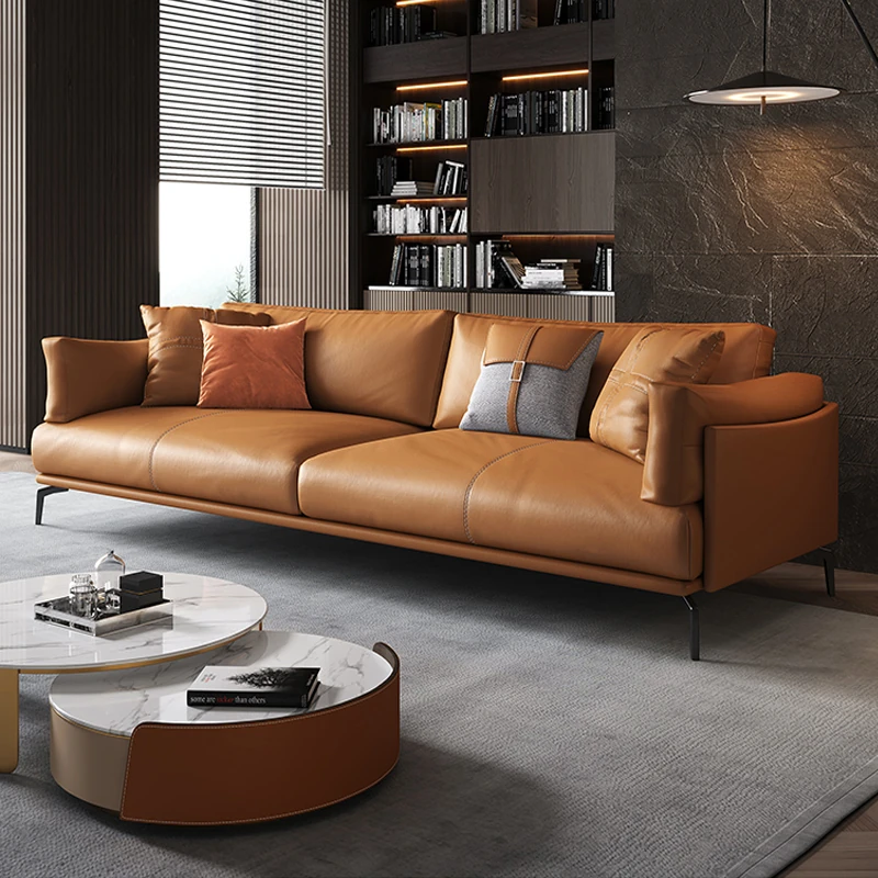 Italian Luxury Genuine Leather Sofa - Top Grain Cowhide, Streamlined Design for Small Spaces, Nordic Minimalist Modern Living Room Sofa