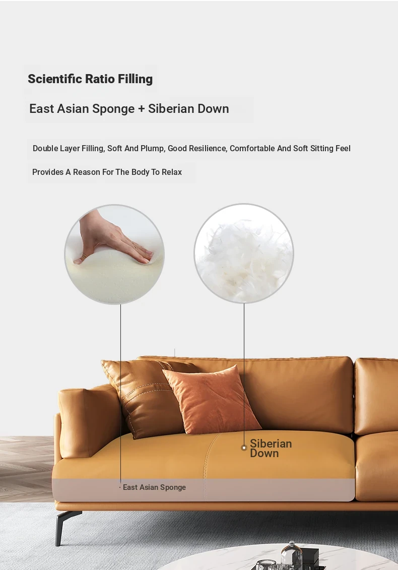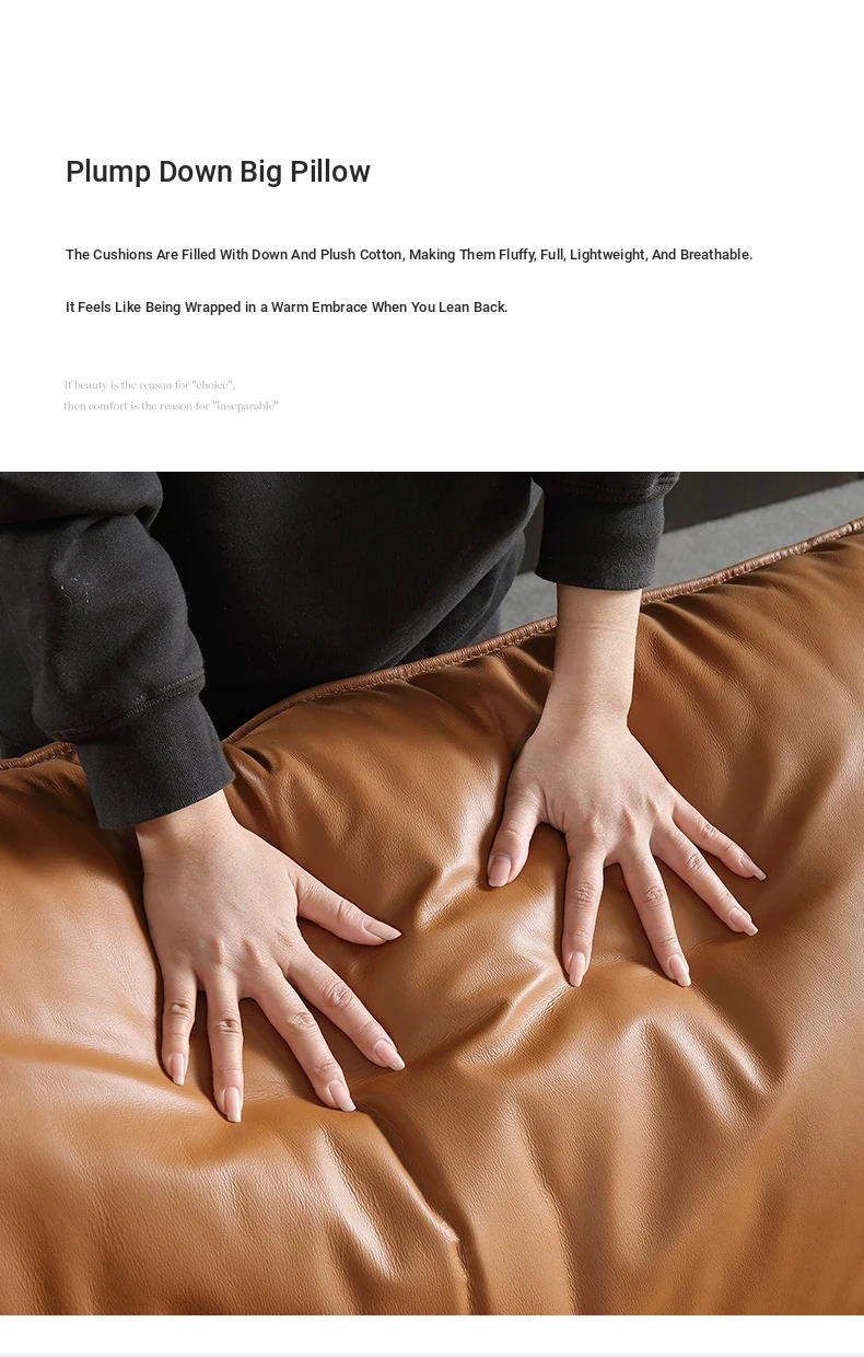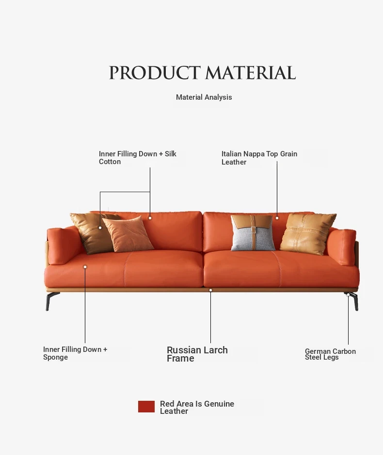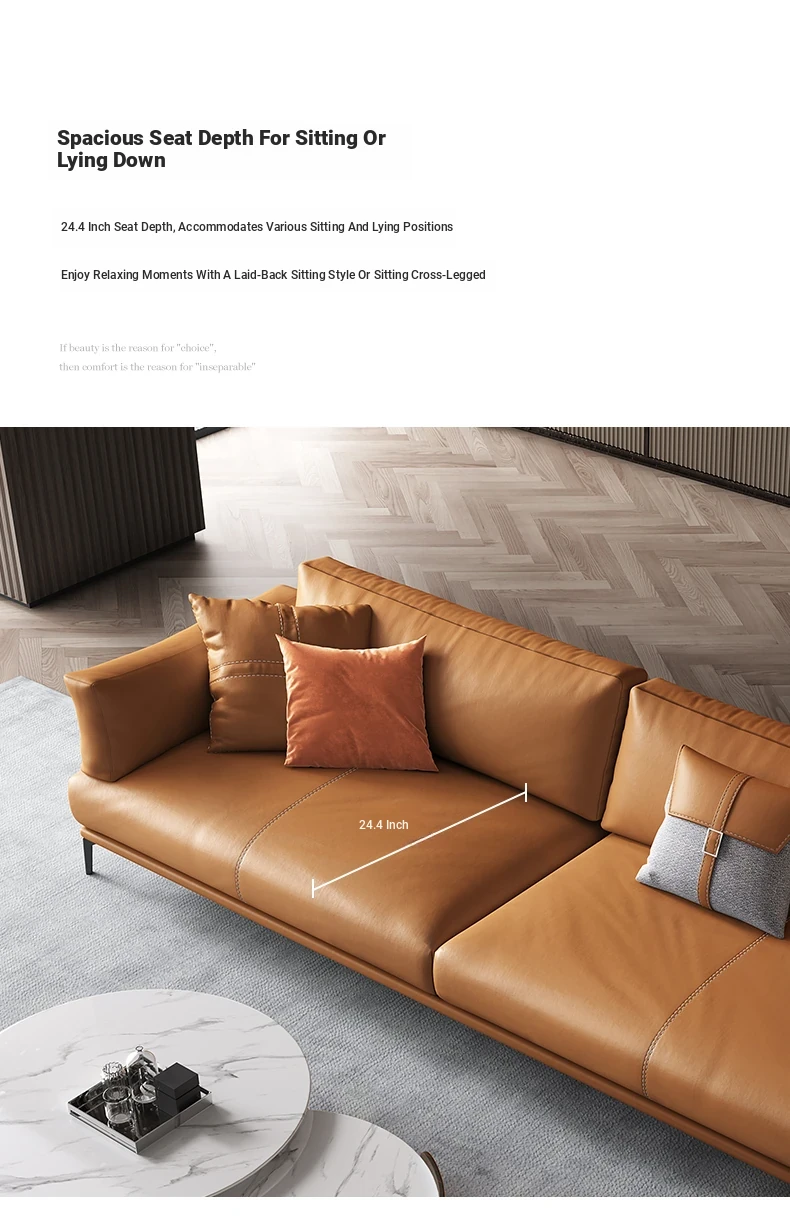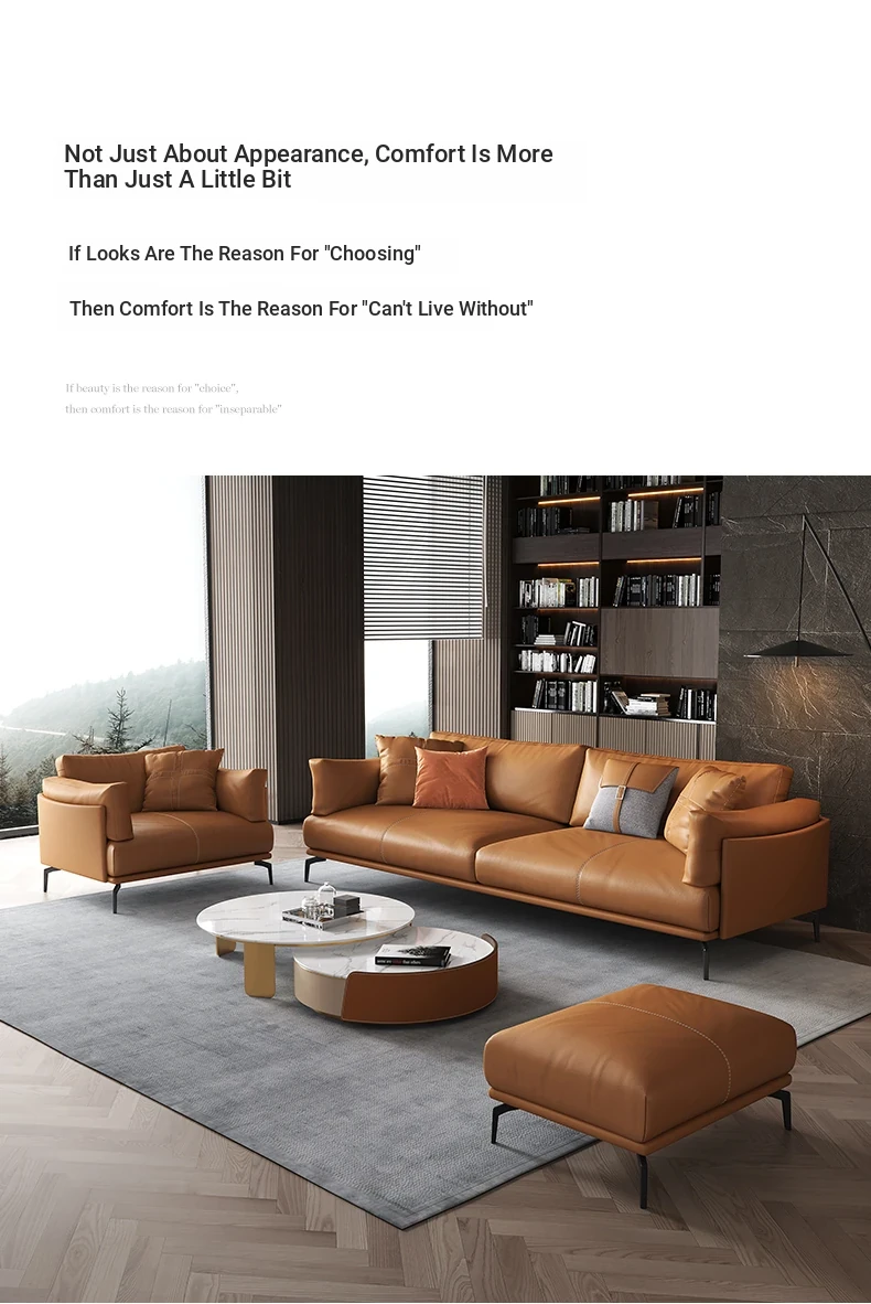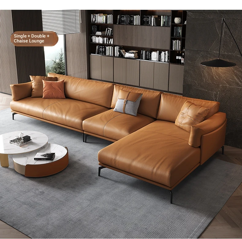 Italian Luxury Genuine Leather Sofa - Top Grain Cowhide, Streamlined Design for Small Spaces, Nordic Minimalist Modern Living Room Sofa