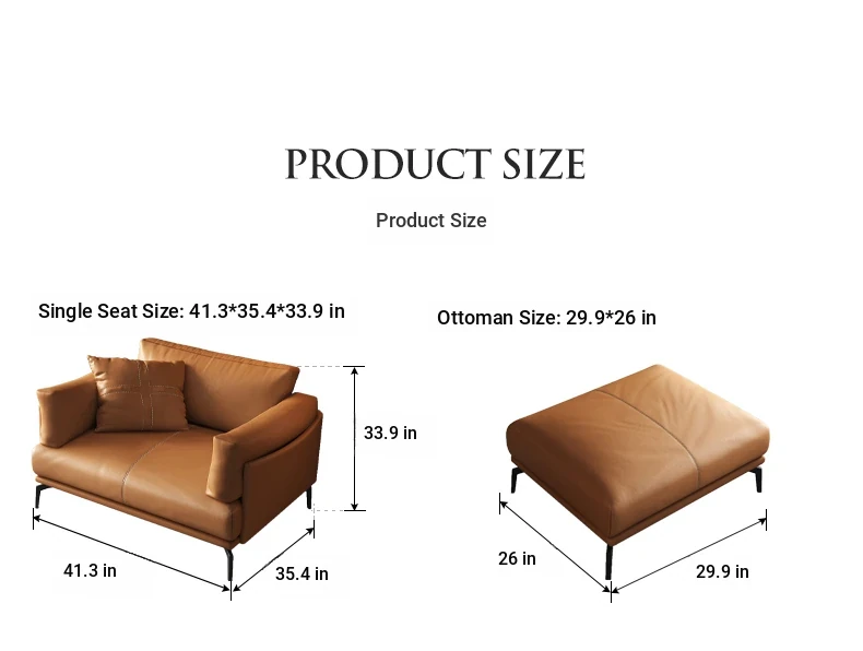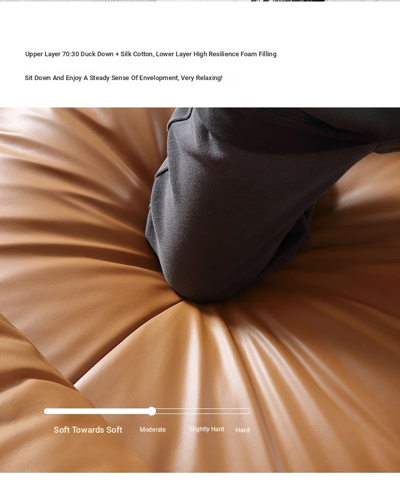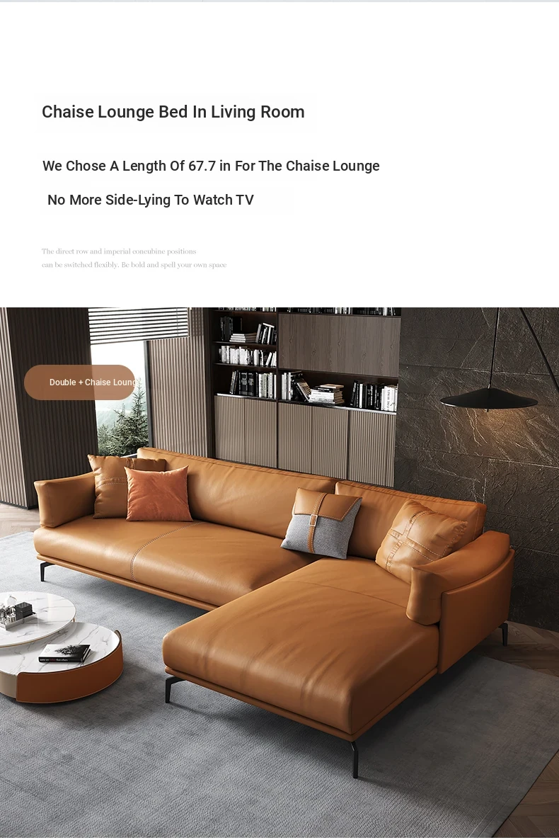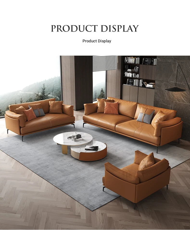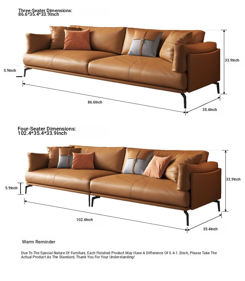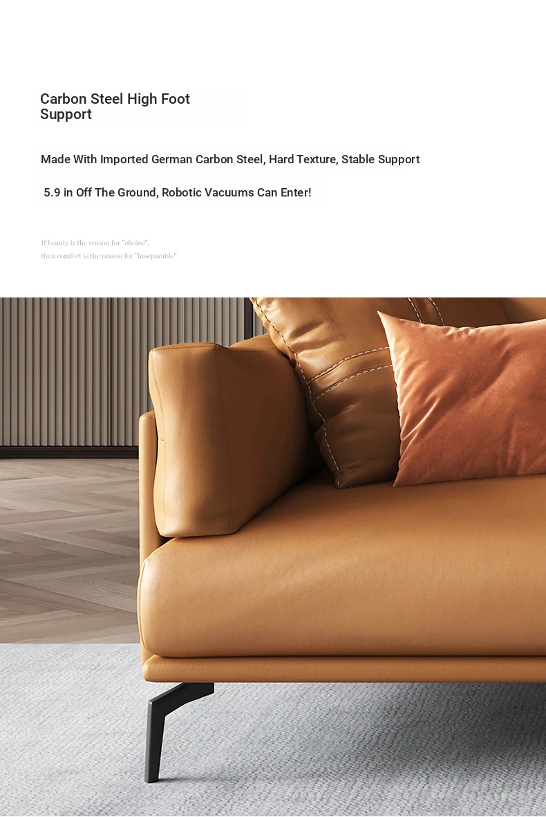 Italian Luxury Genuine Leather Sofa - Top Grain Cowhide, Streamlined Design for Small Spaces, Nordic Minimalist Modern Living Room Sofa