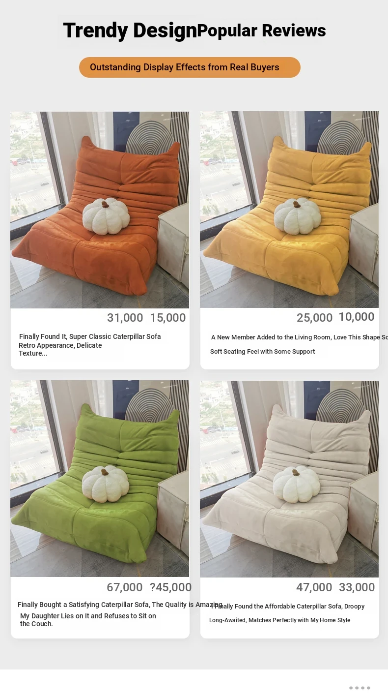 Italian Minimalist Caterpillar Lazy Sofa - Perfect for Small Spaces! Ideal for Bedrooms, Living Rooms, and Balconies. Comfortable Single Chair for Ultimate Relaxation.