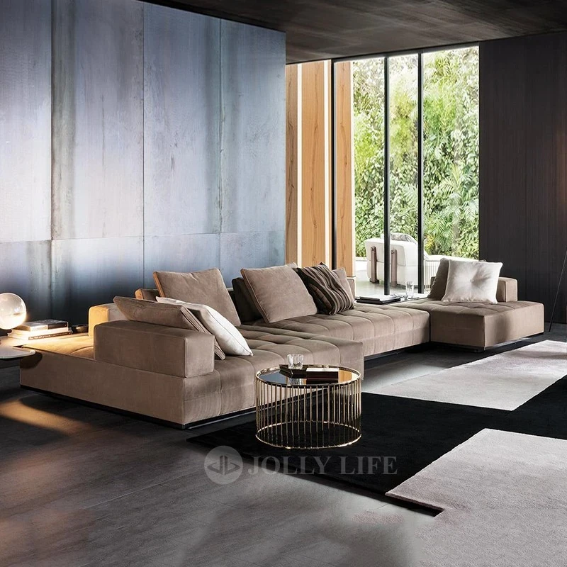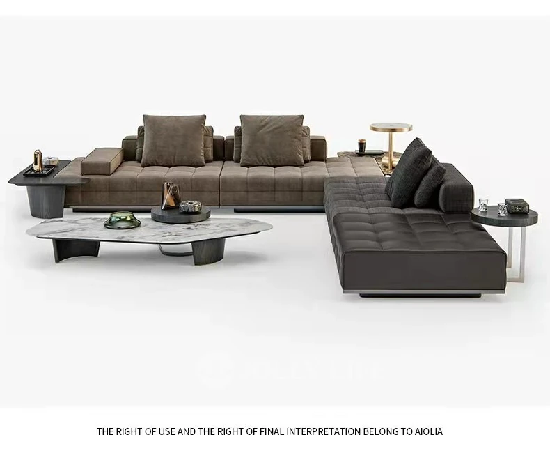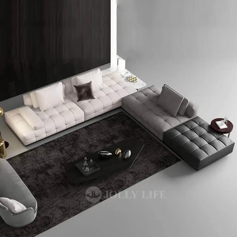 Italian Minimalist Genuine Leather Modular Sofa - Modern Luxury Corner Cube Couch for Small to Medium Living Rooms, Crafted with Premium Cowhide.