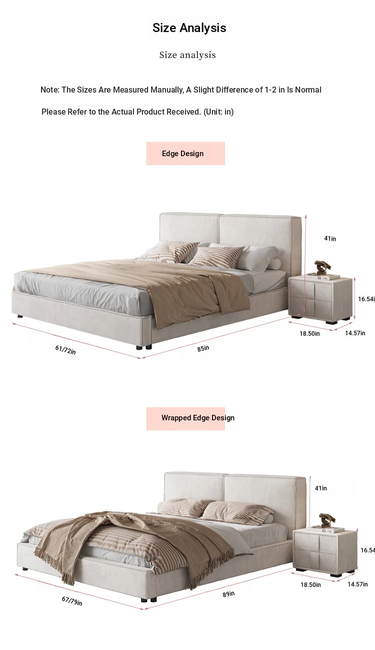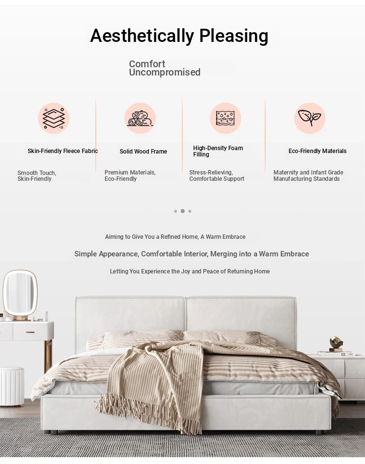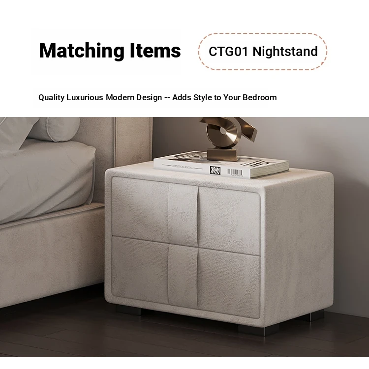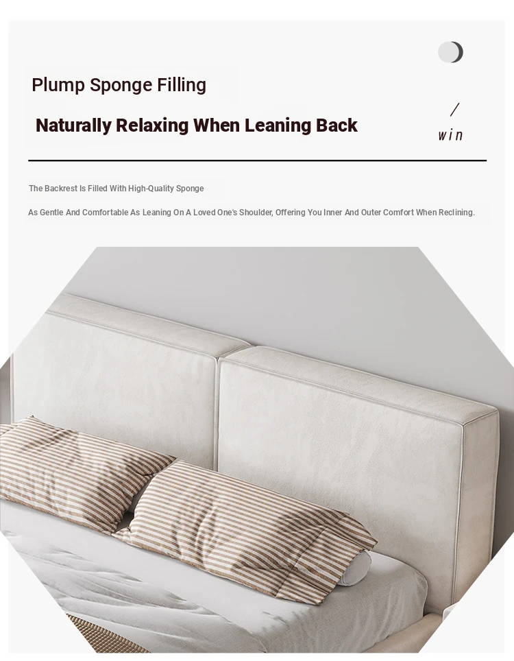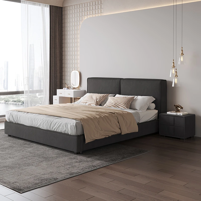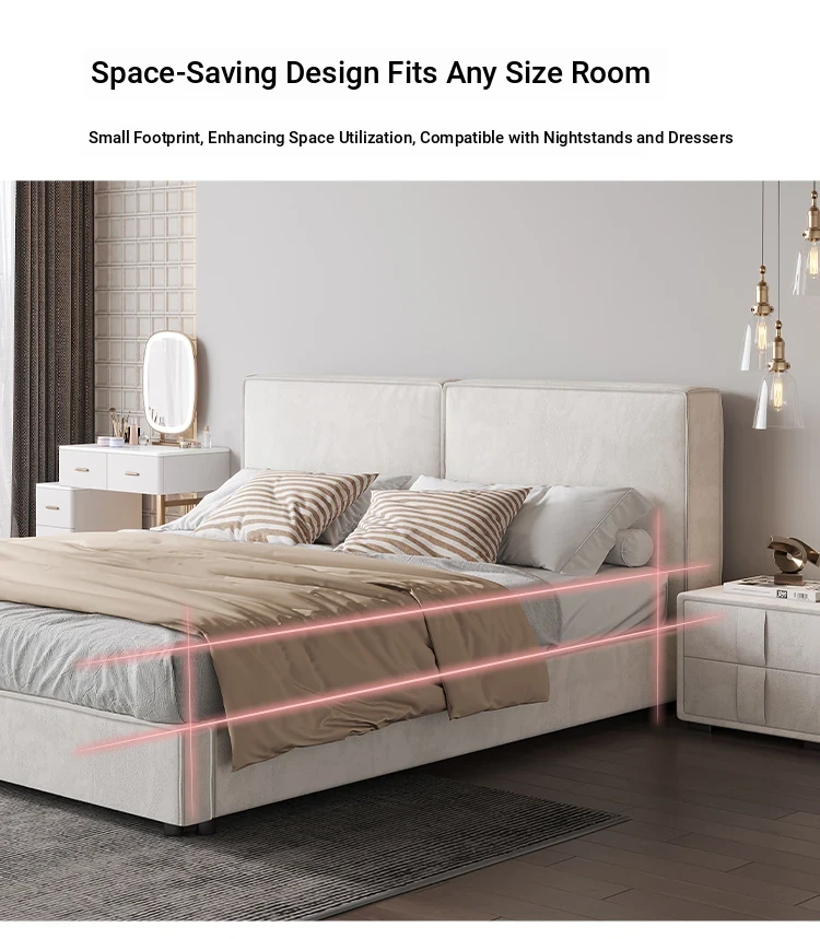 Italian Minimalist Luxury Velvet Tofu Block Bed - Chic Cream Double Bed for Master Bedroom, Perfect for Trendy Ins Aesthetics and Simplistic Elegance