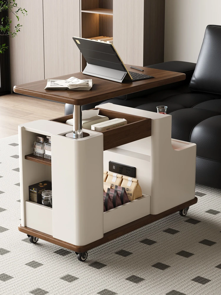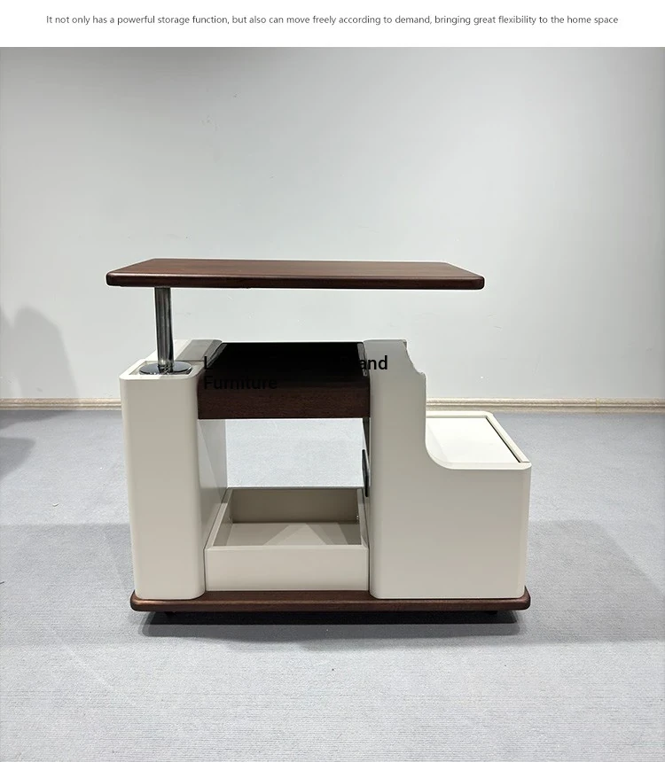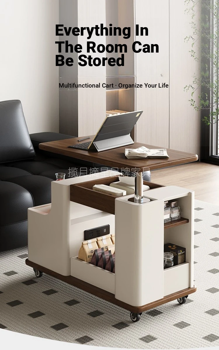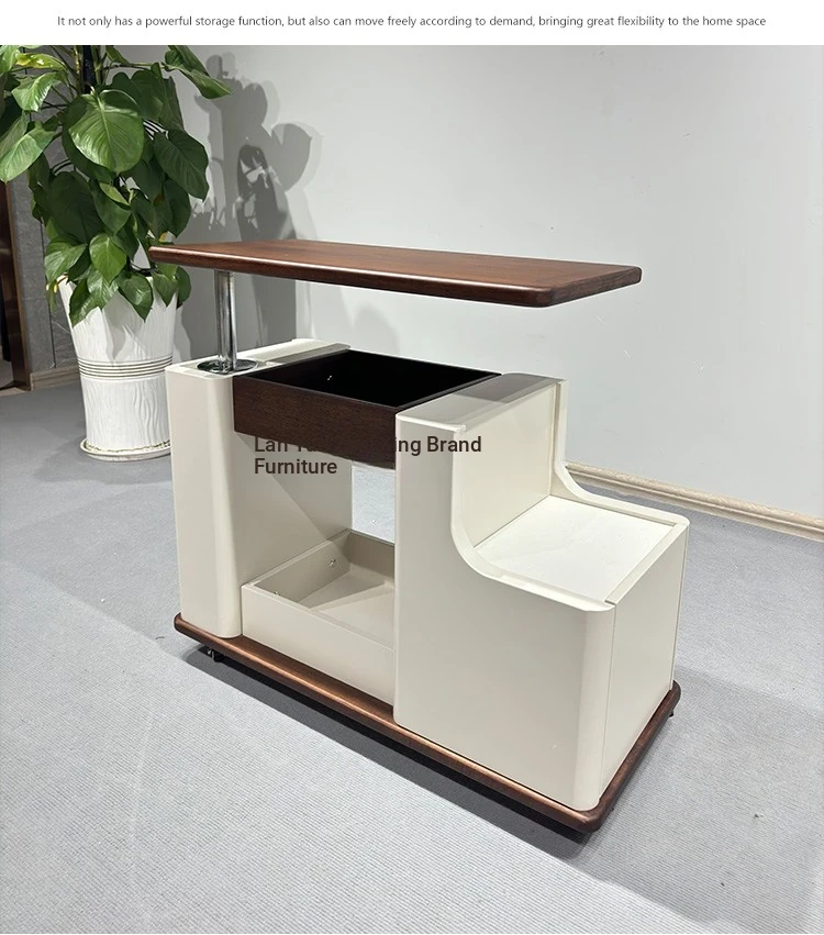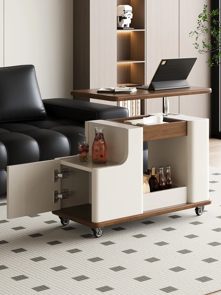 Italian Minimalist Movable Solid Wood Tea Cart - Versatile, Creative, and Height-Adjustable Sofa Side Table for a Chic Living Space