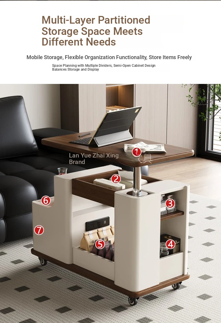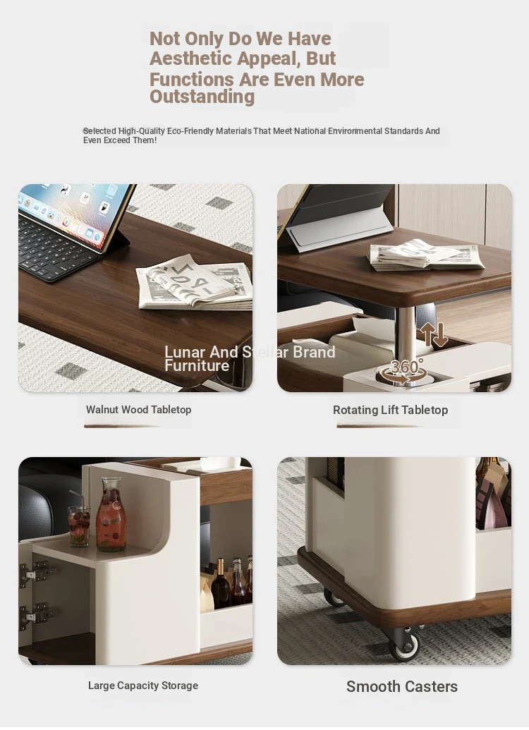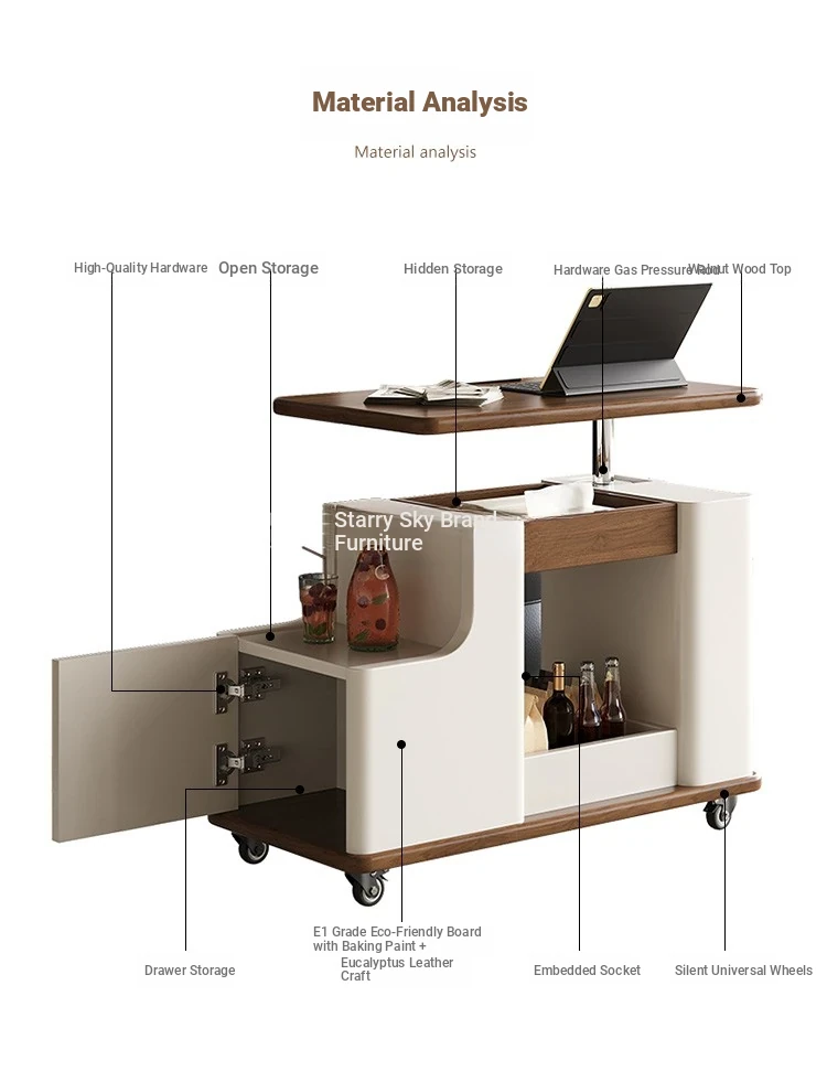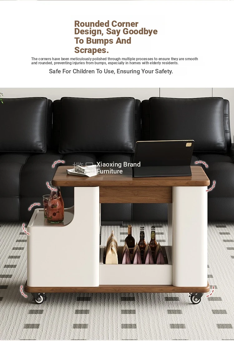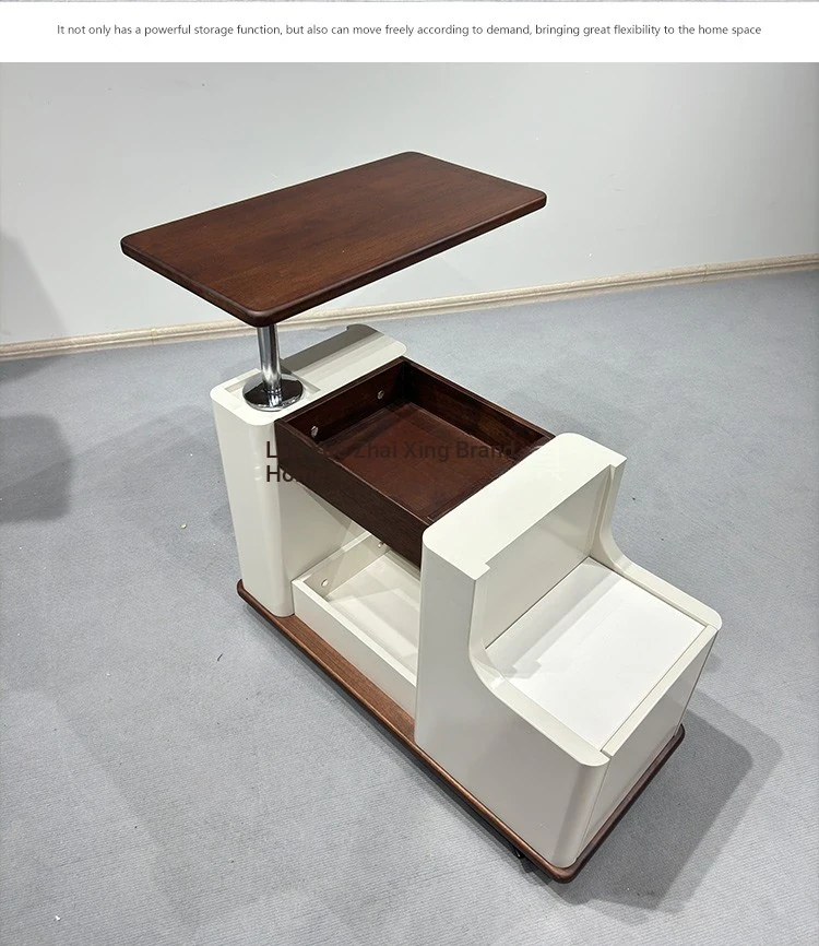 Italian Minimalist Movable Solid Wood Tea Cart - Versatile, Creative, and Height-Adjustable Sofa Side Table for a Chic Living Space