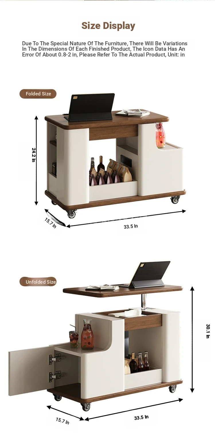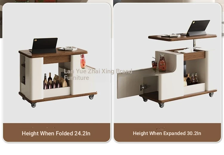 Multifunctional Coffee Table Cart [Off-White + Walnut]