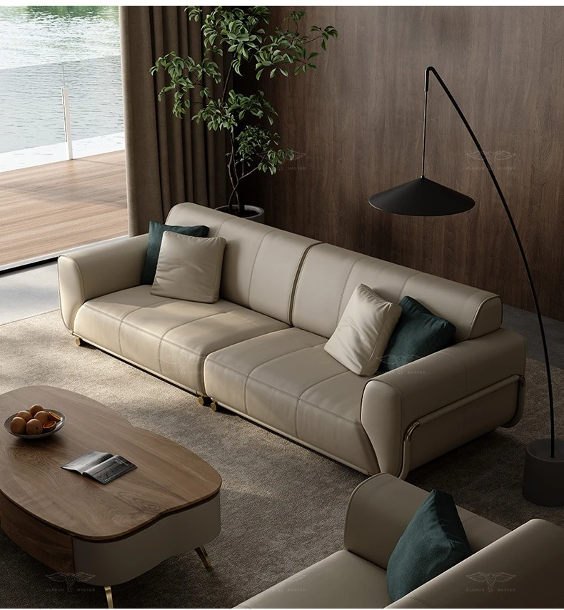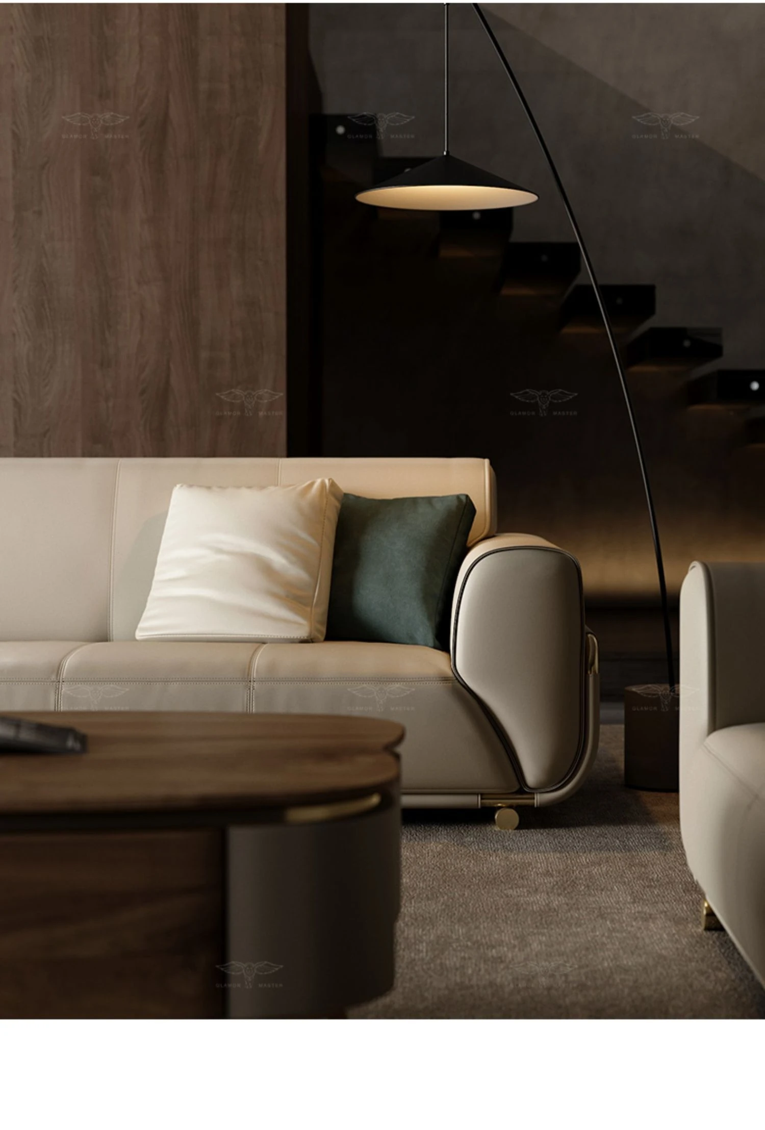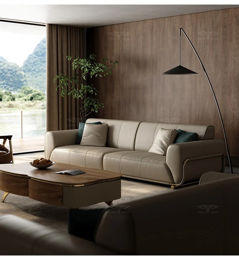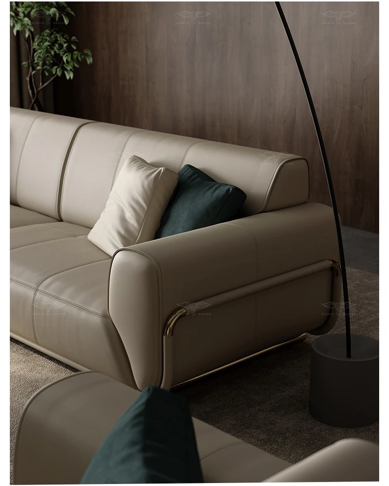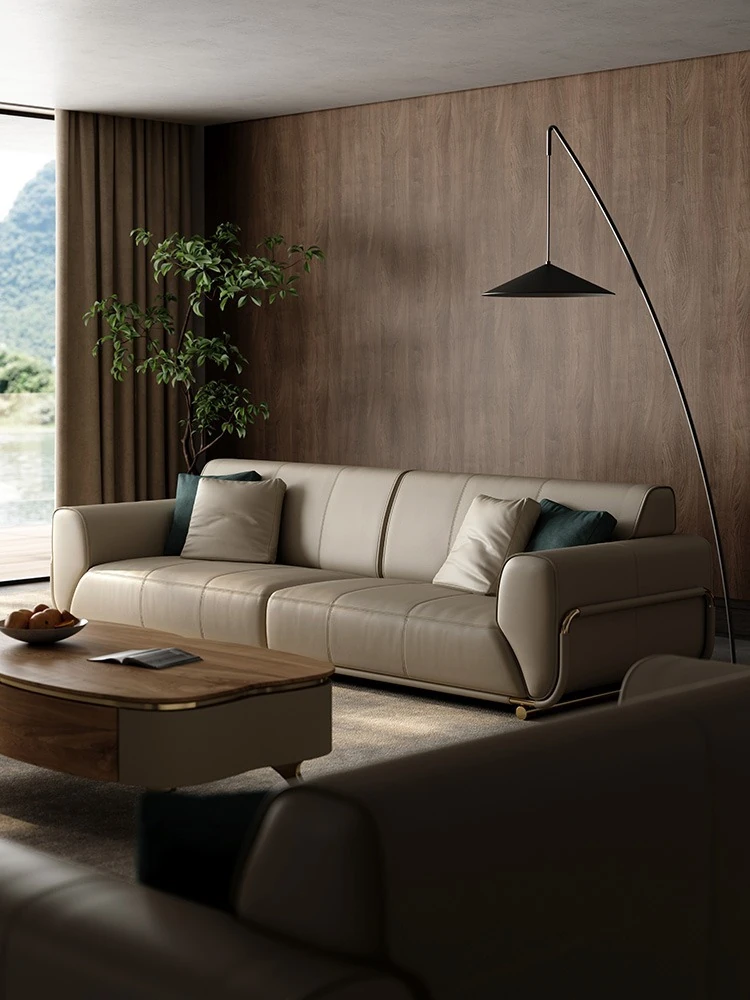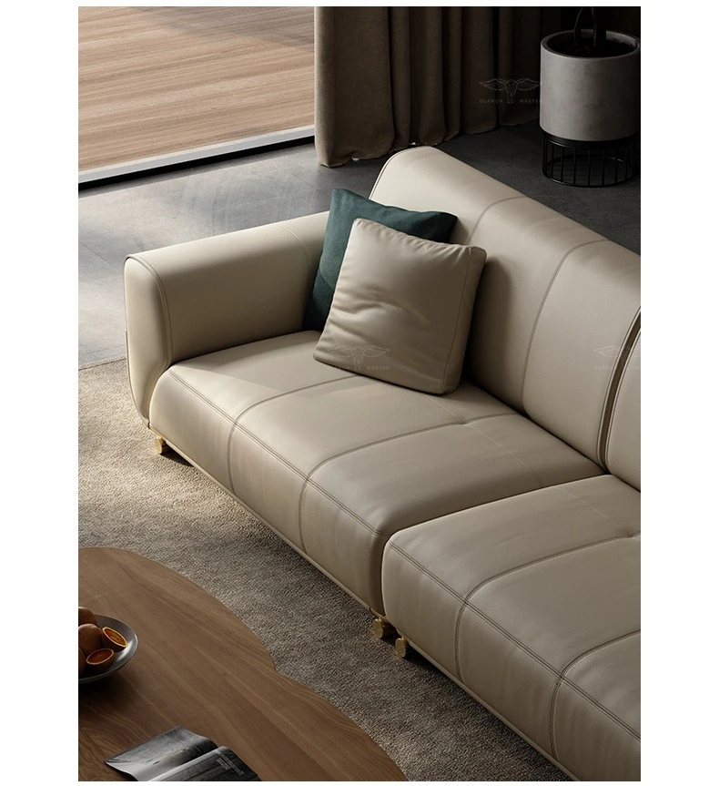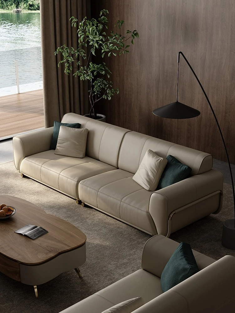 Italian Minimalist Nordic Genuine Leather Sofa - Designer Luxury Living Room Couch in Top Grain Cowhide, Simple and Modern Straight-Line Design