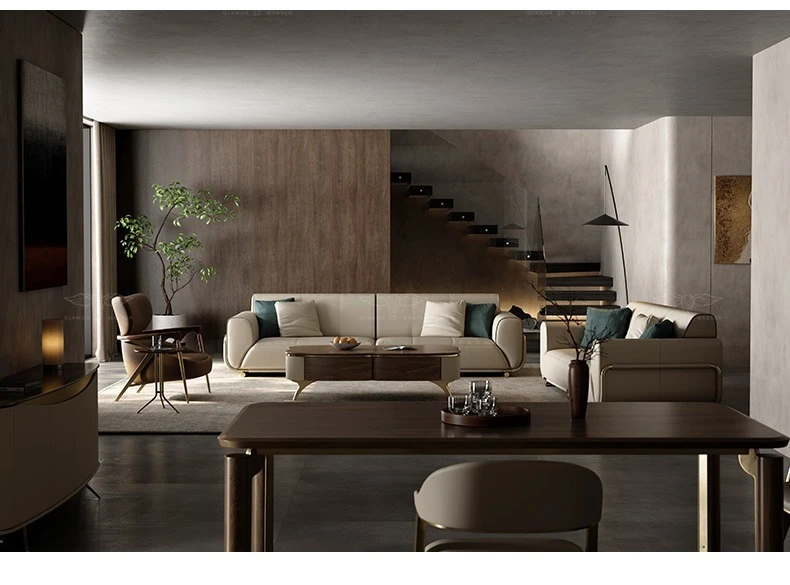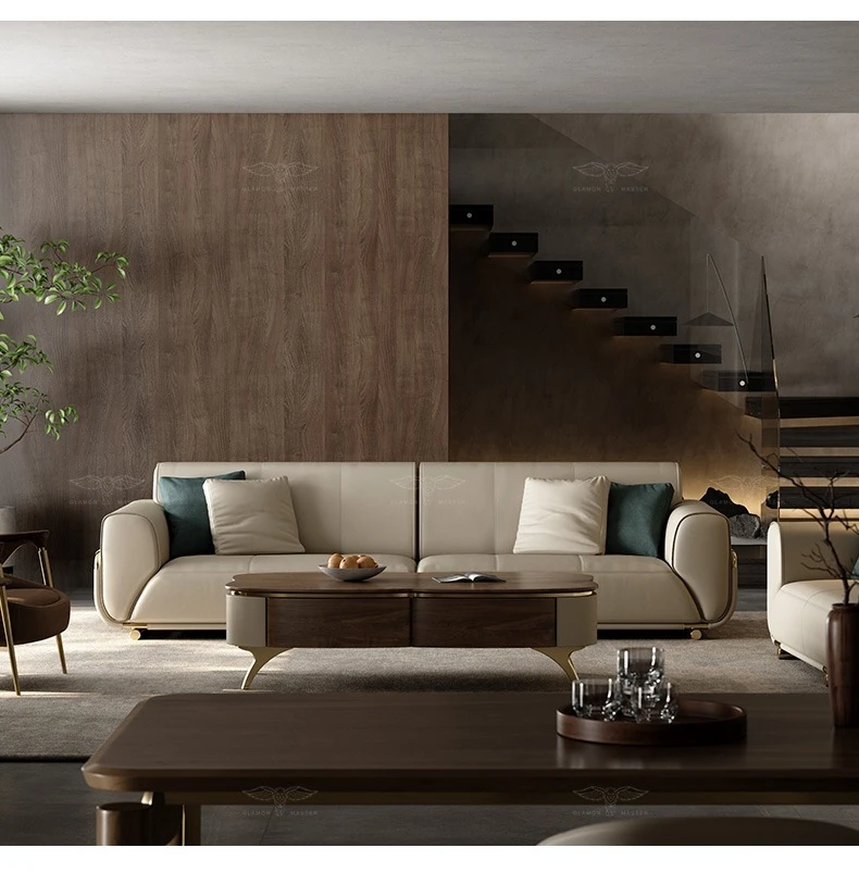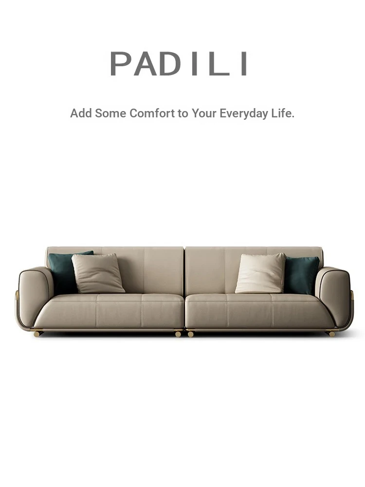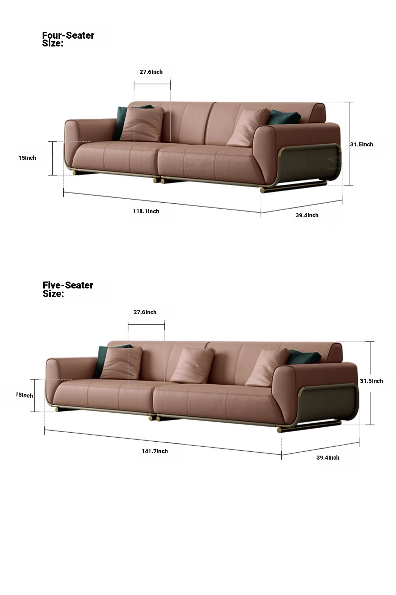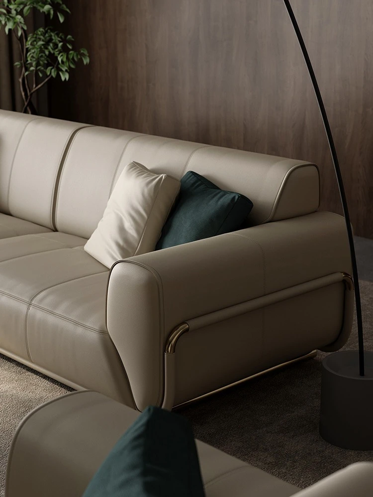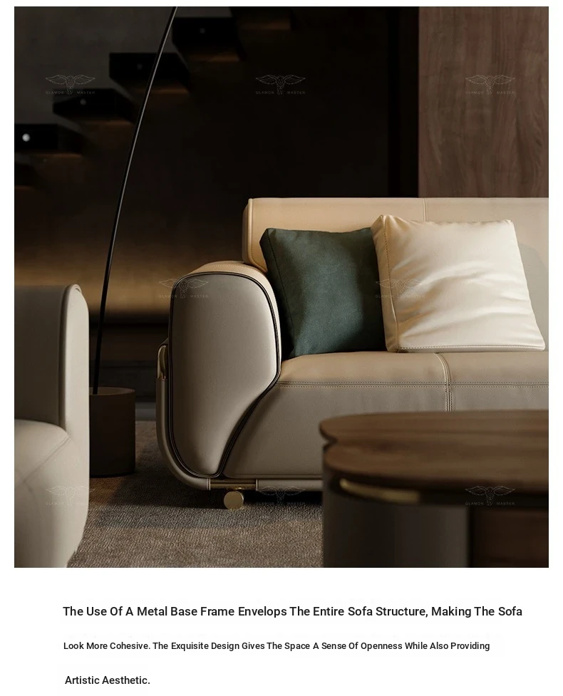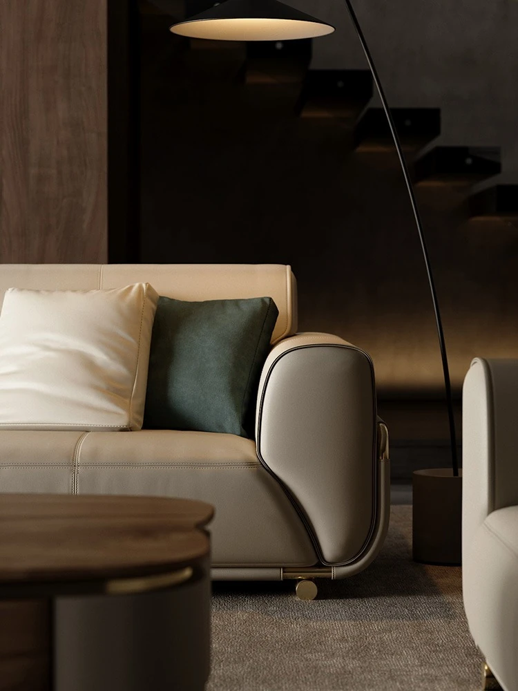 Italian Minimalist Nordic Genuine Leather Sofa - Designer Luxury Living Room Couch in Top Grain Cowhide, Simple and Modern Straight-Line Design
