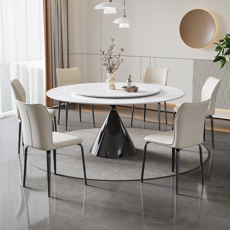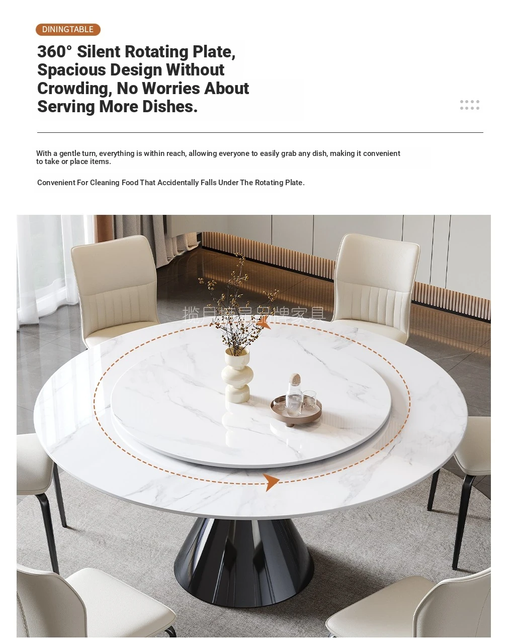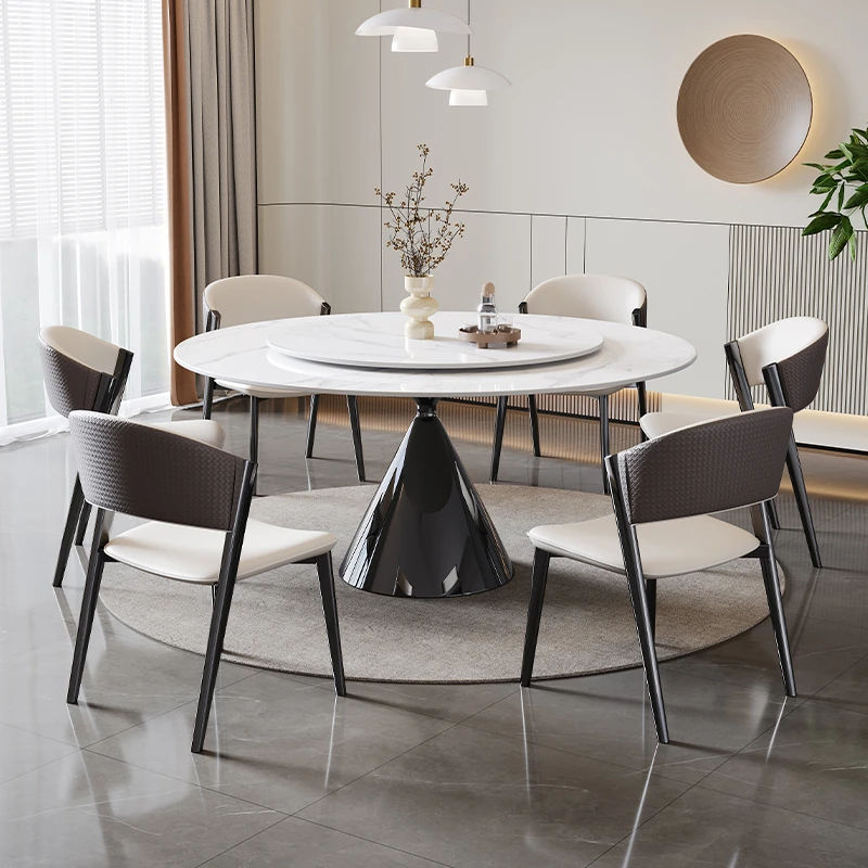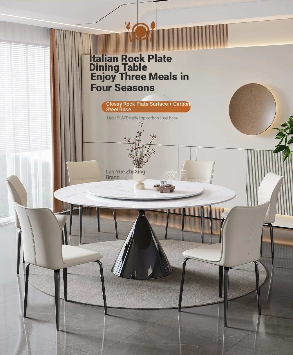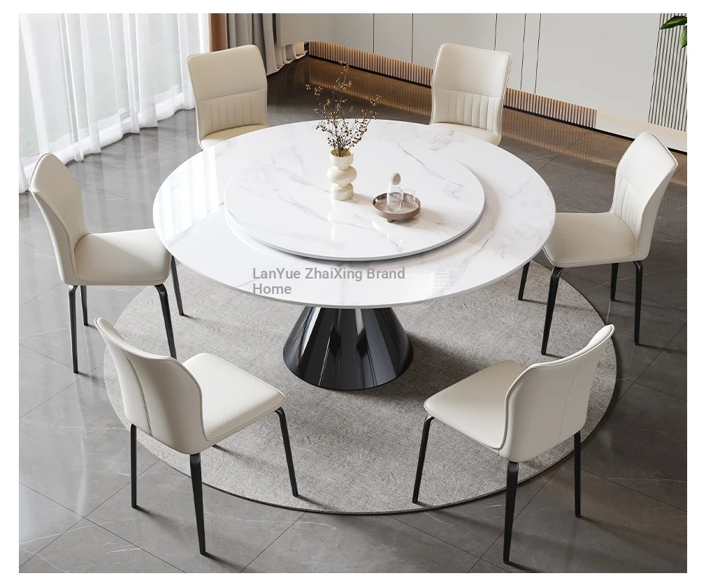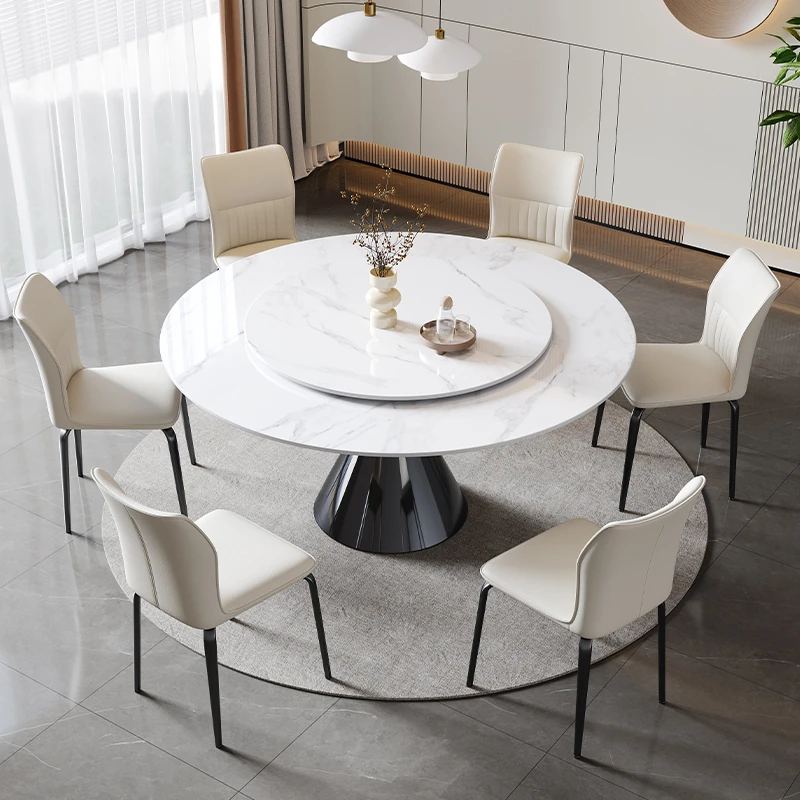 Italian Minimalist Round Dining Table Set with Rotating Lazy Susan - Stylish Rock Plate Design for Modern Restaurants and Homes