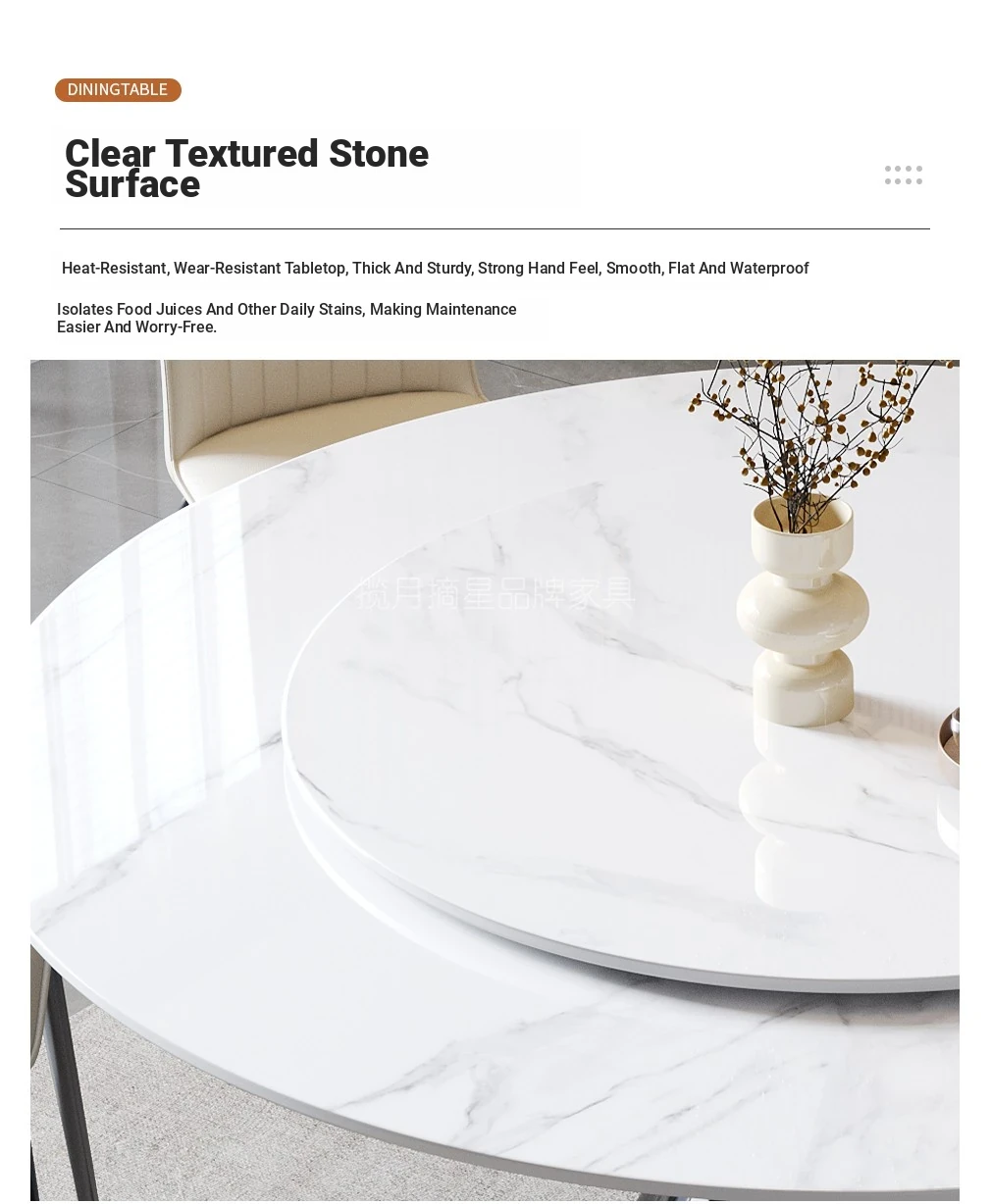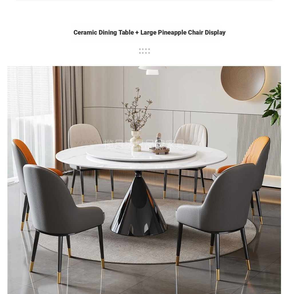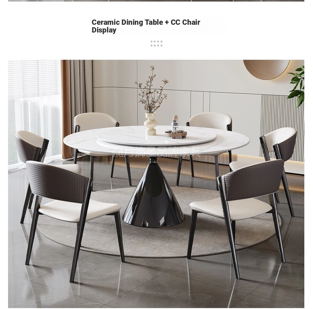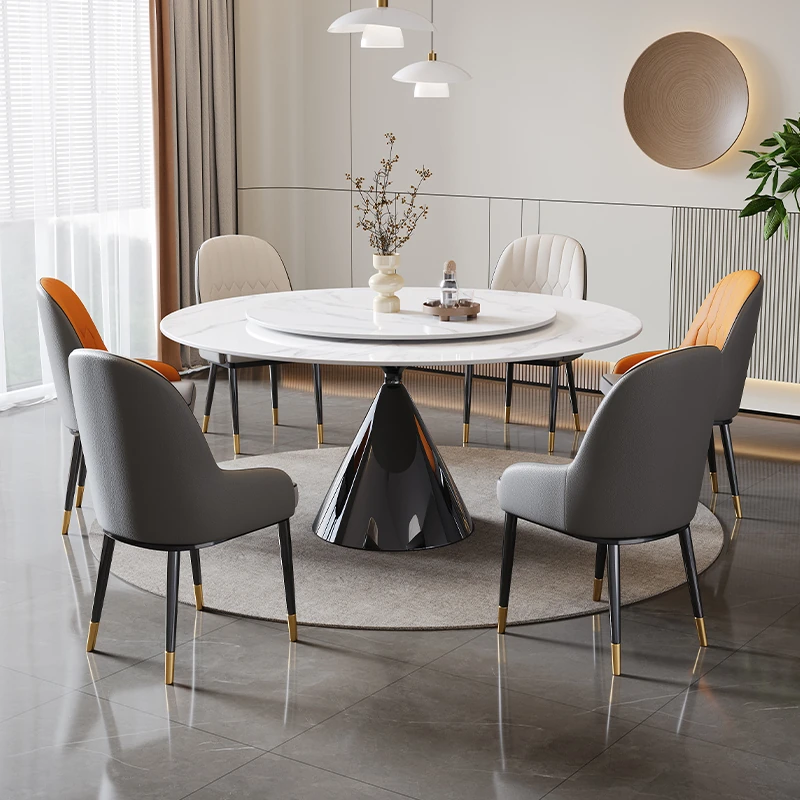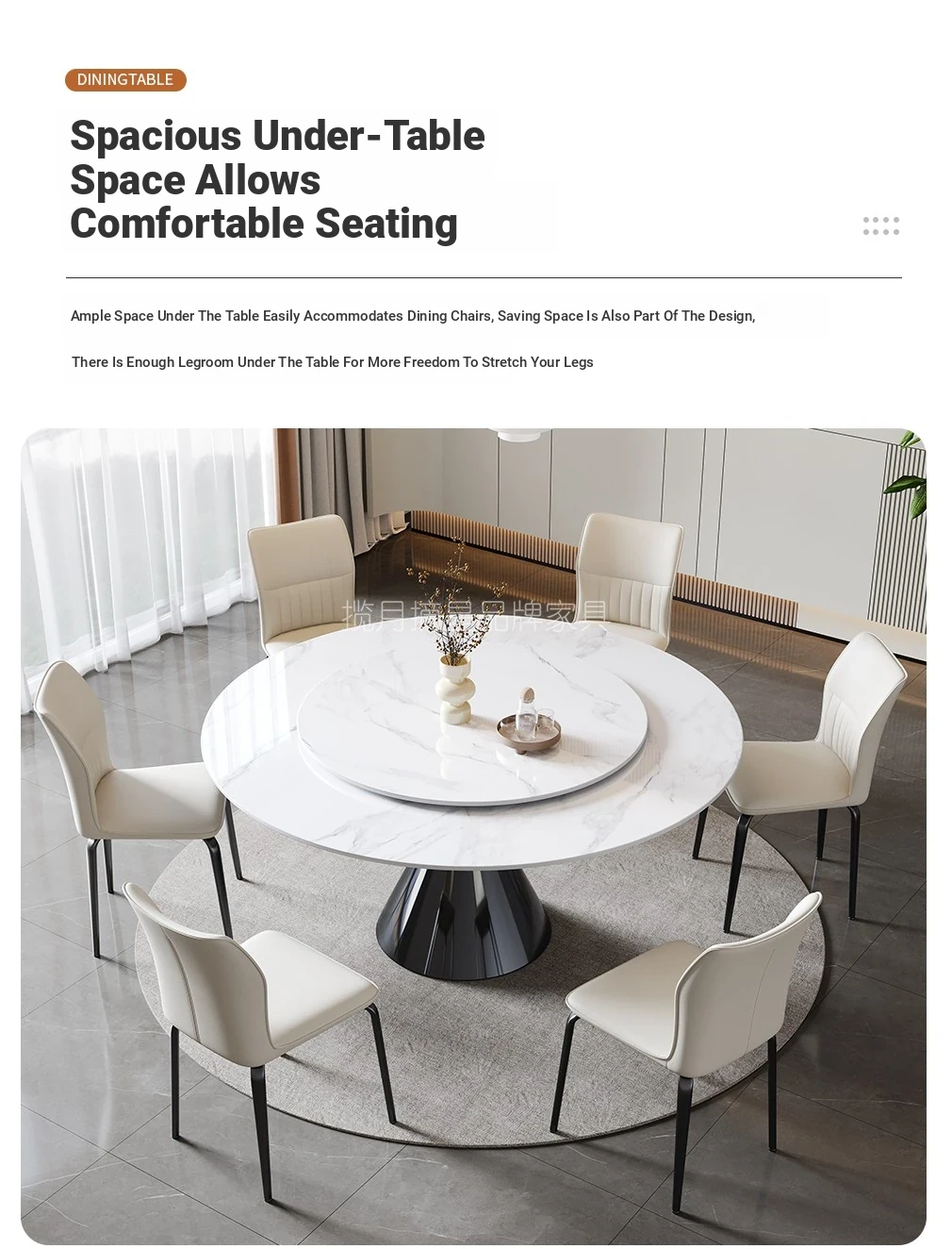 Italian Minimalist Round Dining Table Set with Rotating Lazy Susan - Stylish Rock Plate Design for Modern Restaurants and Homes