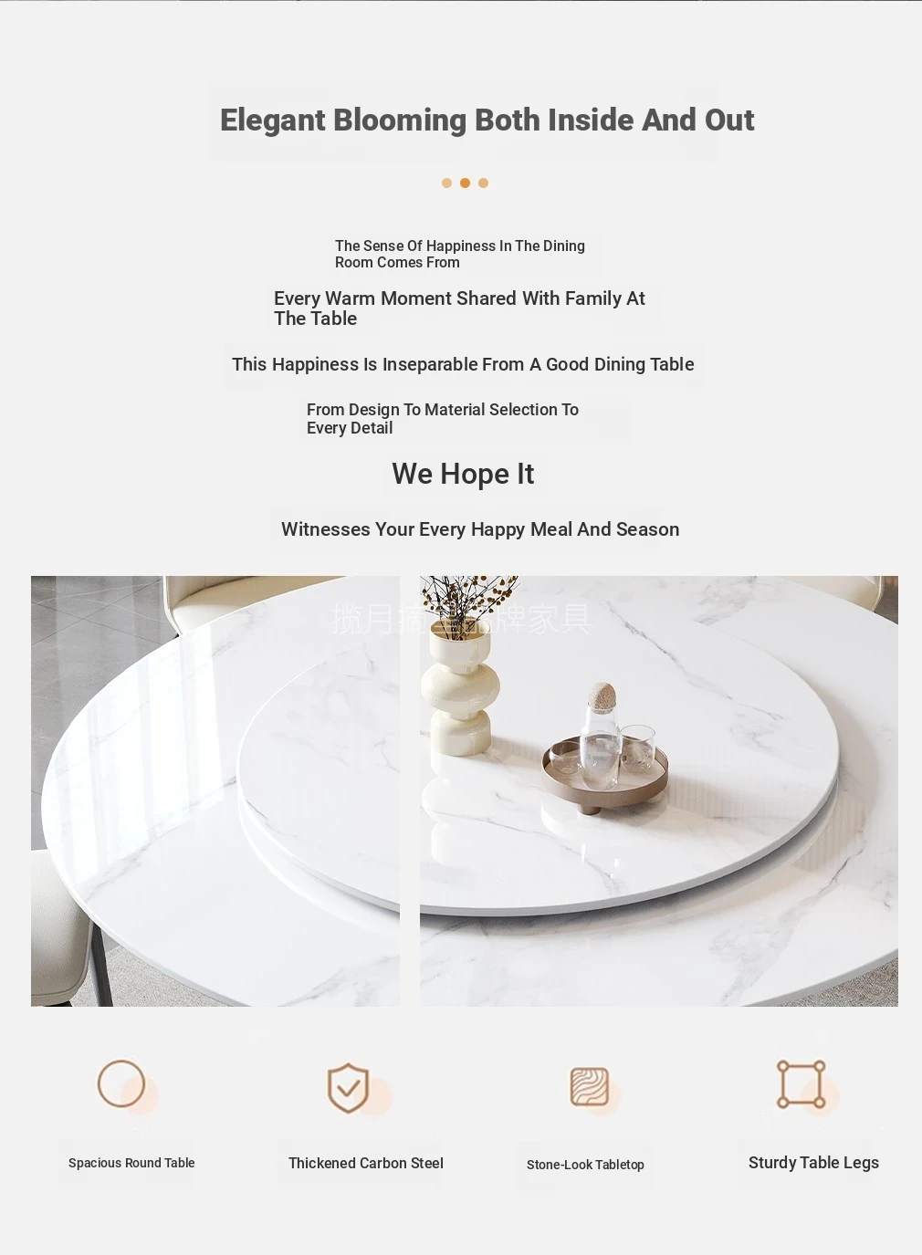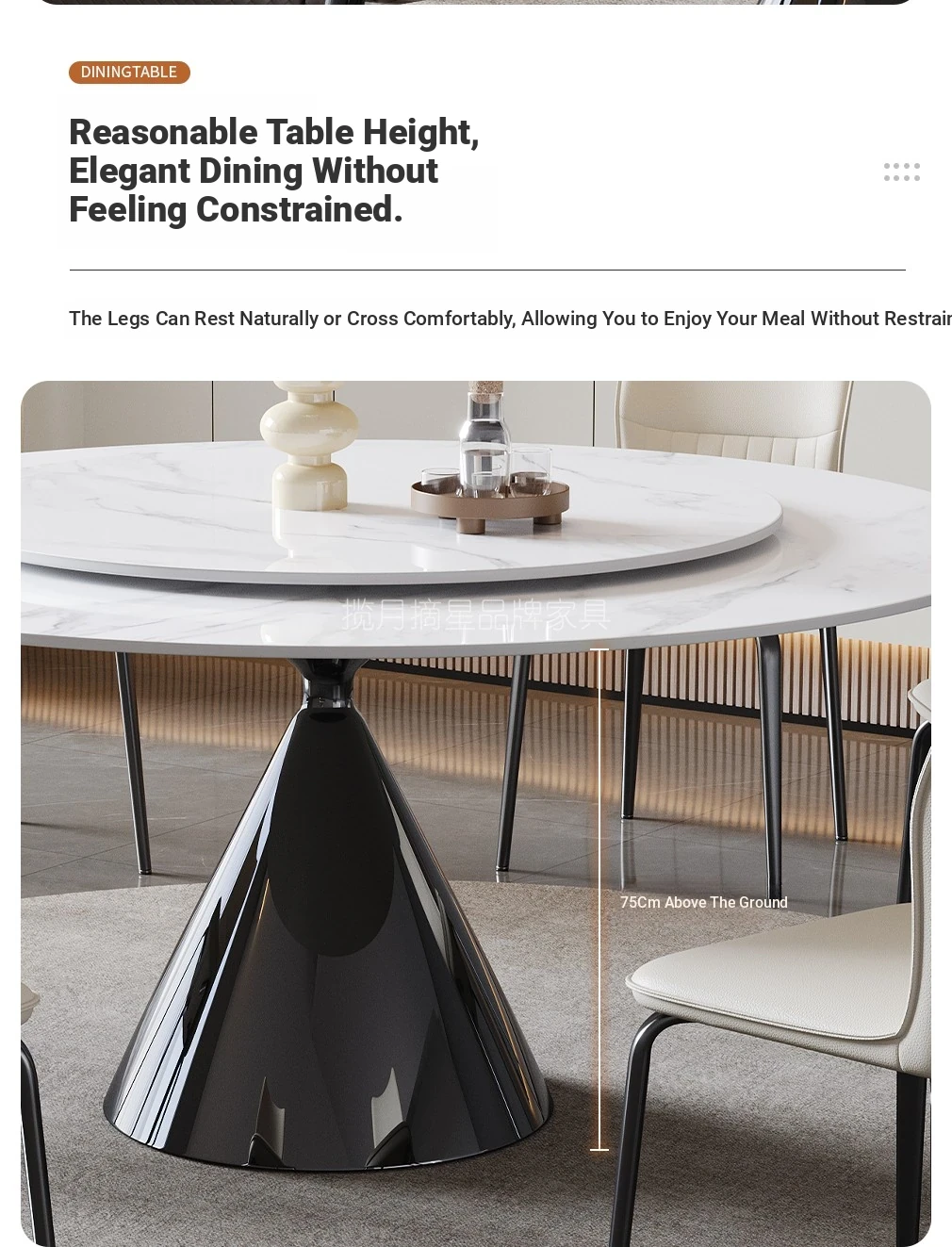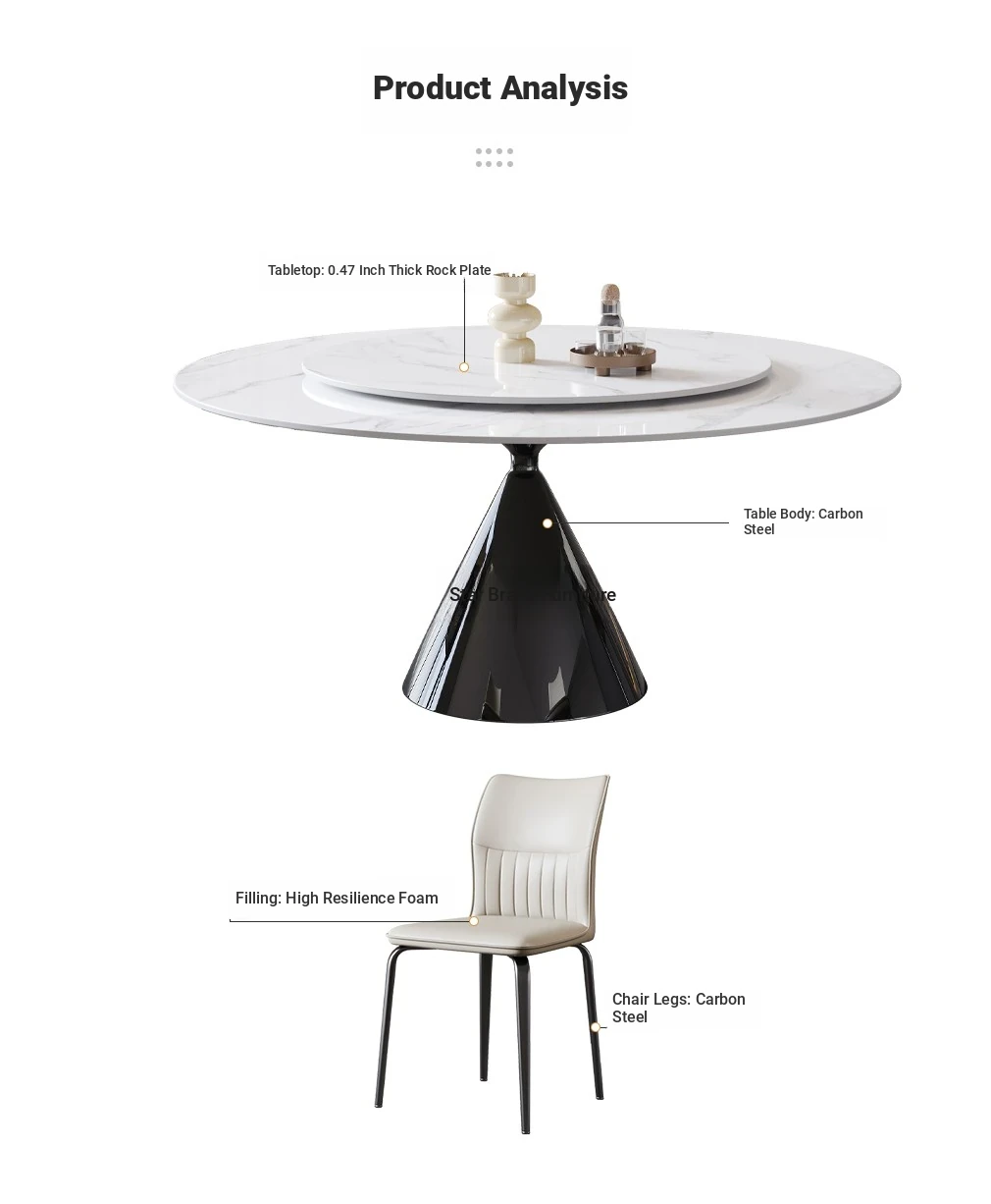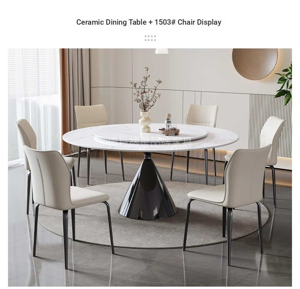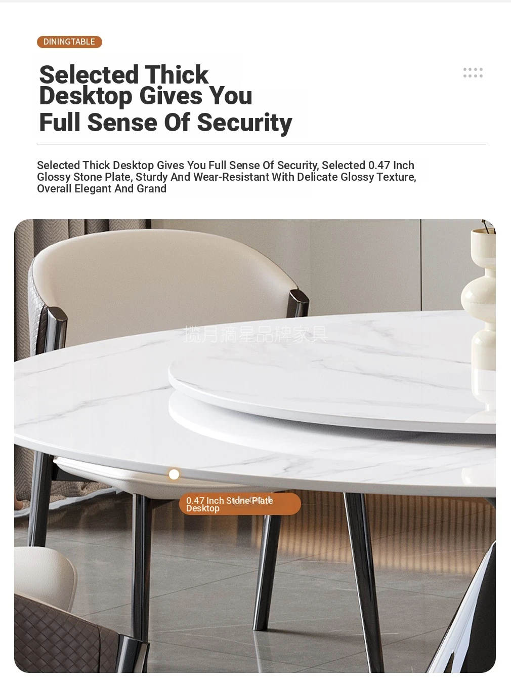 Italian Minimalist Round Dining Table Set with Rotating Lazy Susan - Stylish Rock Plate Design for Modern Restaurants and Homes