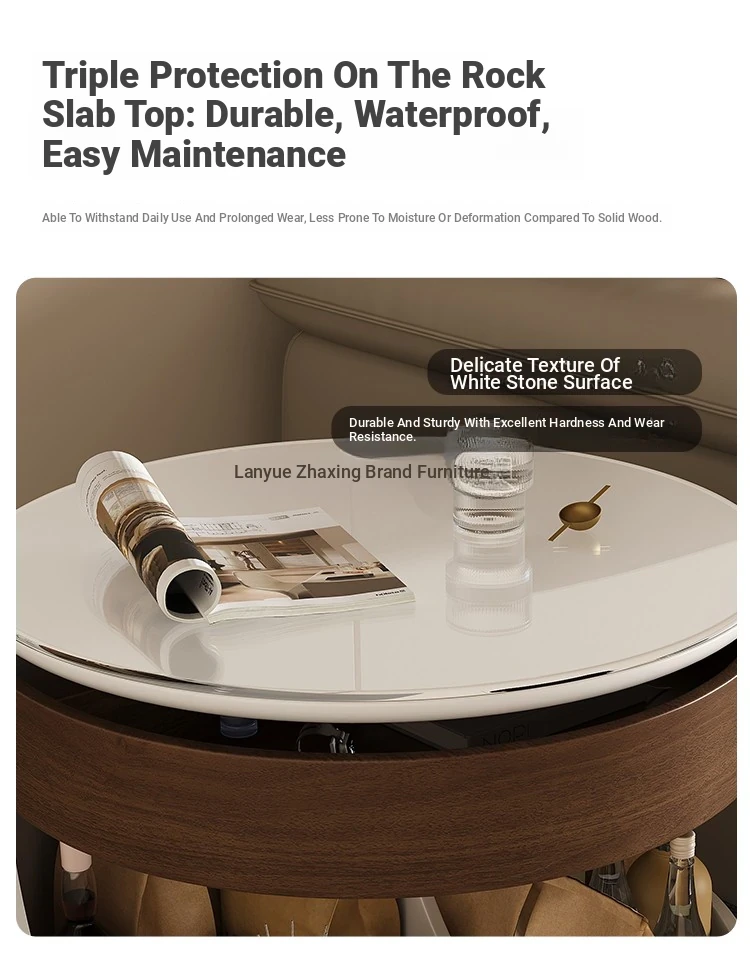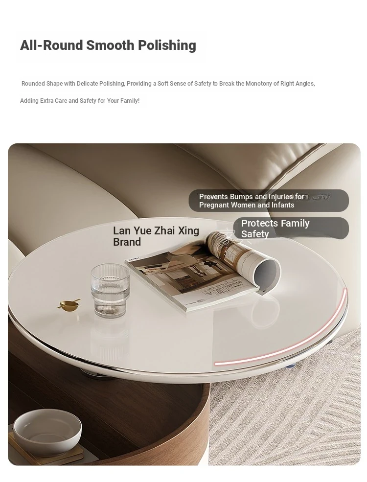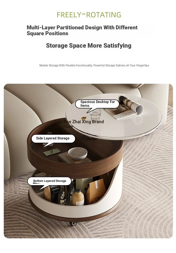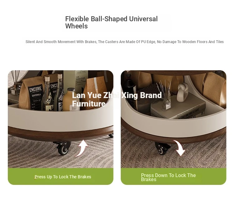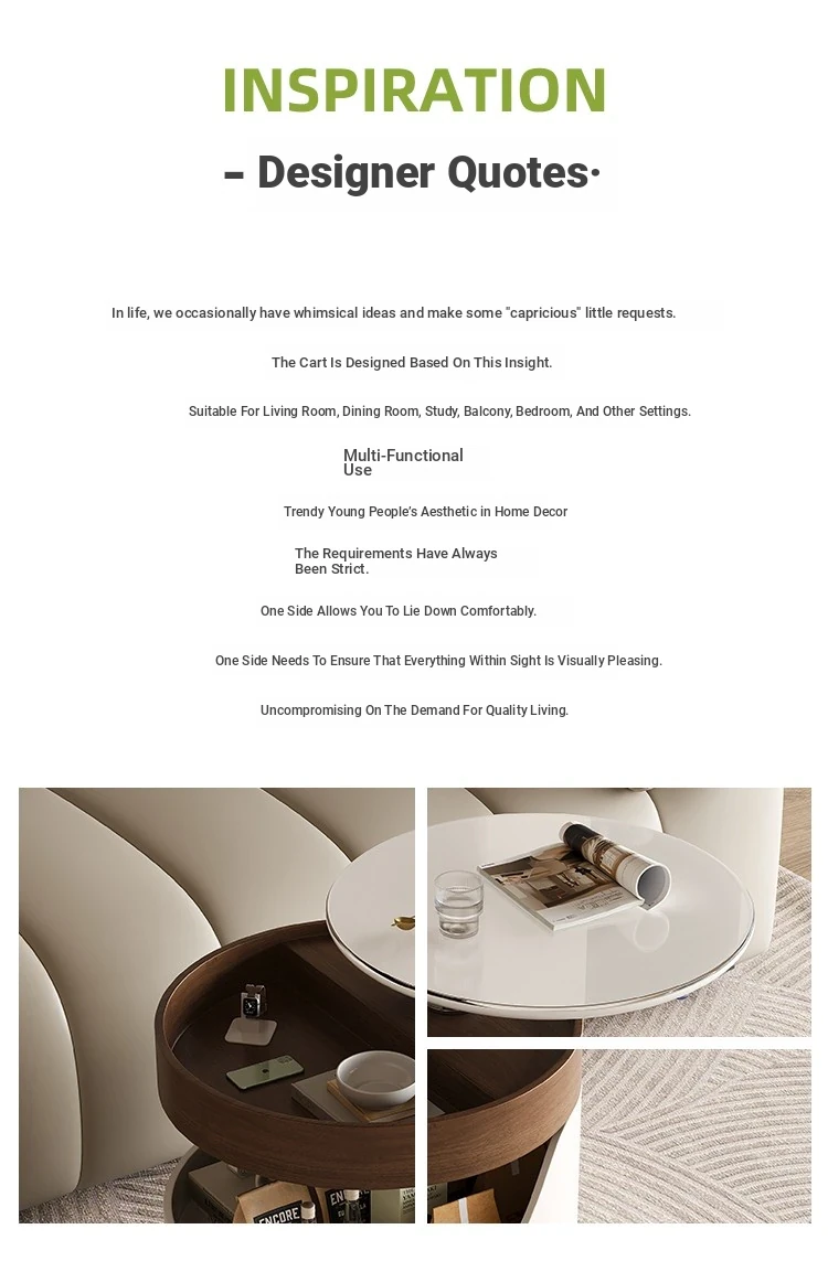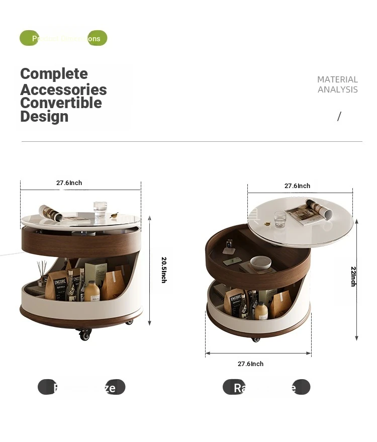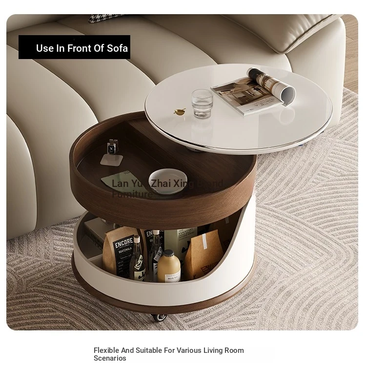 Italian Minimalist Round Movable Coffee Table - Versatile Side Table for Small Living Spaces with Adjustable Height and Storage Cart Functionality