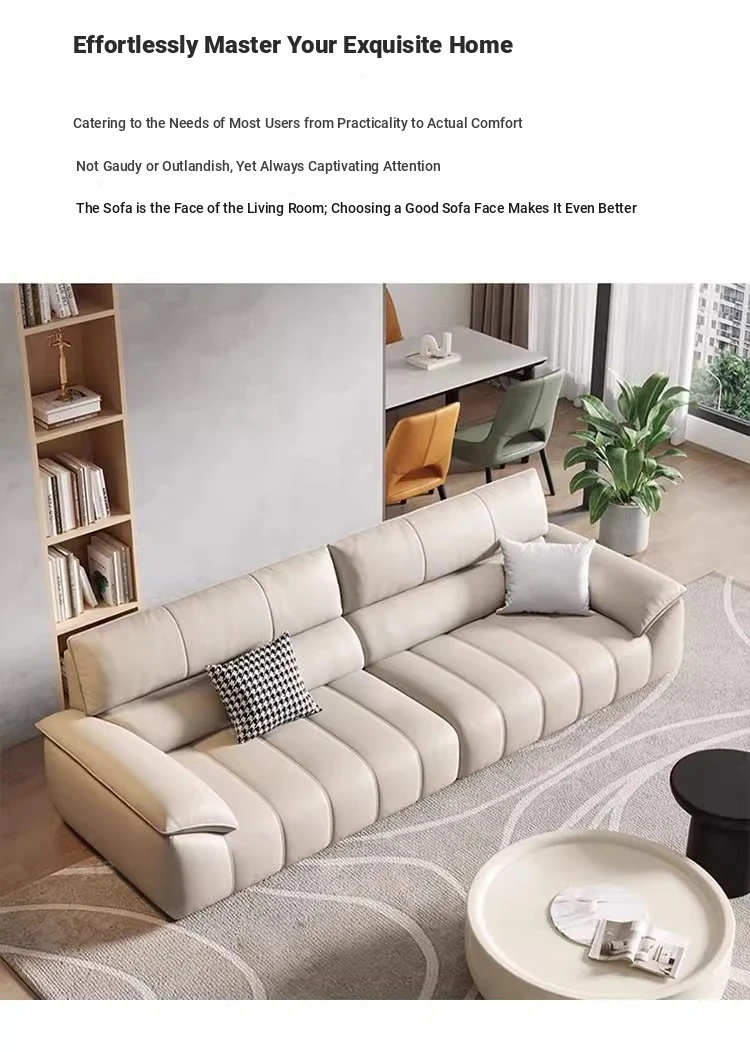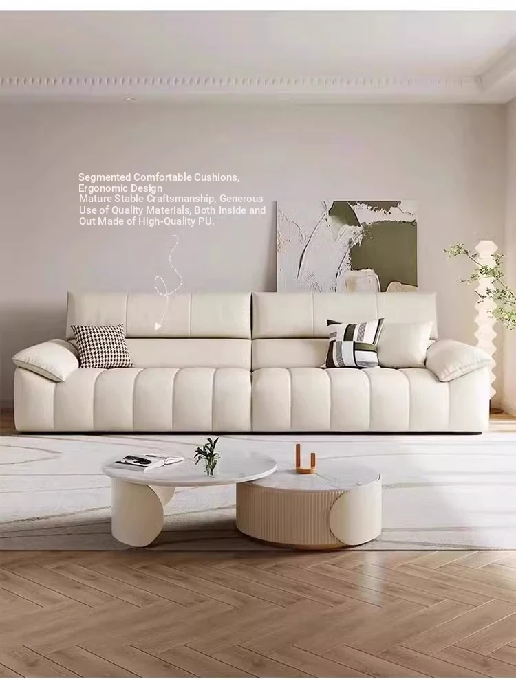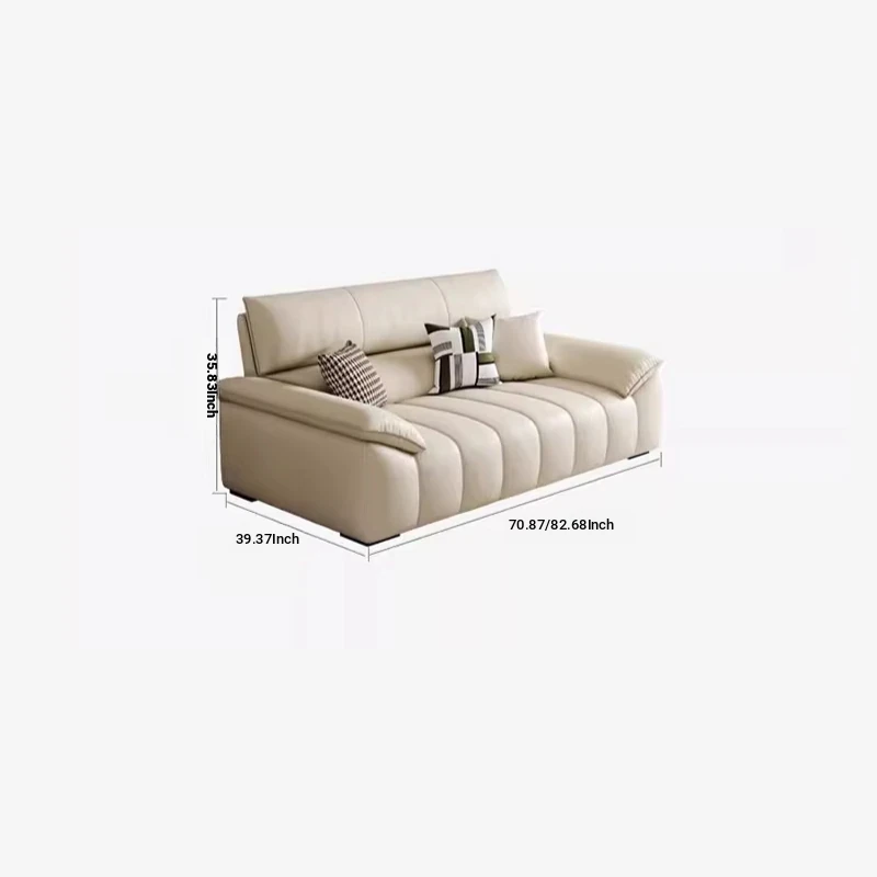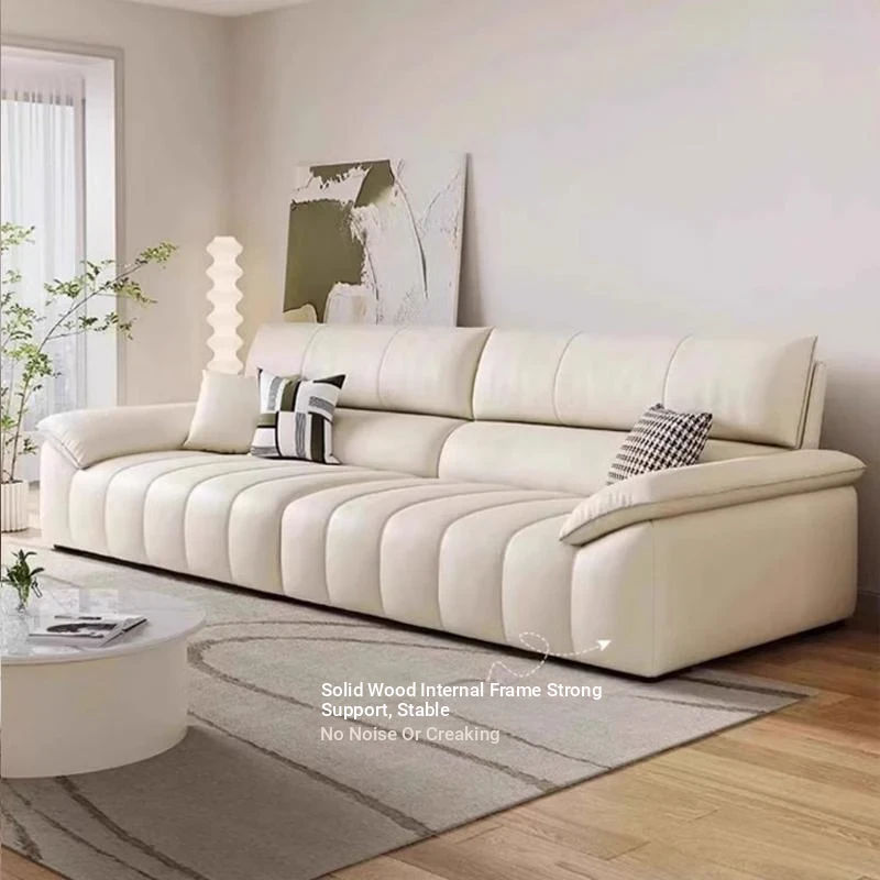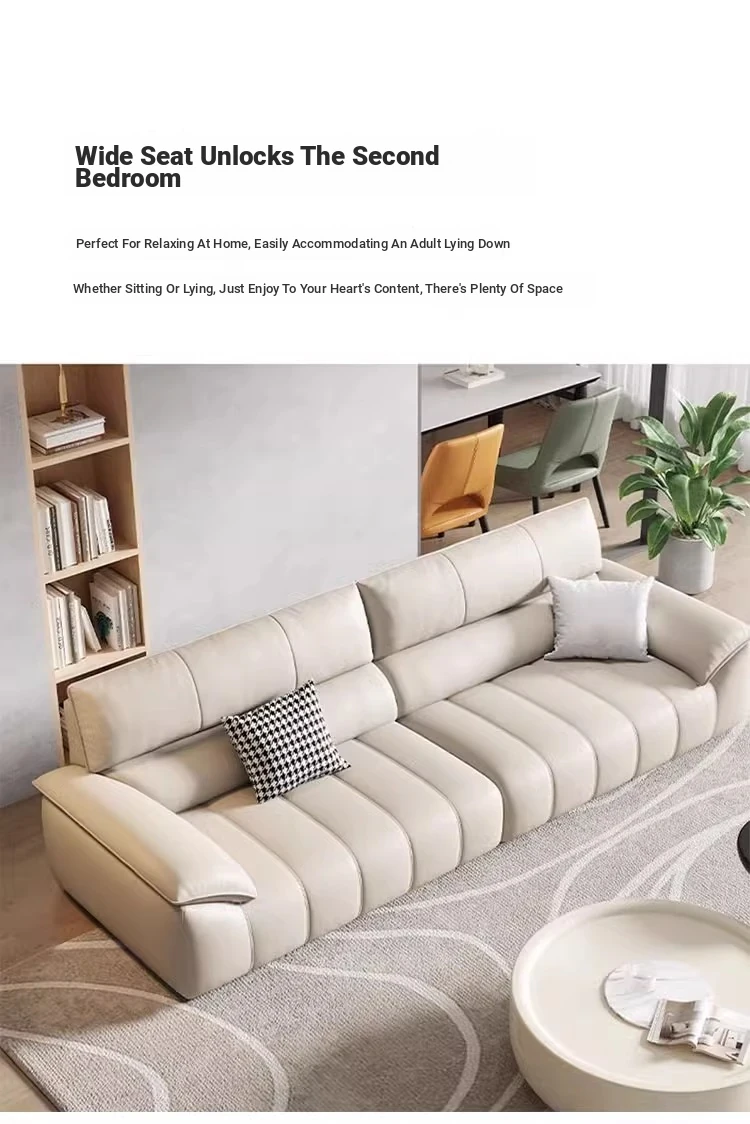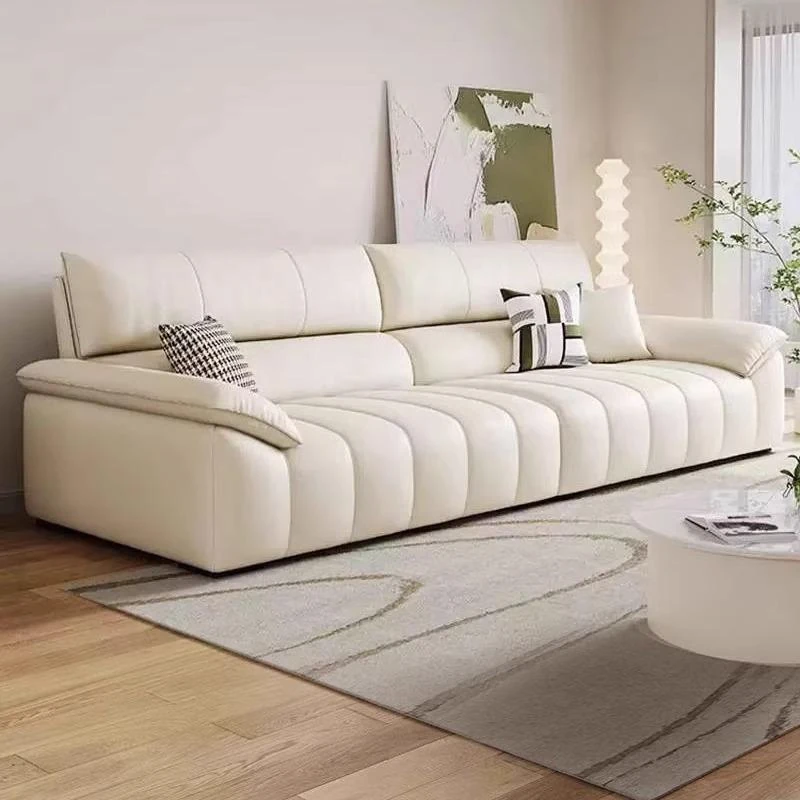 Italian Minimalist Top Grain Leather Sofa in Cream - Piano Key Wabi-Sabi Design, Designer Style for 3-4 People - Perfect for Modern Living Spaces