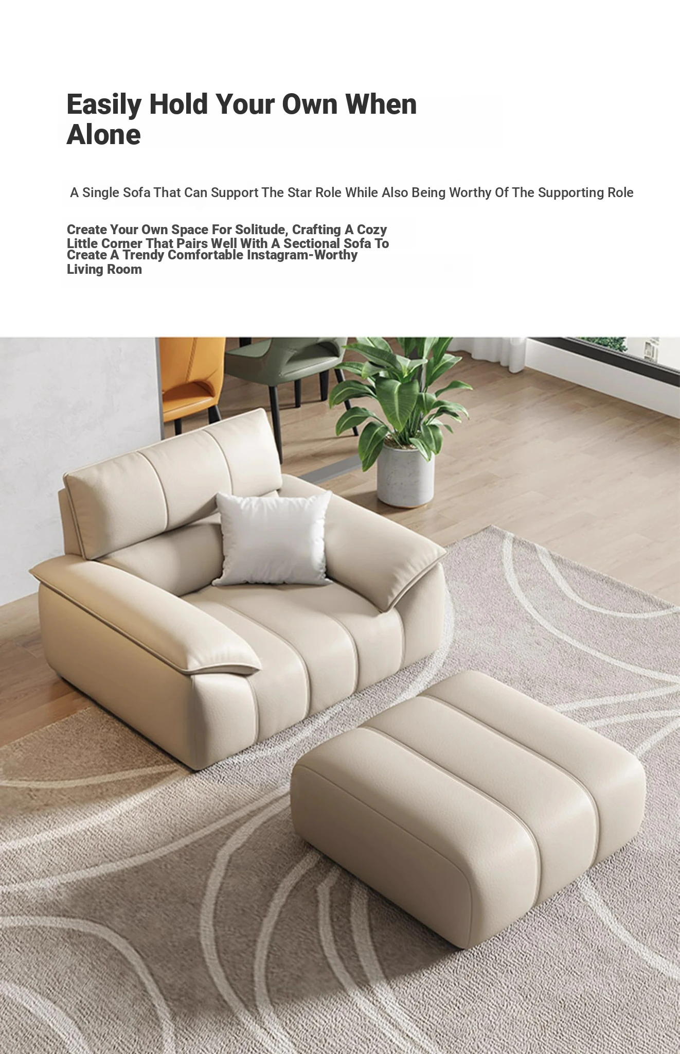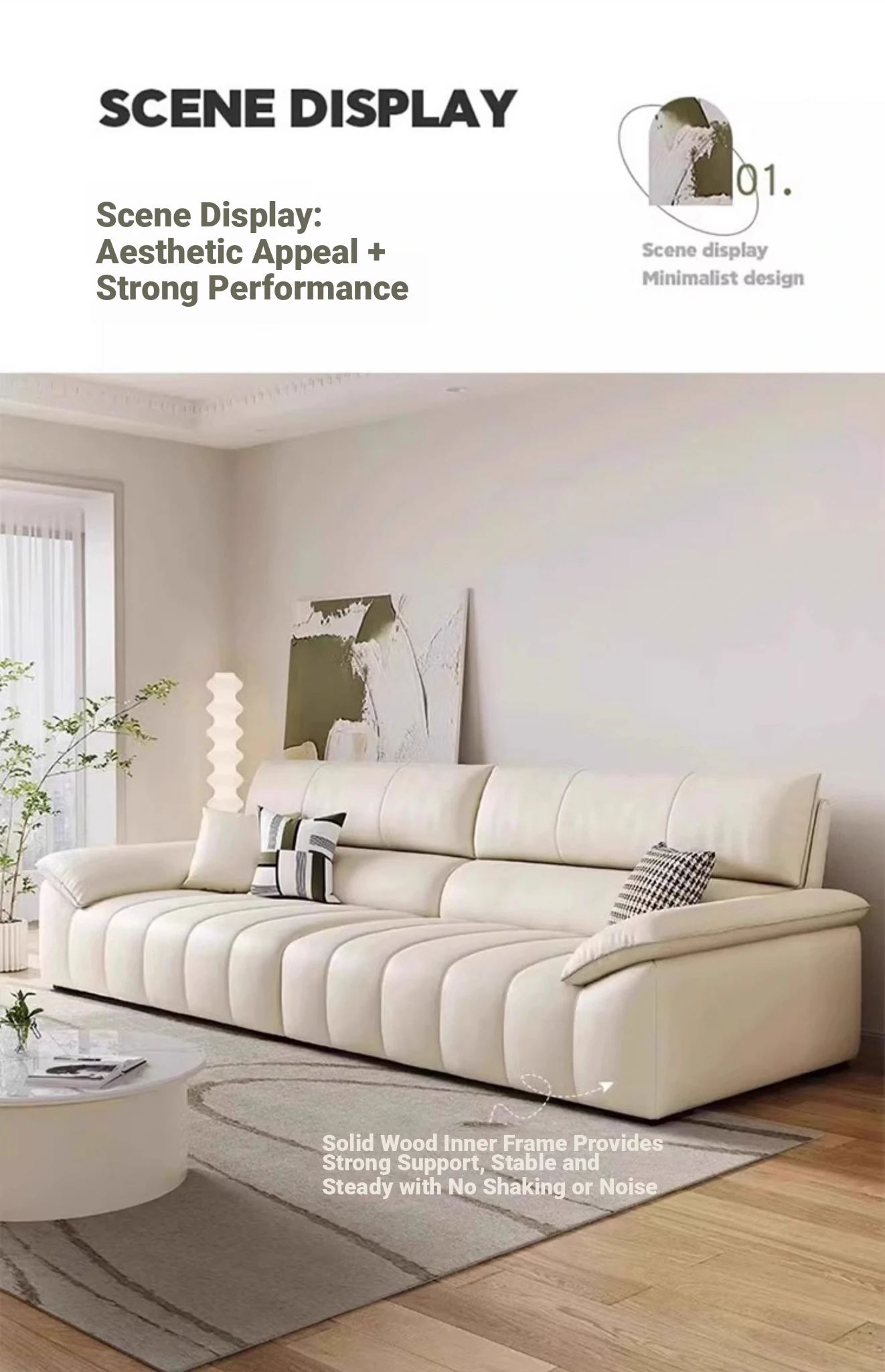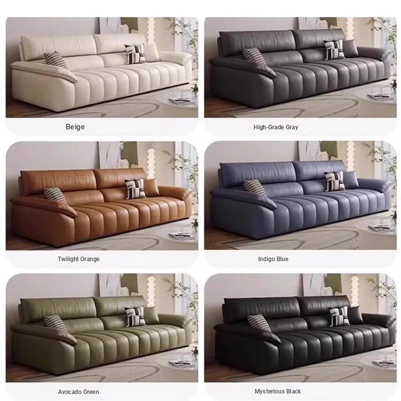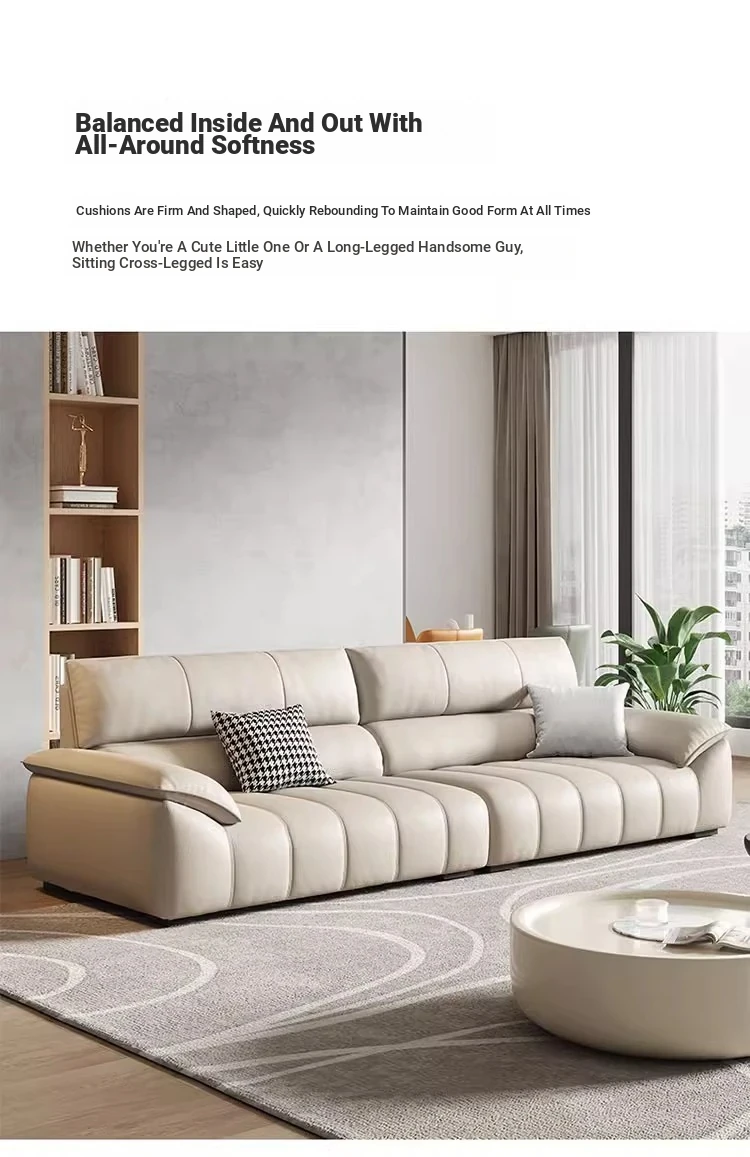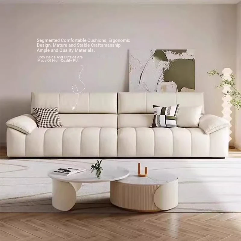 Italian Minimalist Top Grain Leather Sofa in Cream - Piano Key Wabi-Sabi Design, Designer Style for 3-4 People - Perfect for Modern Living Spaces
