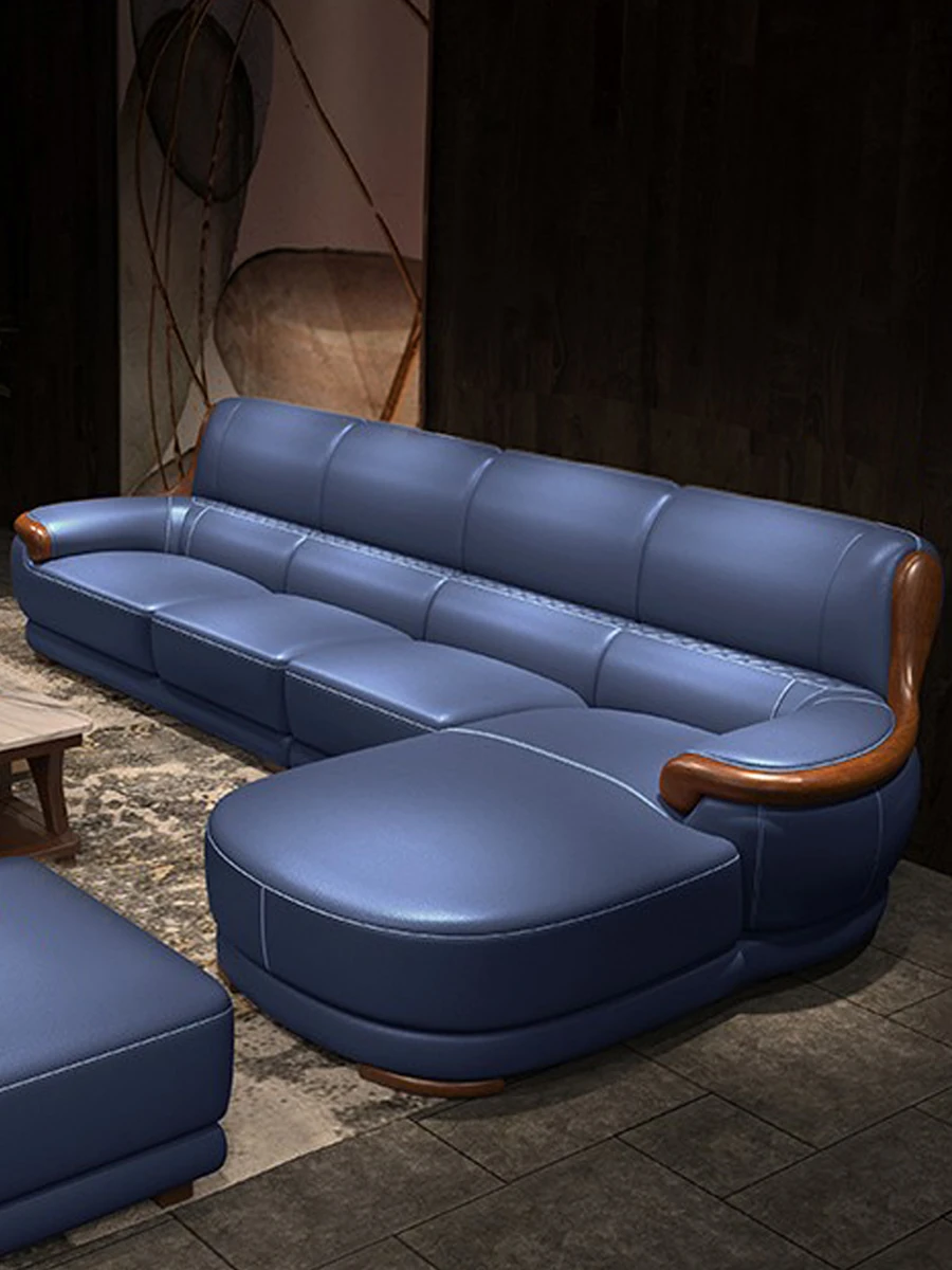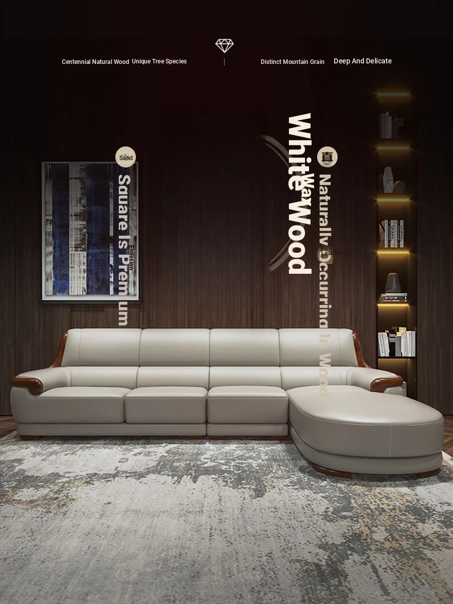 Italian Nordic Solid Wood Genuine Leather Sofa - Premium Top-Grain Cowhide Corner Chaise Lounge for Small to Medium Living Rooms - Modern Minimalist Design