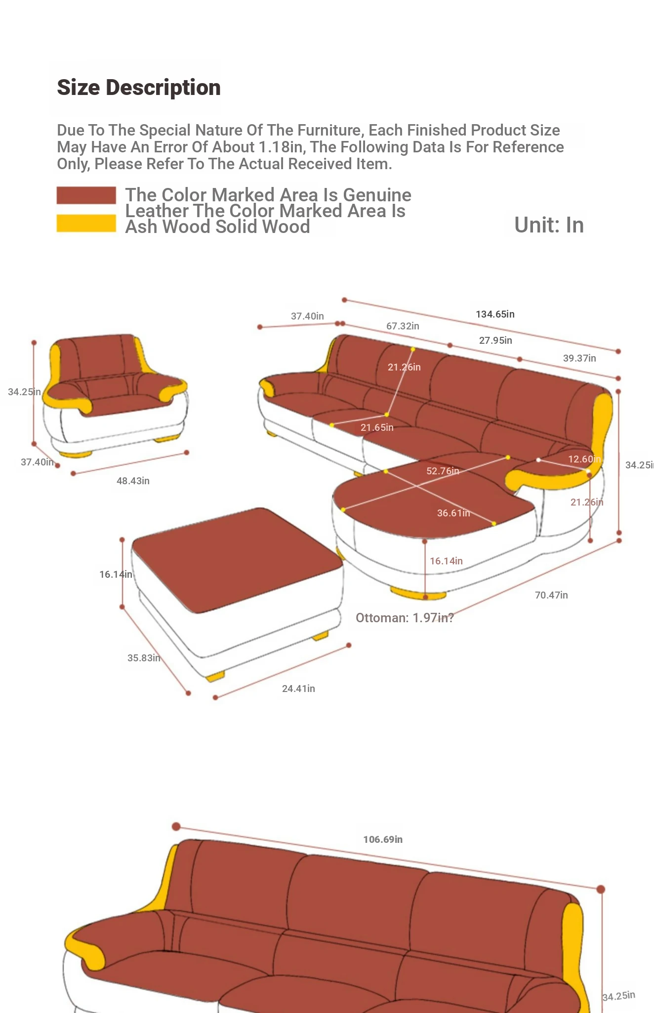 [Made in thick leather] double armrest three