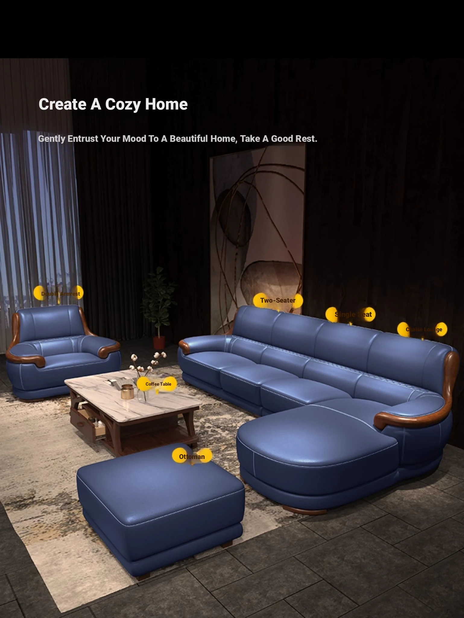 [Made in thick leather] double armrest four people