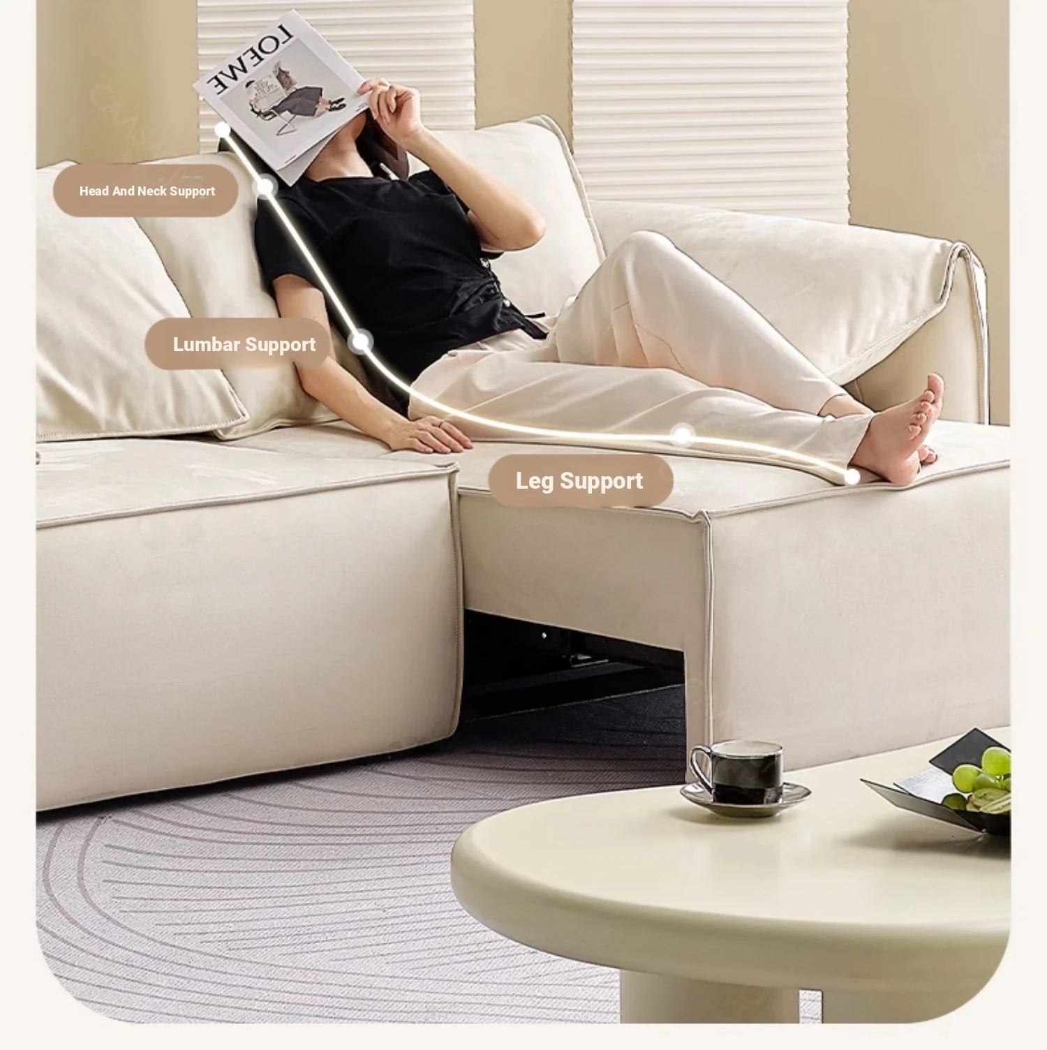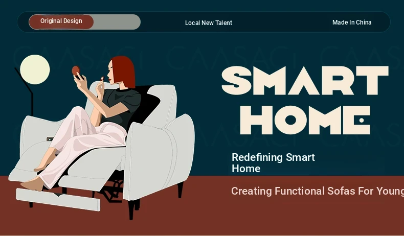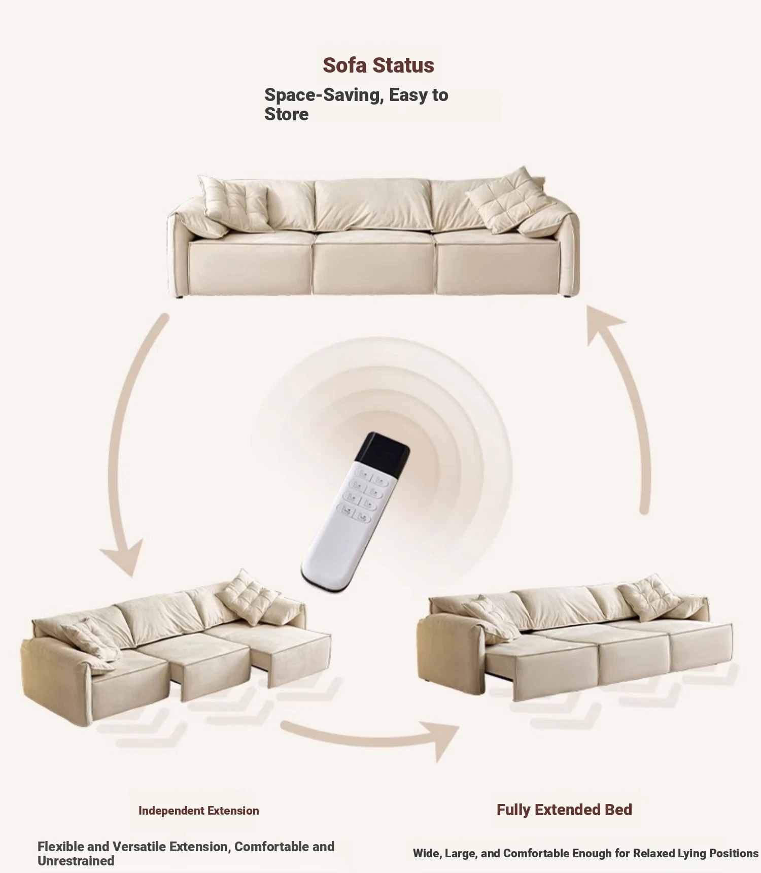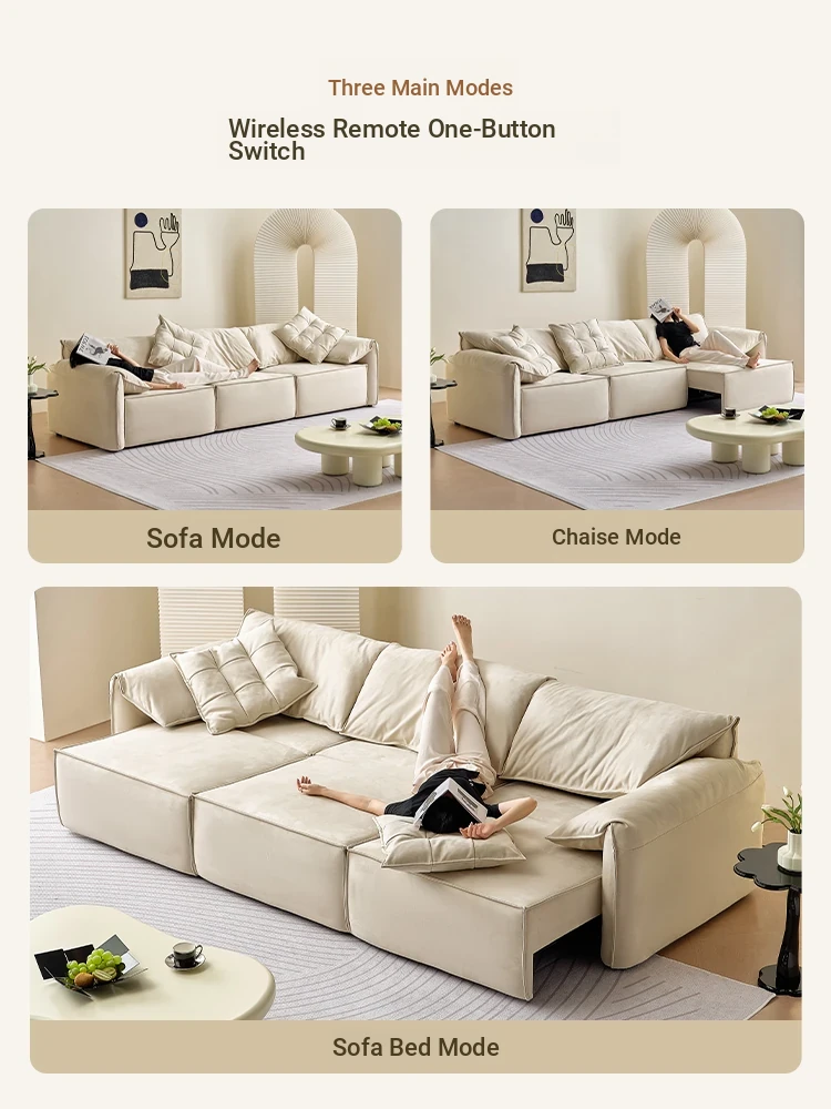 Kasaqi Cream Wind Electric Adjustable Sofa Bed – Versatile Two-in-One Design for Small Living Spaces, Featuring Adorable Elephant Ear Style and Cozy Fabric Upholstery. Perfect for Your Living Room!