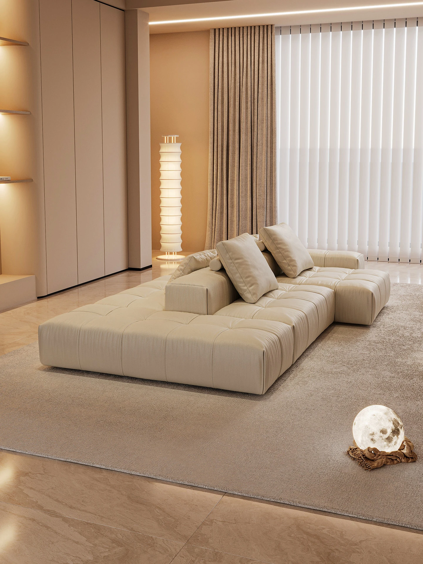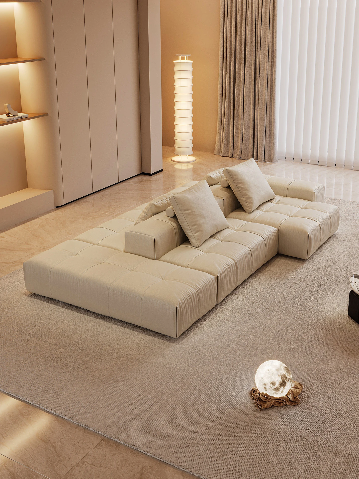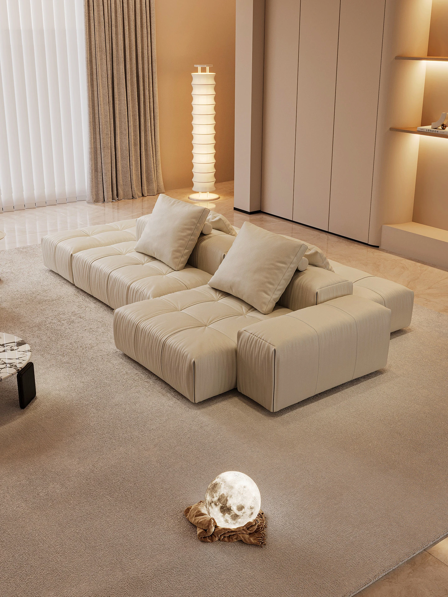 Luxury Beige Double-Sided Back-to-Back Real Leather Sofa for Open Spaces - 2025 SABA Creamy Pixel Design, Modern and Stylish