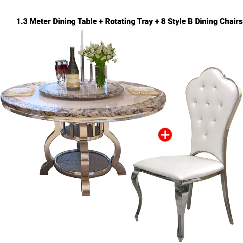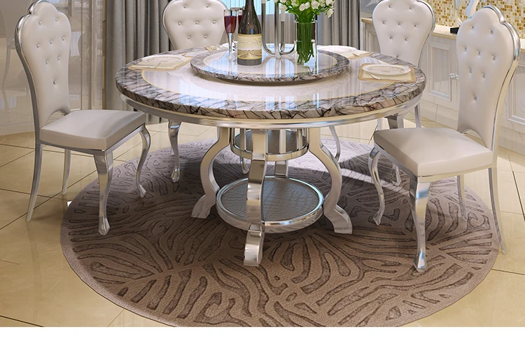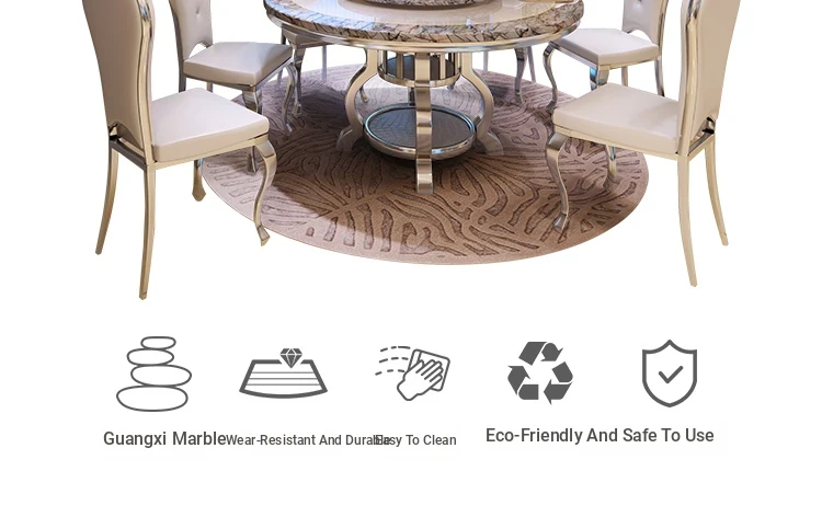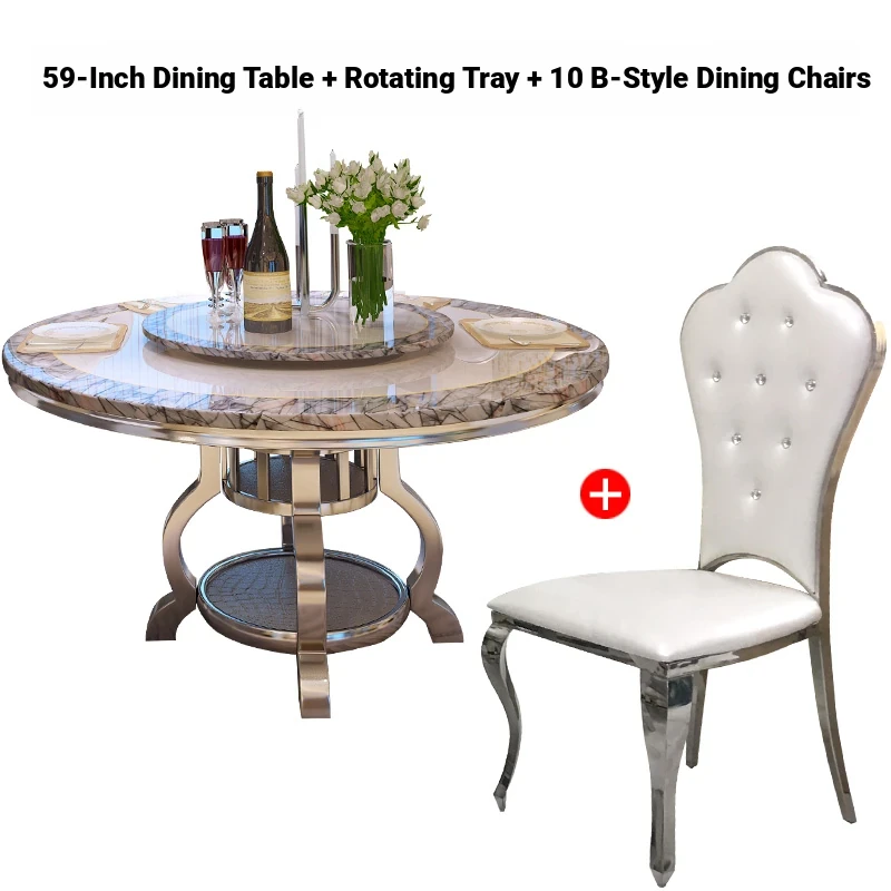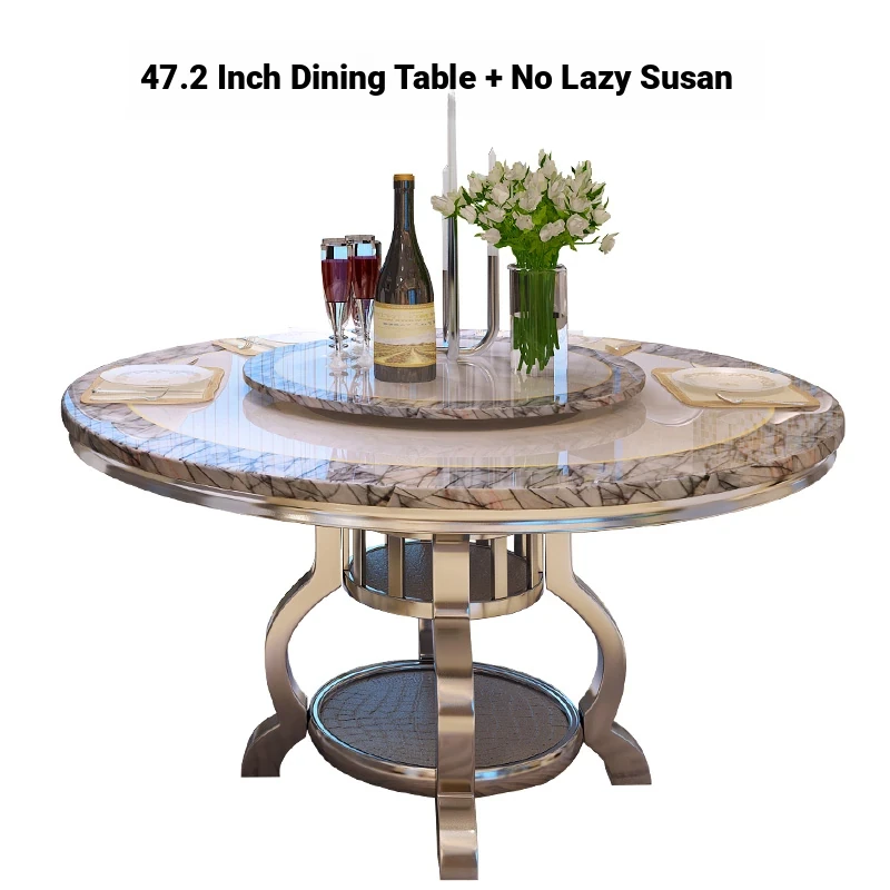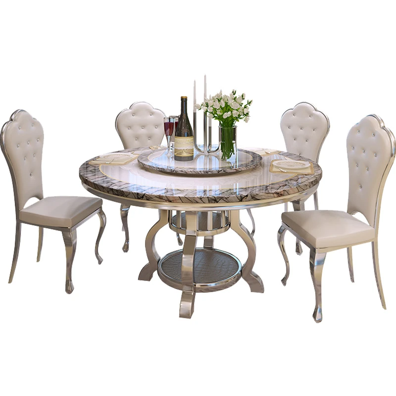 Modern European Marble Dining Table Set with Rotating Center, Stainless Steel Round Table and Chairs - Stylish and Minimalist Design for Home Use