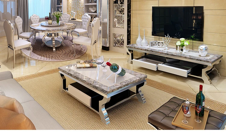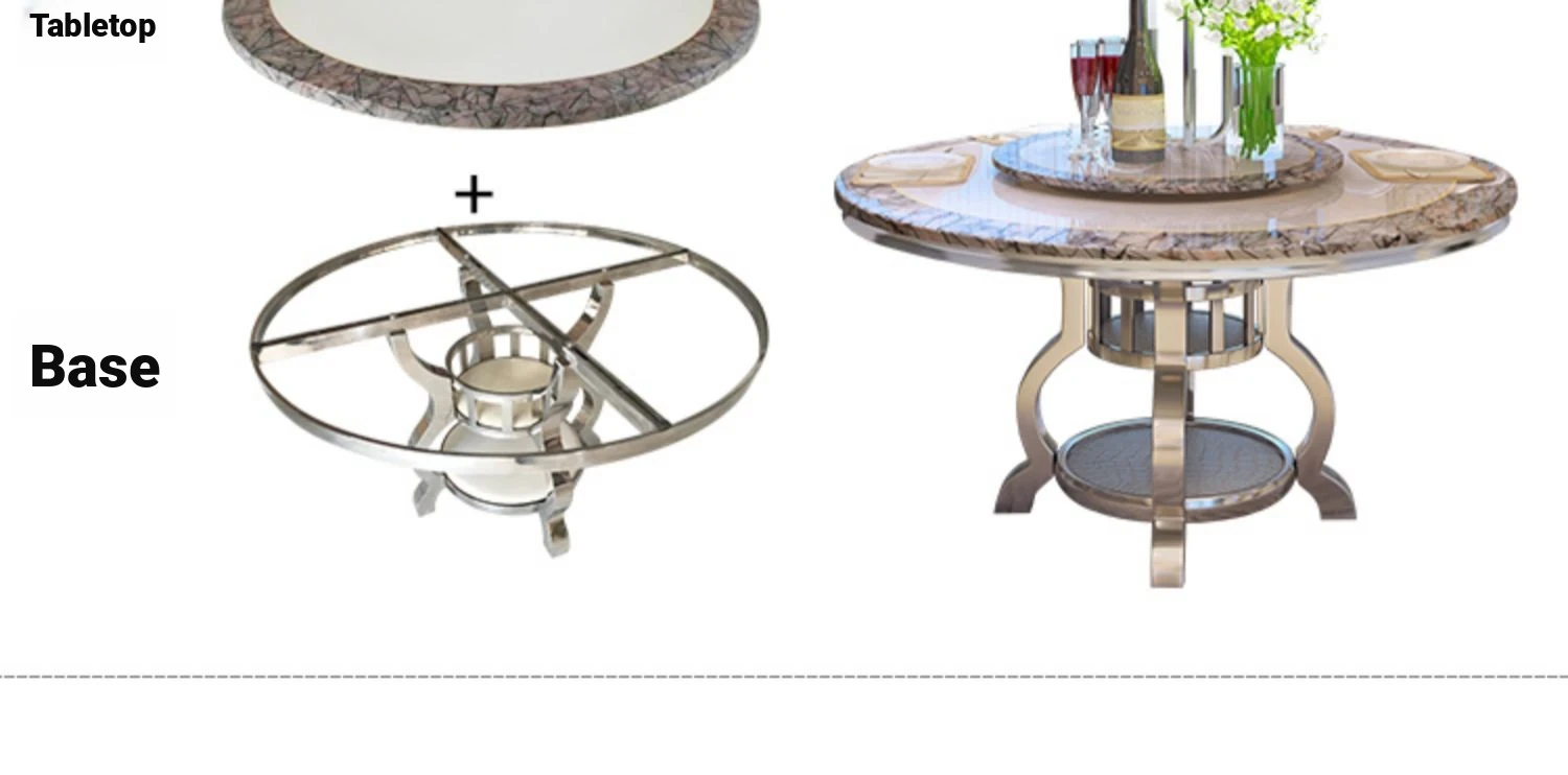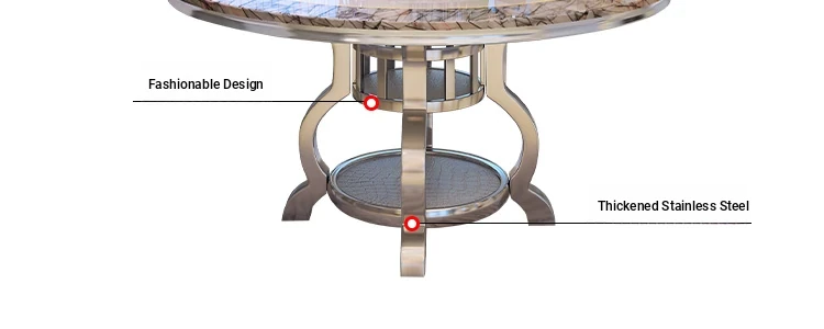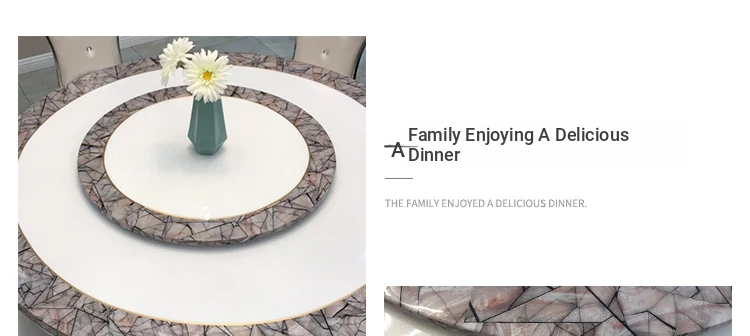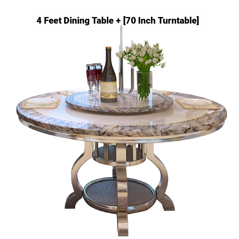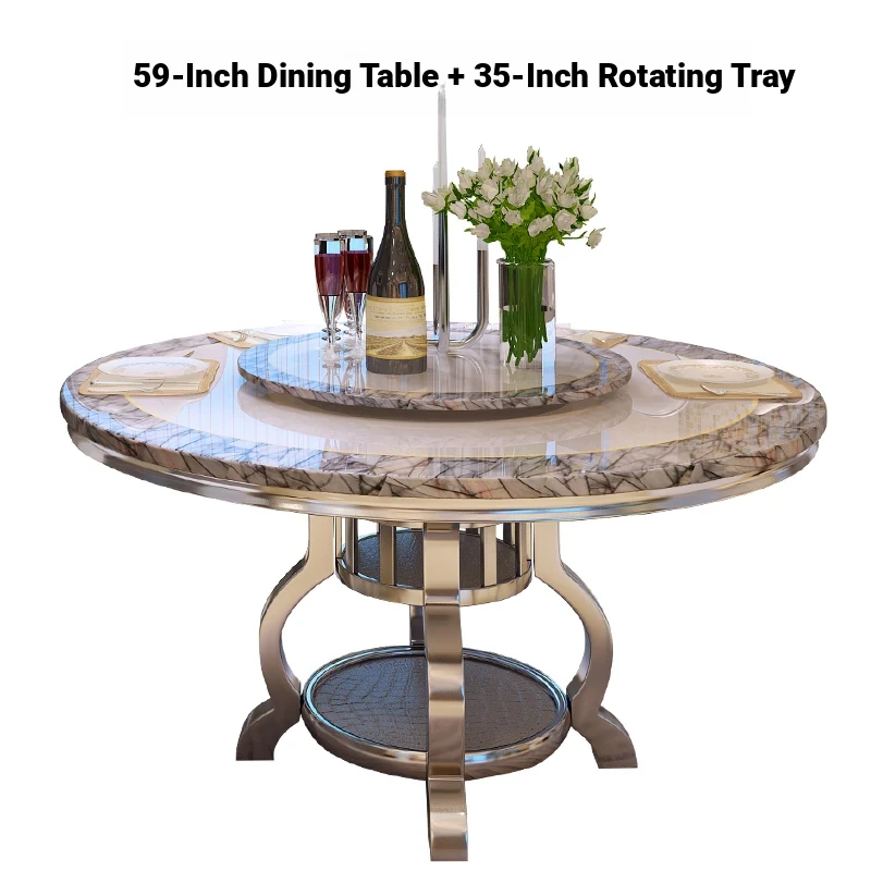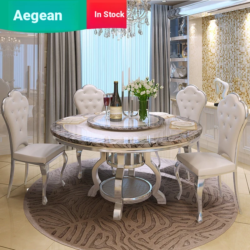 Modern European Marble Dining Table Set with Rotating Center, Stainless Steel Round Table and Chairs - Stylish and Minimalist Design for Home Use