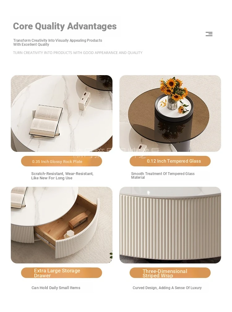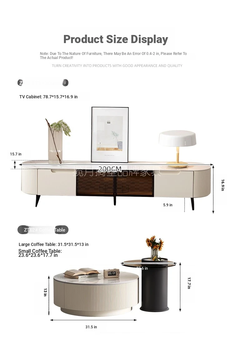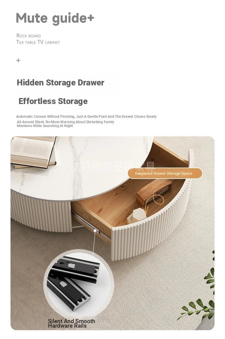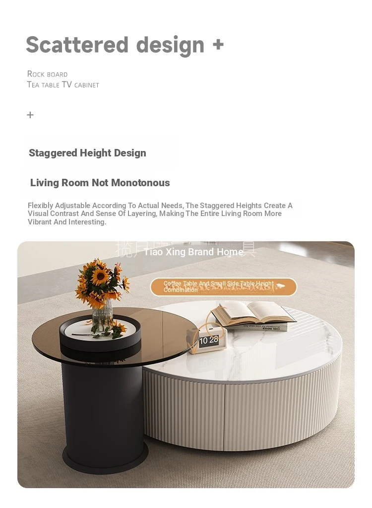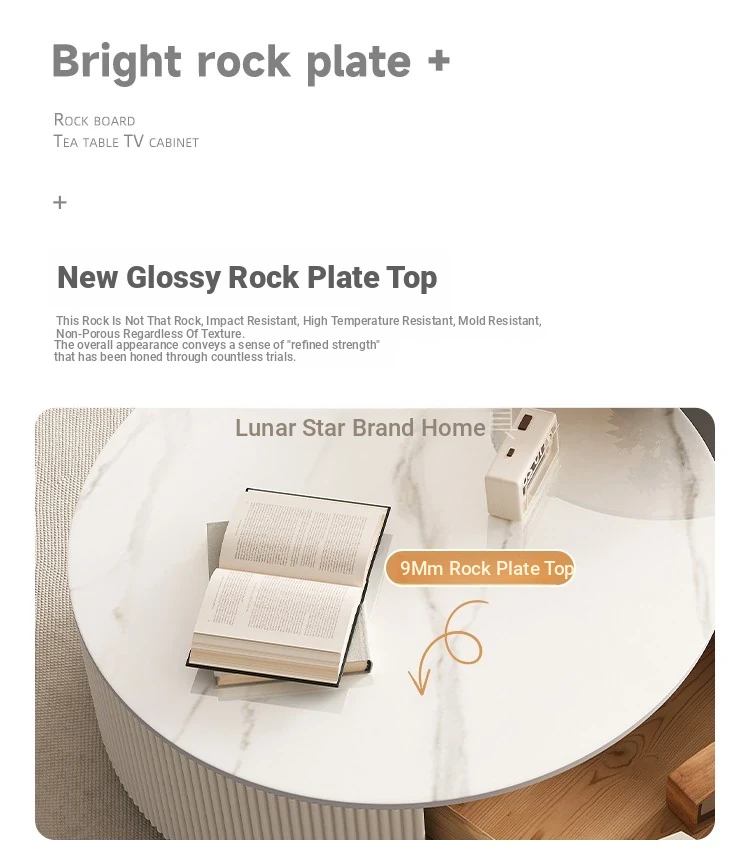Rock Slab Tv Cabinet + Large and Small Round Coffee Table Combination [Off-White]