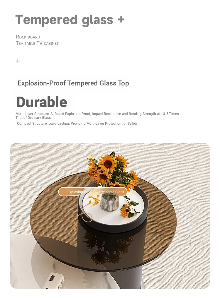Rock Slab Coffee Table Large Round + 3C Tempered Glass Small Round [Khaki Color]