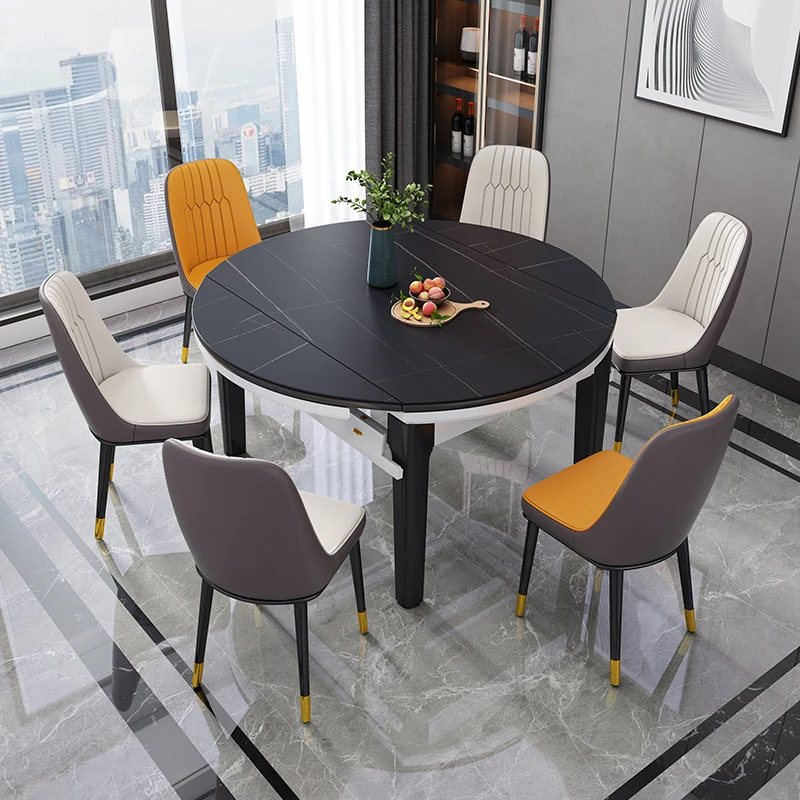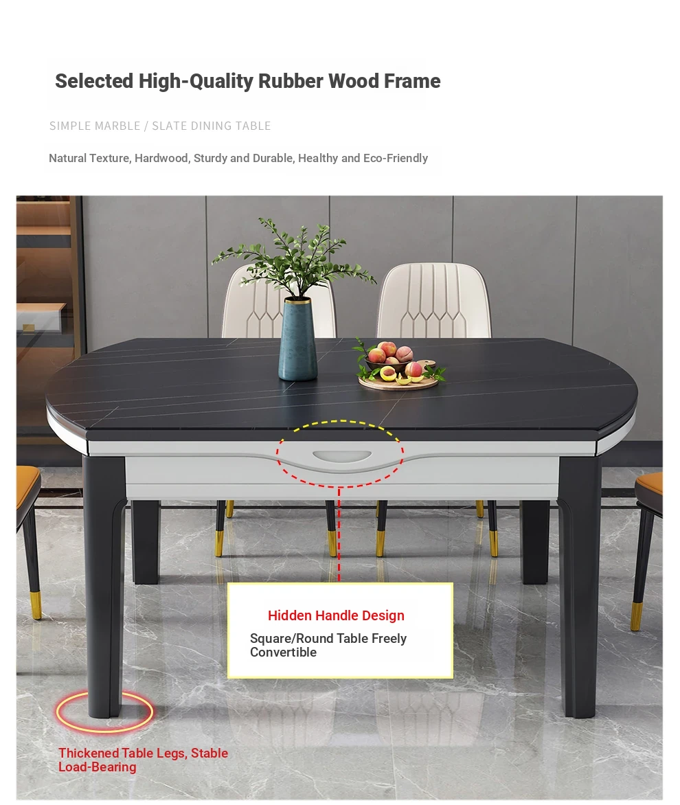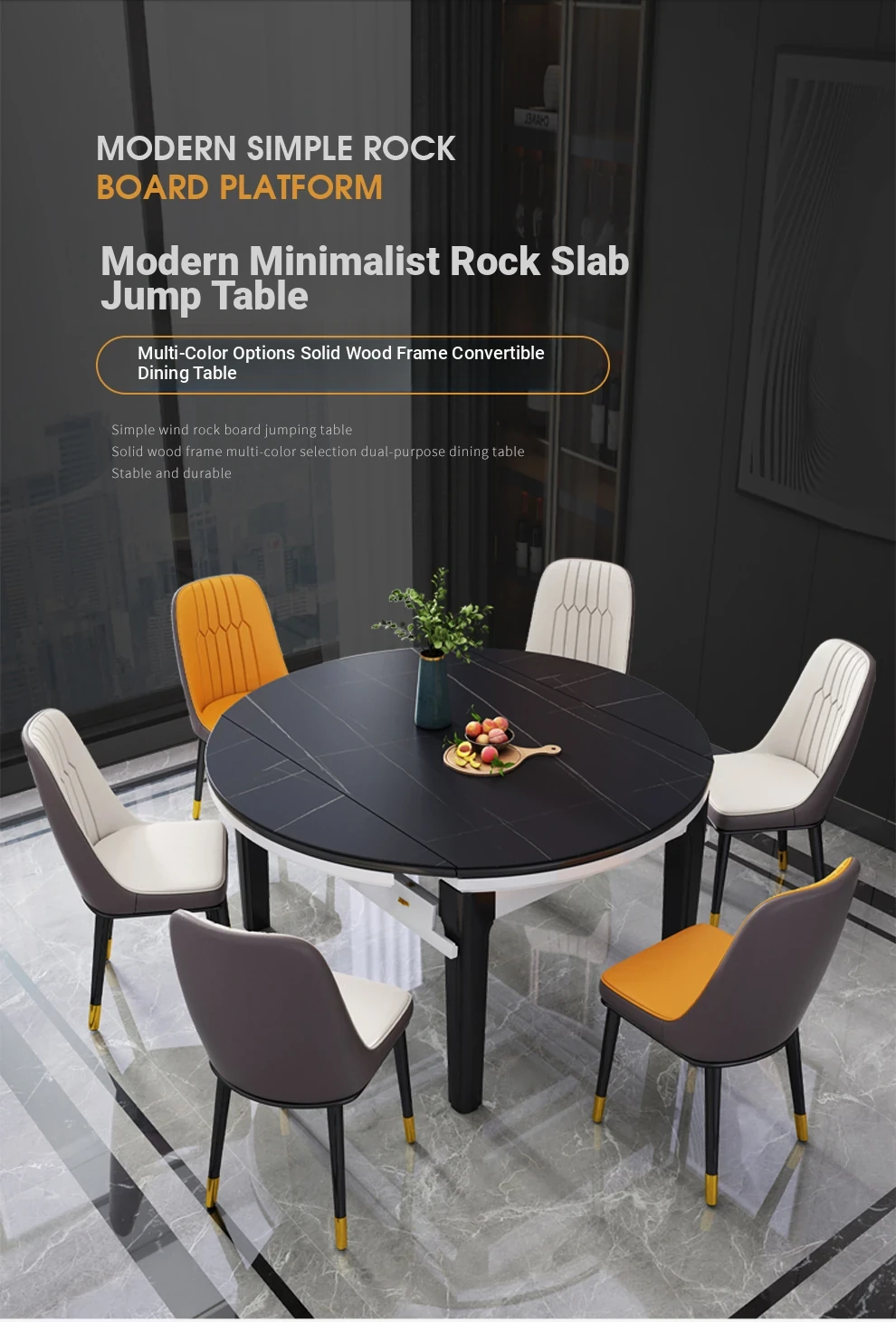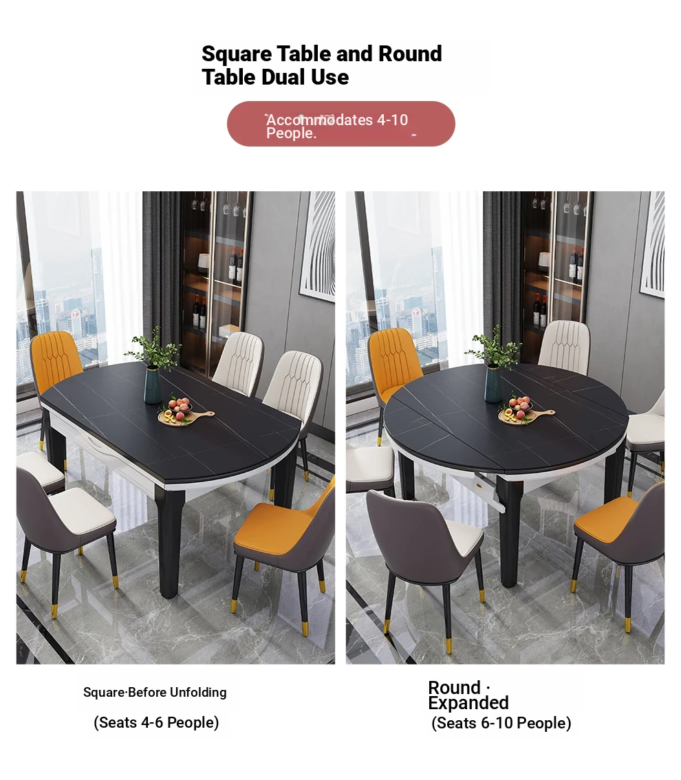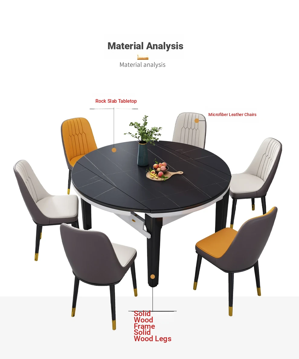 Modern Luxury Expandable Rock Plate Dining Table - Versatile Round and Square Design for Small Spaces, Featuring Solid Wood Dining Table and Chair Set