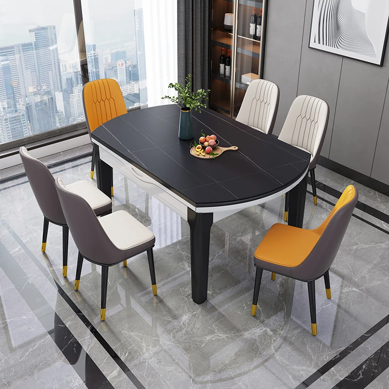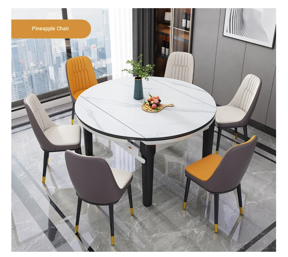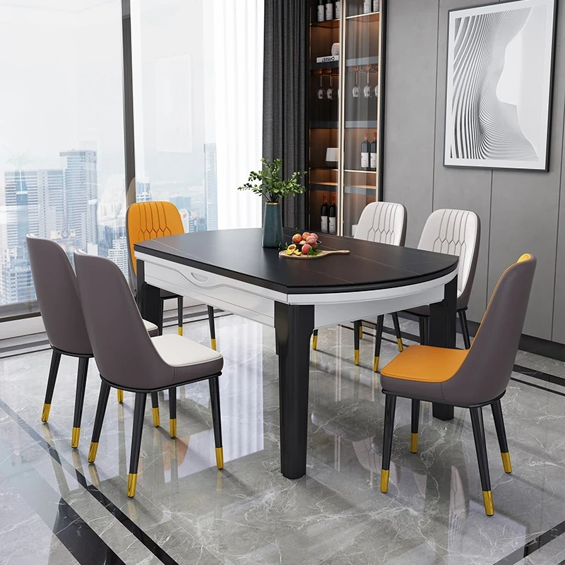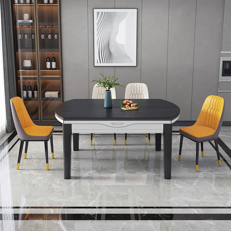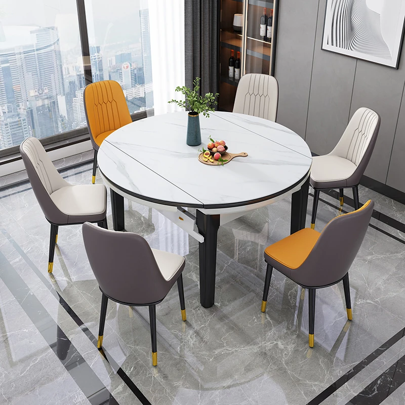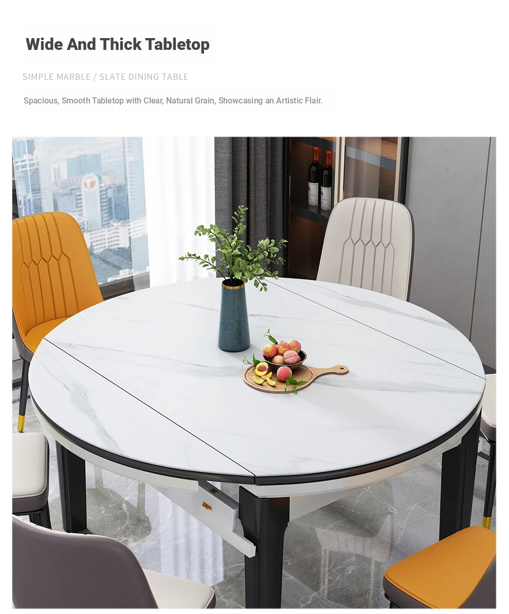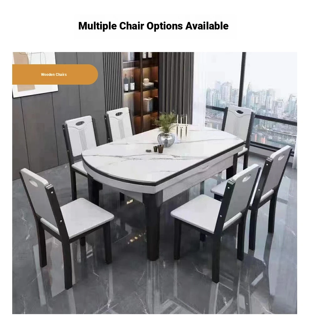 Modern Luxury Expandable Rock Plate Dining Table - Versatile Round and Square Design for Small Spaces, Featuring Solid Wood Dining Table and Chair Set