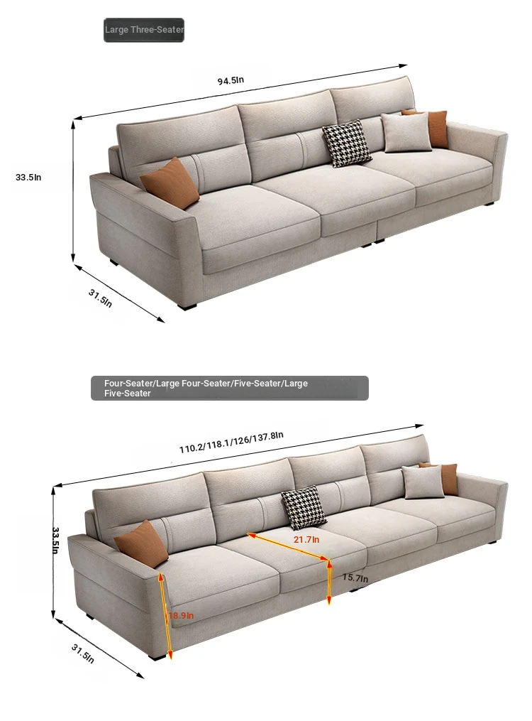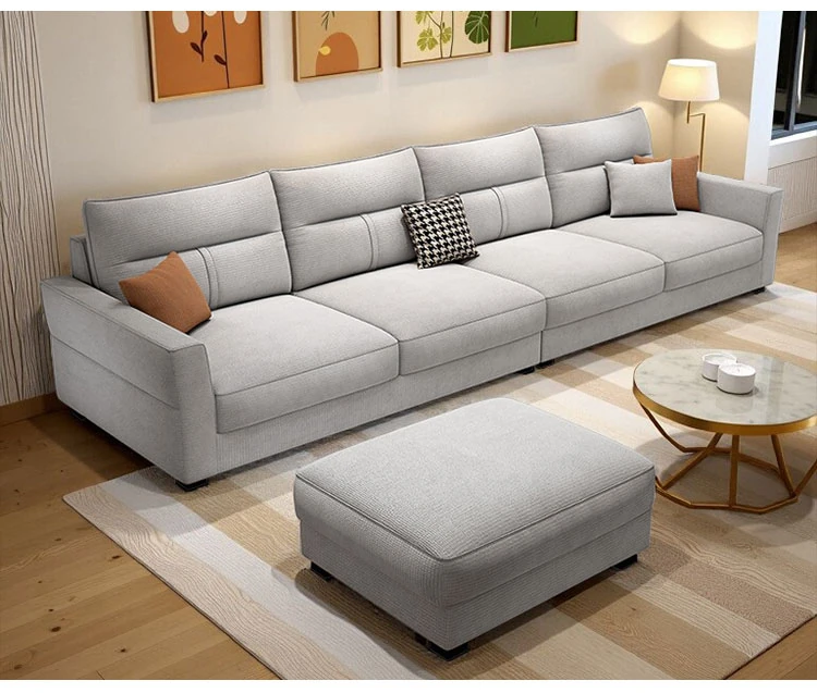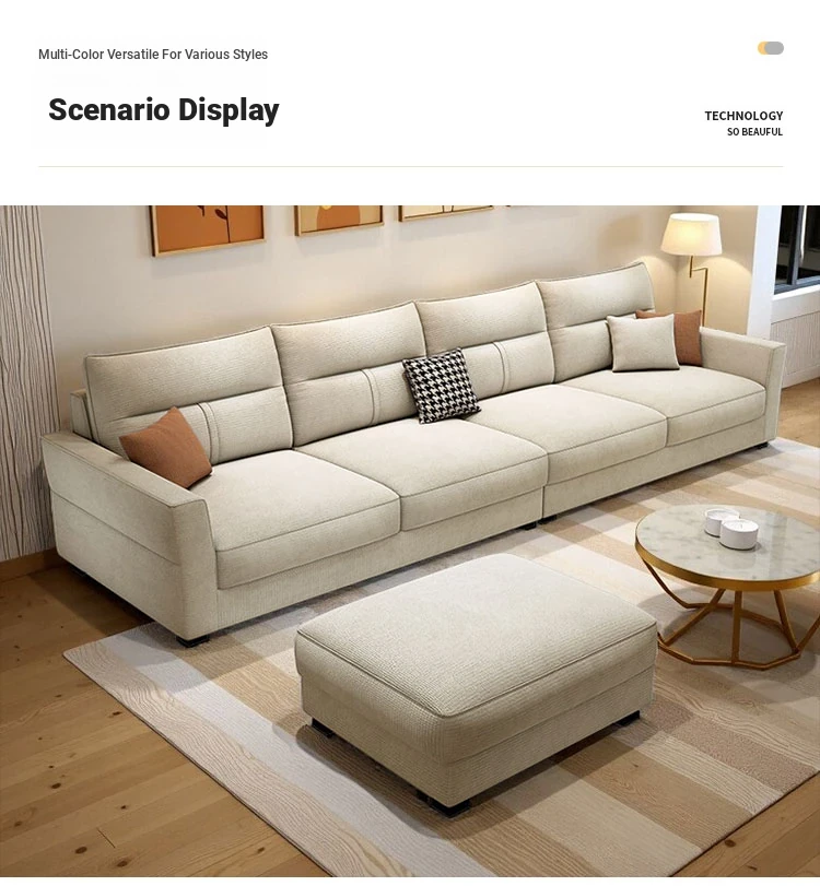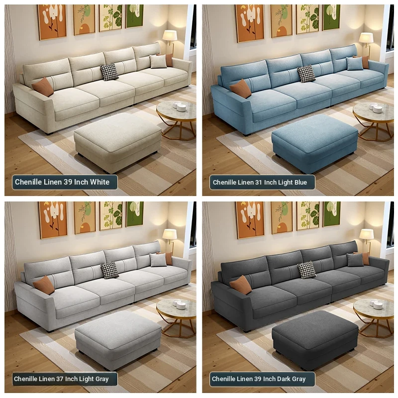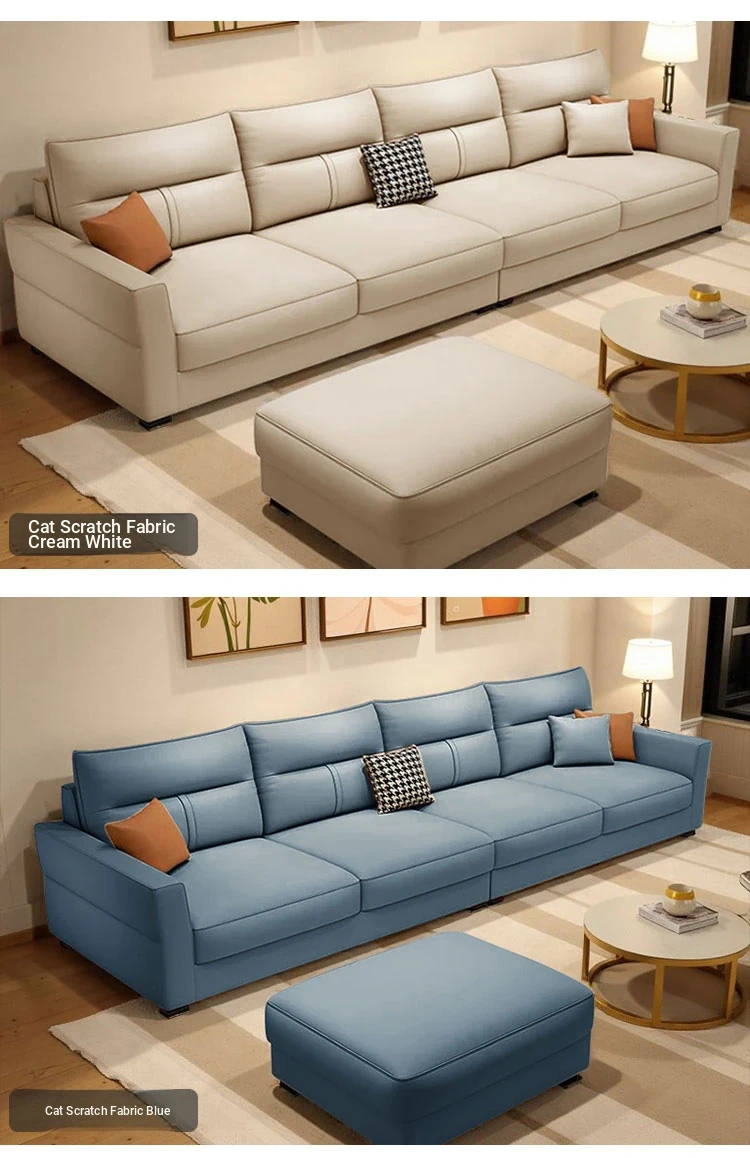 Modern Minimalist Cream Cotton Linen Fabric Sofa for Small Living Rooms - 2025 New Style, 4-Seater, Straight Design, Removable and Washable