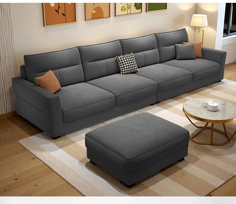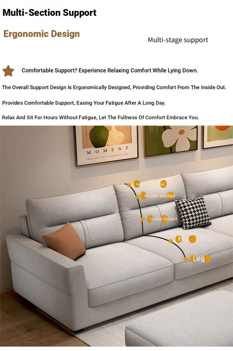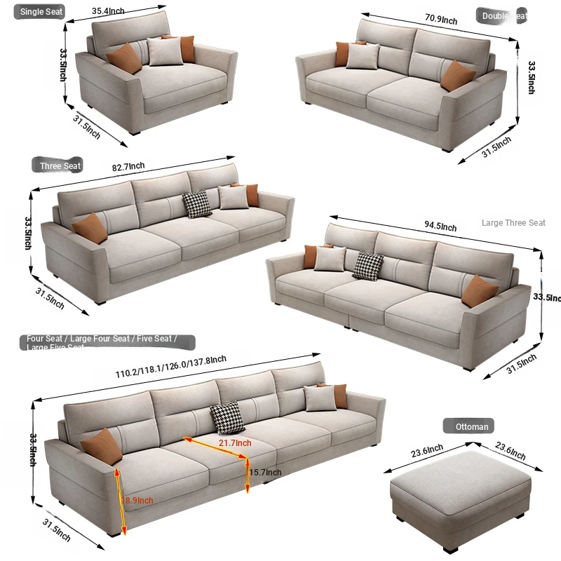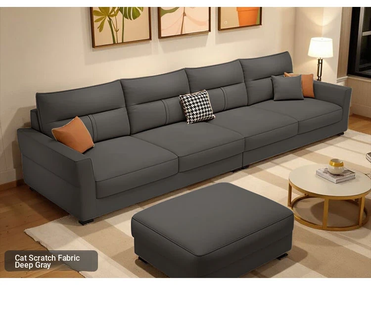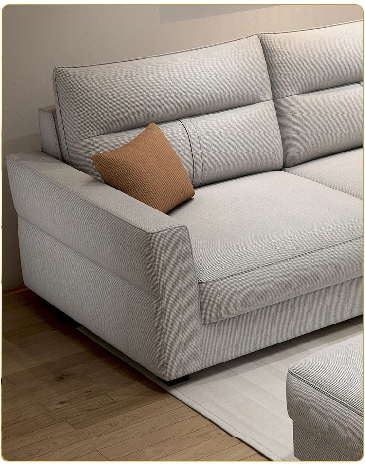 Modern Minimalist Cream Cotton Linen Fabric Sofa for Small Living Rooms - 2025 New Style, 4-Seater, Straight Design, Removable and Washable