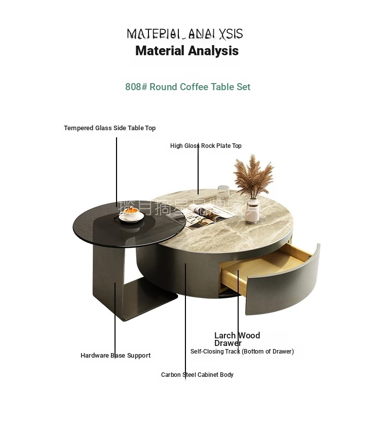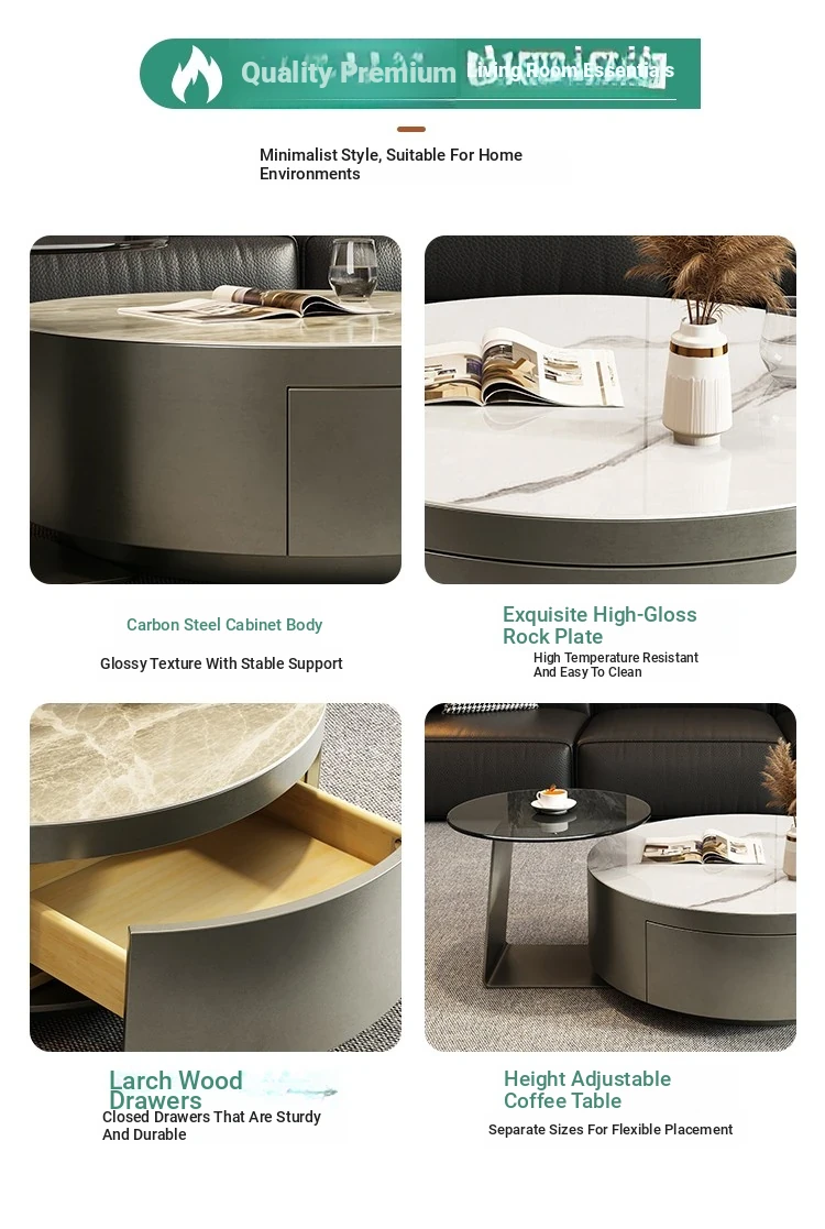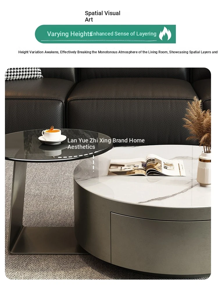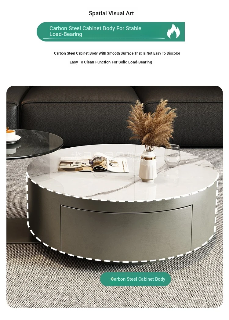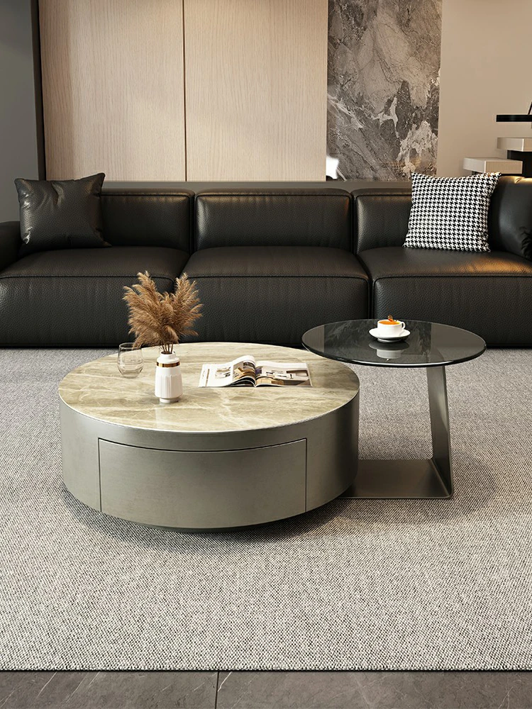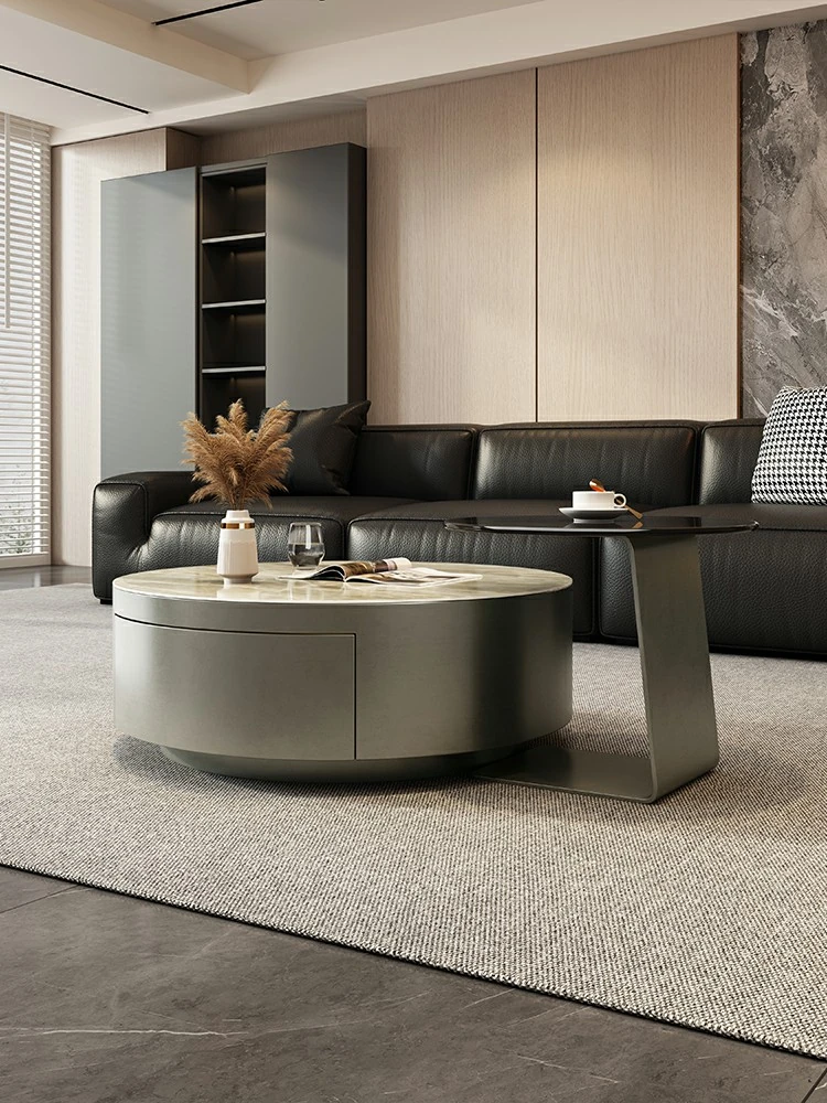 Modern Minimalist Round Coffee Table with Drawers - Italian Luxury Design for Small Living Spaces, Perfect for Your Home