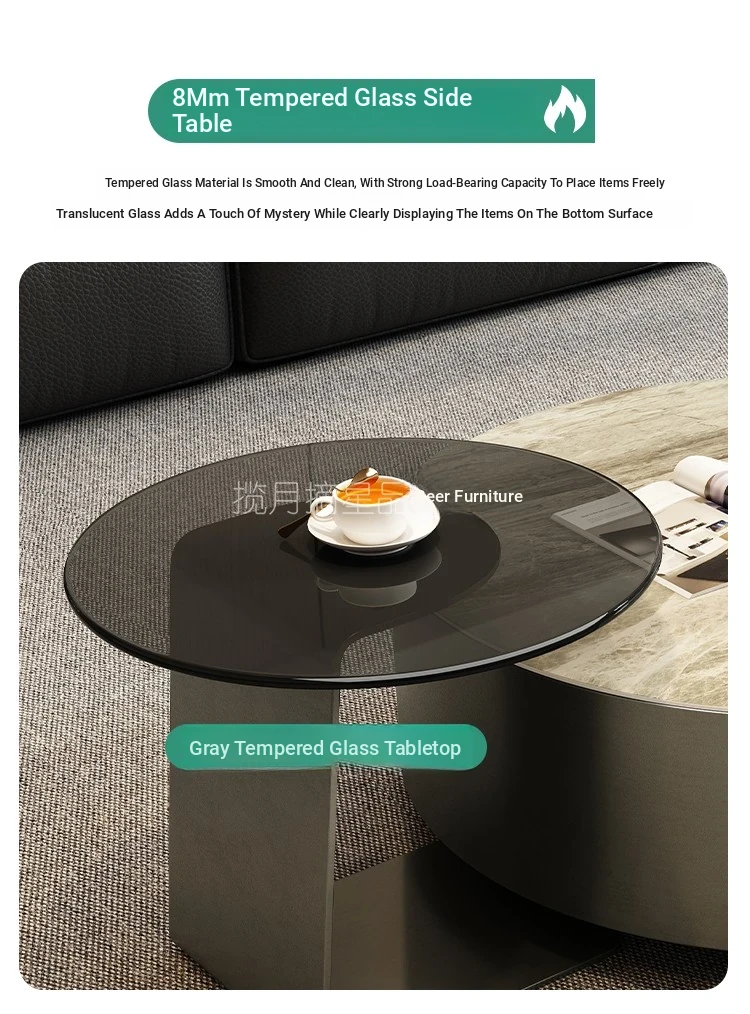 40Cm+80Cm Round Coffee Table [Italian Gray Stone Plate]