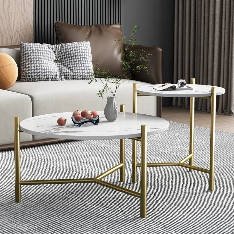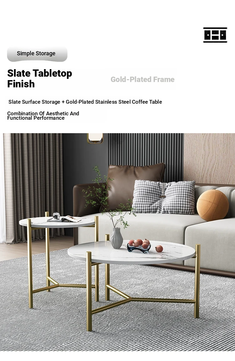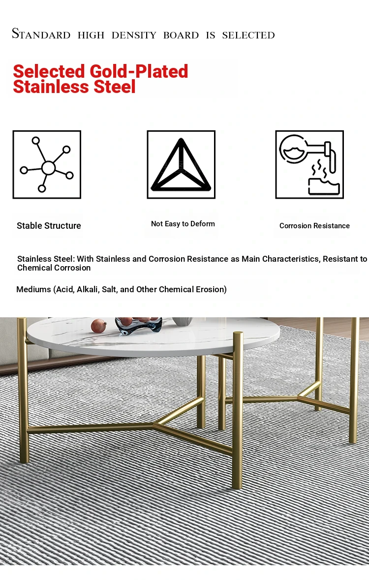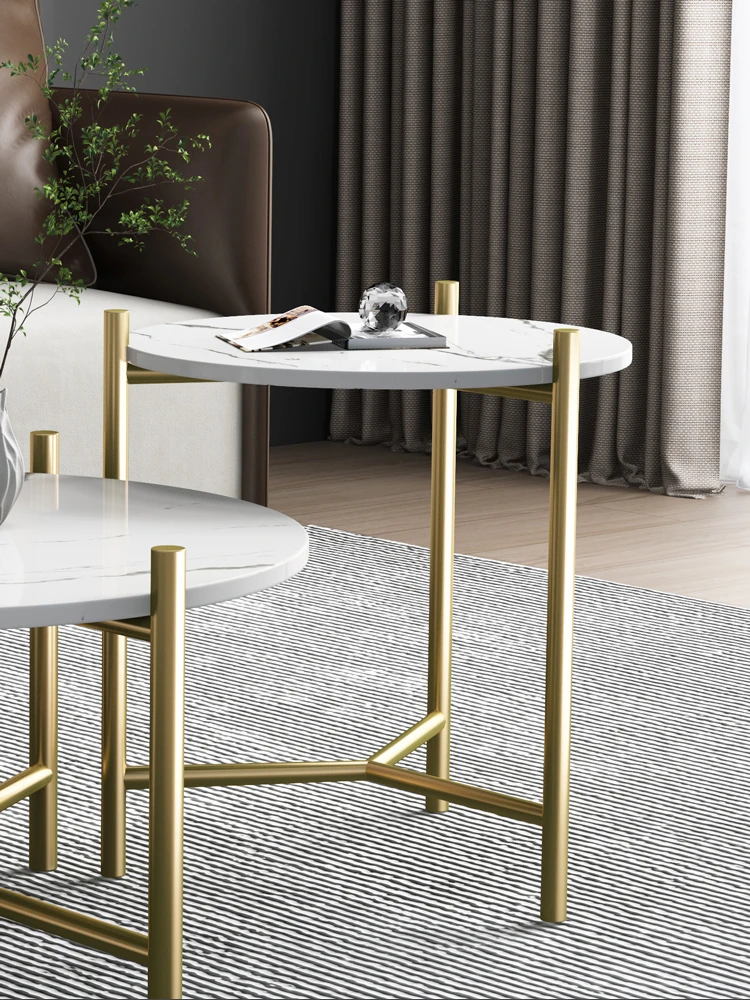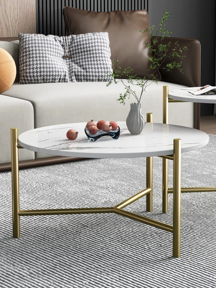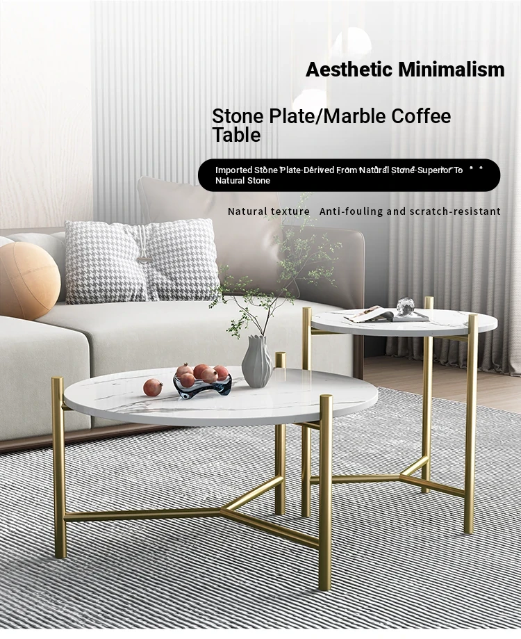 Modern Minimalist Round Coffee Table with Gold Plating - Unique Stainless Steel Design for Small Living Rooms, Perfect for Contemporary Spaces.