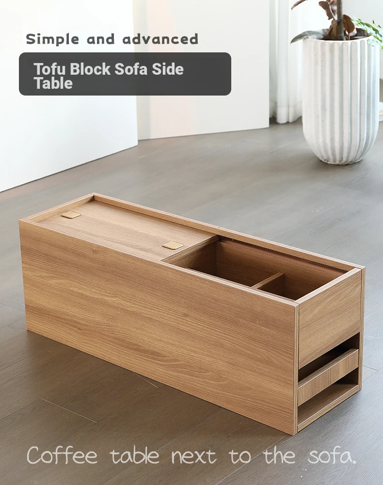 Modern Minimalist Tofu Block Sofa Side Table and Piedmont Square Coffee Table - Stylish Corner Table with Storage Cabinet for Tea and Snacks