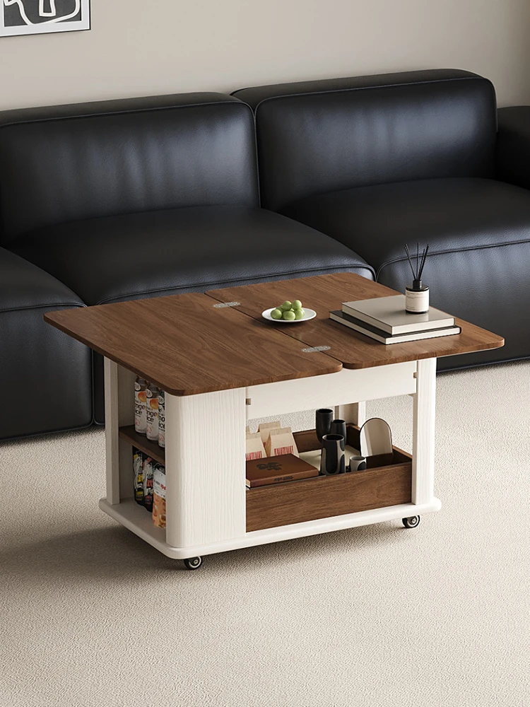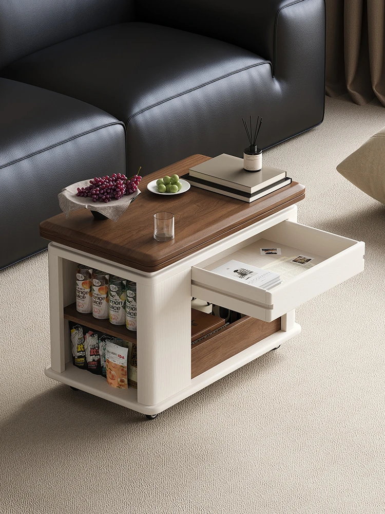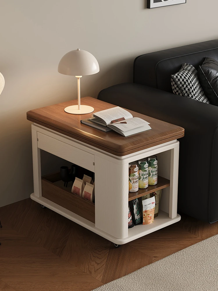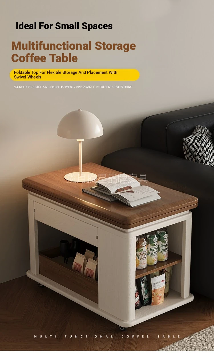 Modern Movable Solid Wood Coffee Table - Versatile Folding Side Table for Small Living Rooms, Ideal for Sofa Side or Cart Use