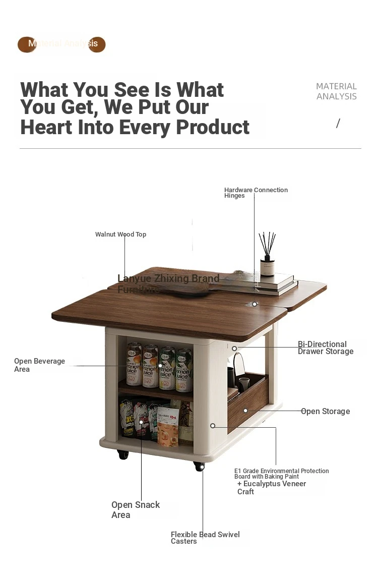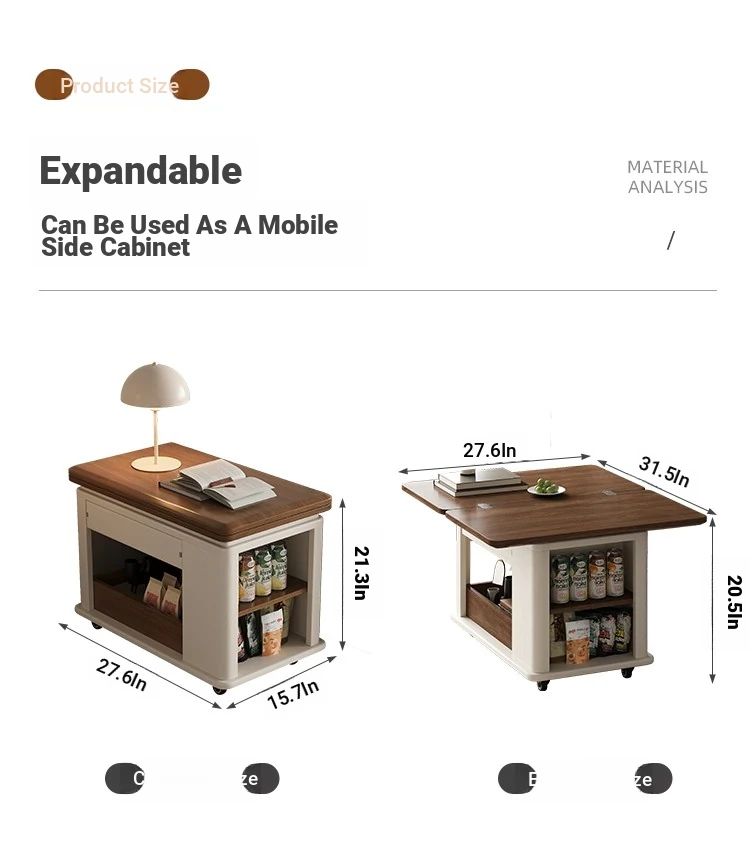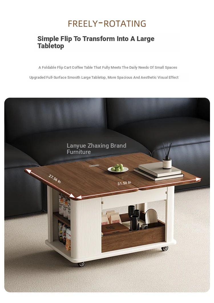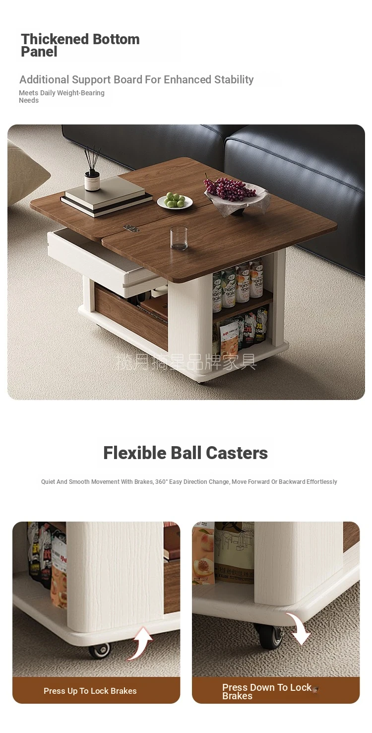 Modern Movable Solid Wood Coffee Table - Versatile Folding Side Table for Small Living Rooms, Ideal for Sofa Side or Cart Use