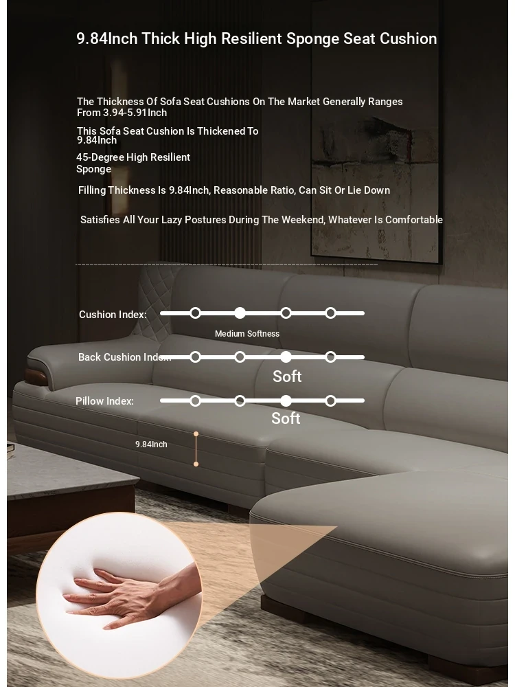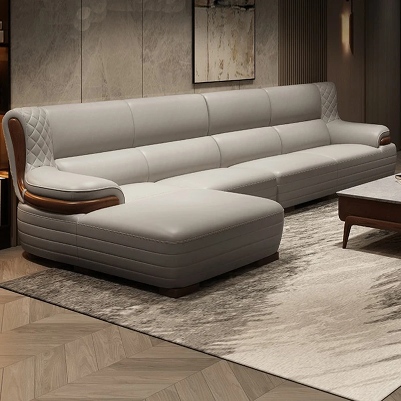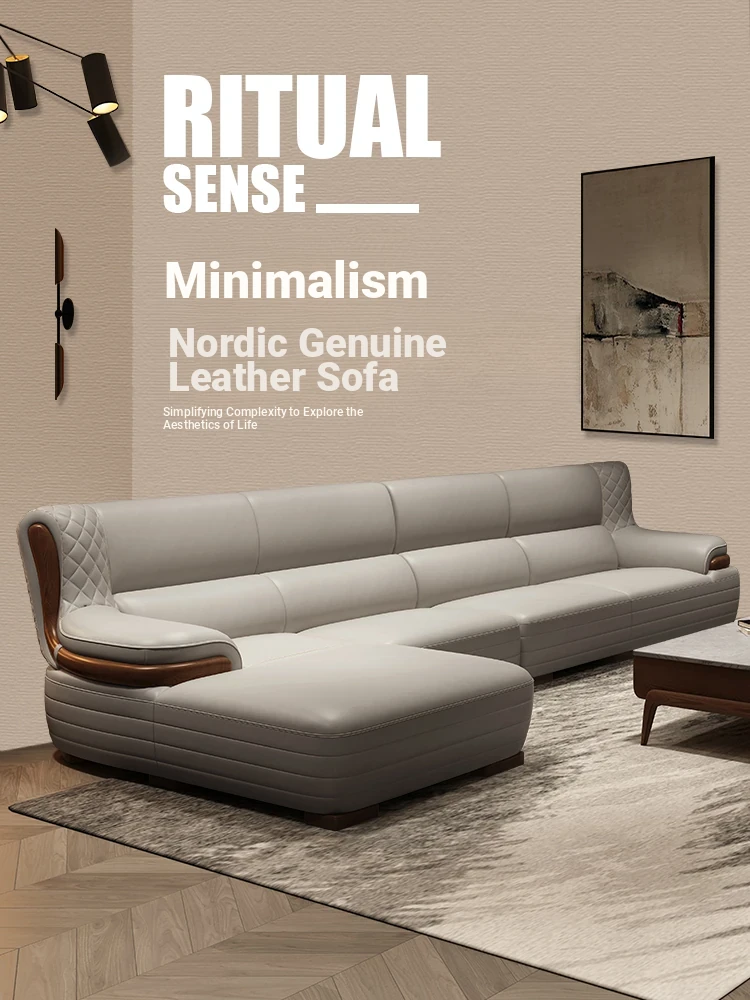 Nordic Genuine Leather Sofa - Modern Italian Corner Chaise Lounge in Top-Grain Cowhide for Small Living Rooms, Featuring Solid Wood Frame