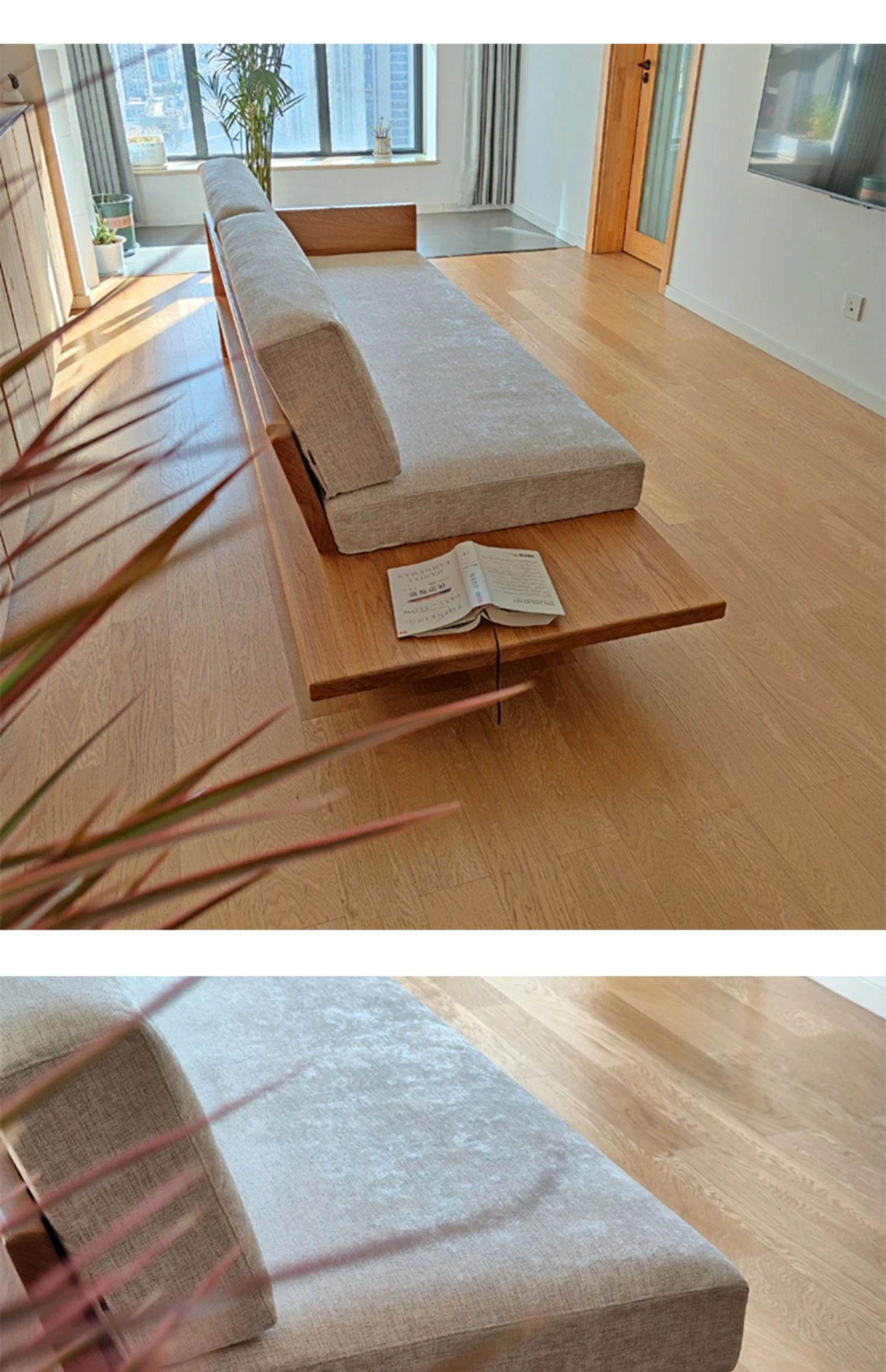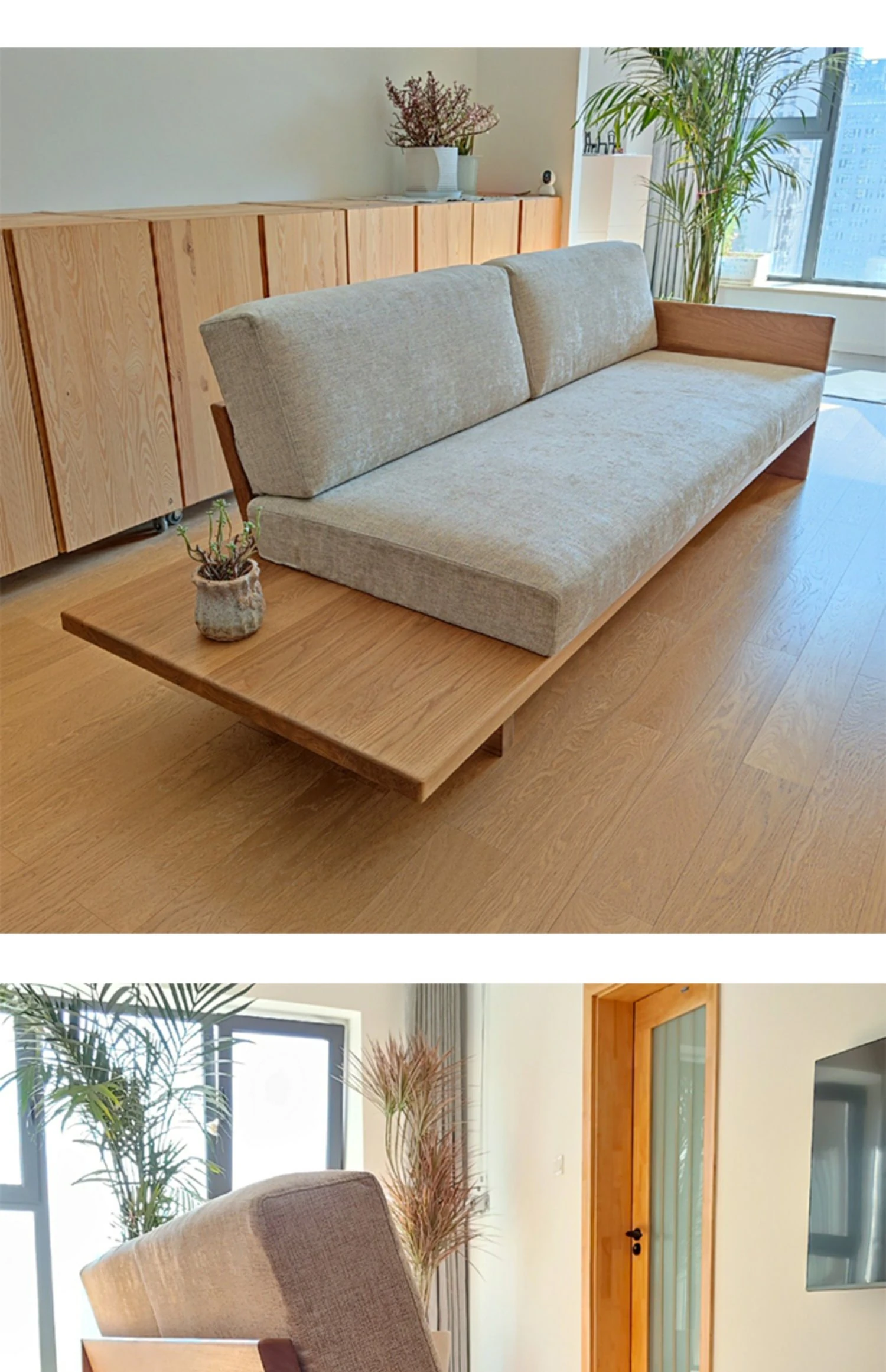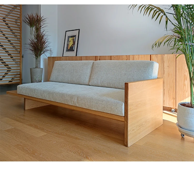 Nordic Small Space Japanese Solid Wood Sofa - Wabi-Sabi Style Washable Fabric for Modern Living Room, Perfect for Airbnb and Cozy Gatherings - Seats Three Comfortably