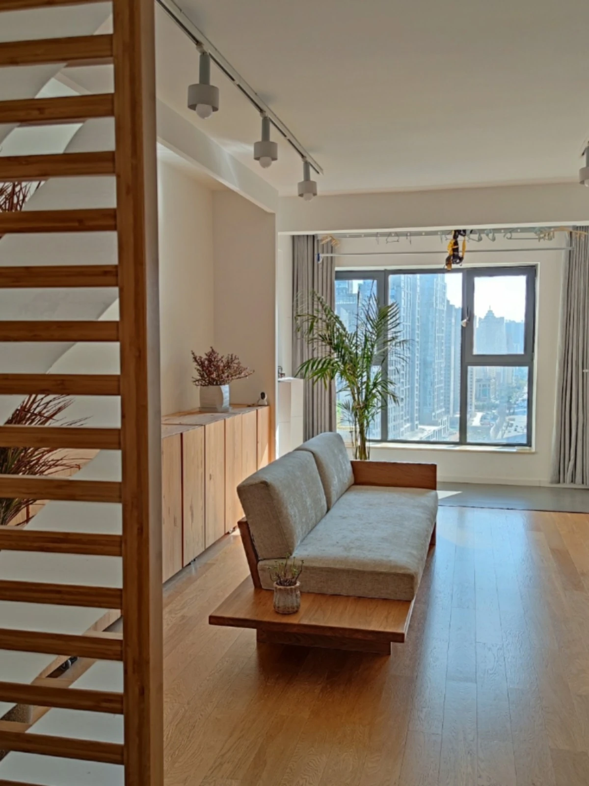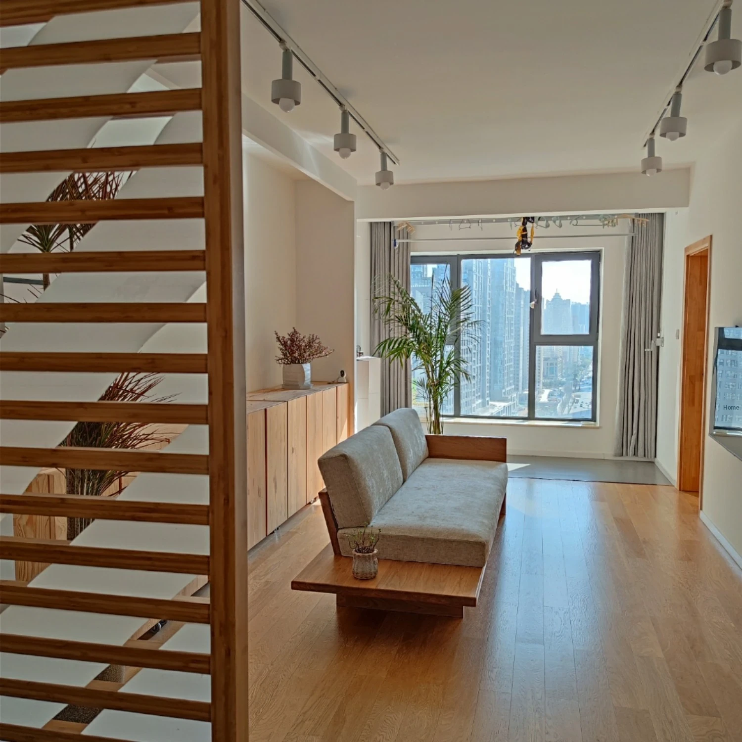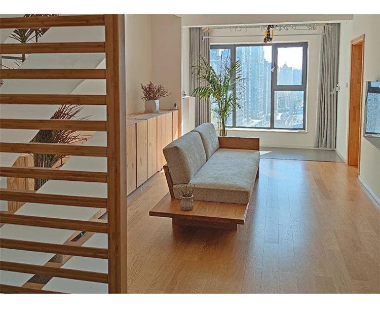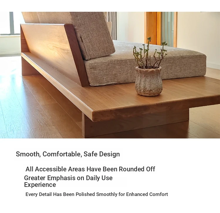 Nordic Small Space Japanese Solid Wood Sofa - Wabi-Sabi Style Washable Fabric for Modern Living Room, Perfect for Airbnb and Cozy Gatherings - Seats Three Comfortably