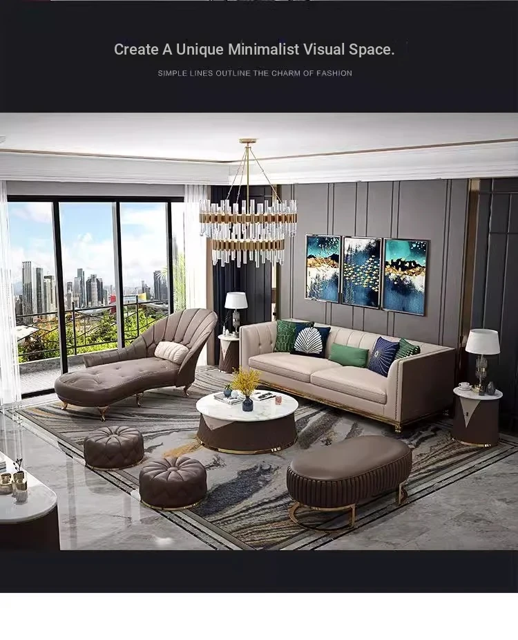 Paddy Li Italian Luxury Genuine Leather Sofa - Modern Minimalist Living Room Couch with Top-Grade Cowhide, Perfect for Home Use, Includes Coffee Table.