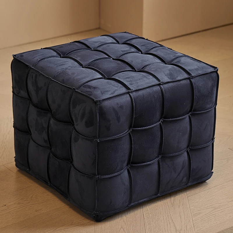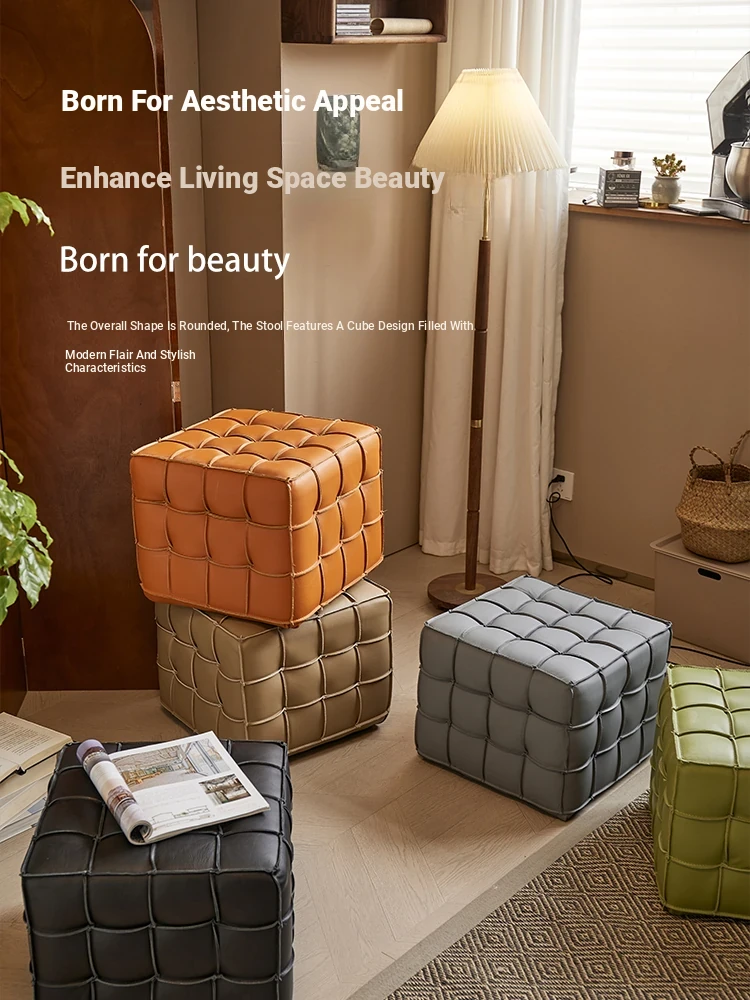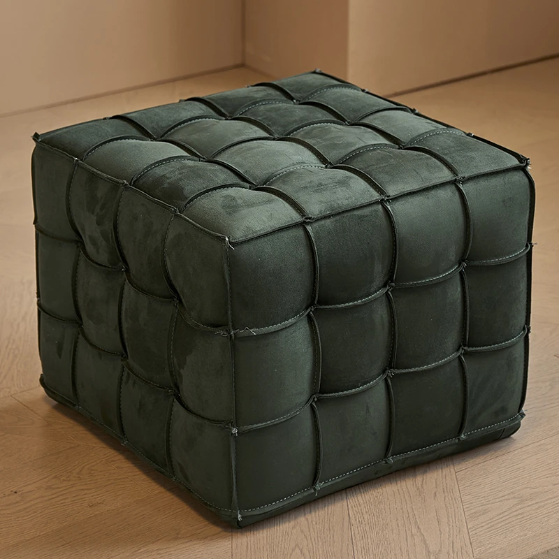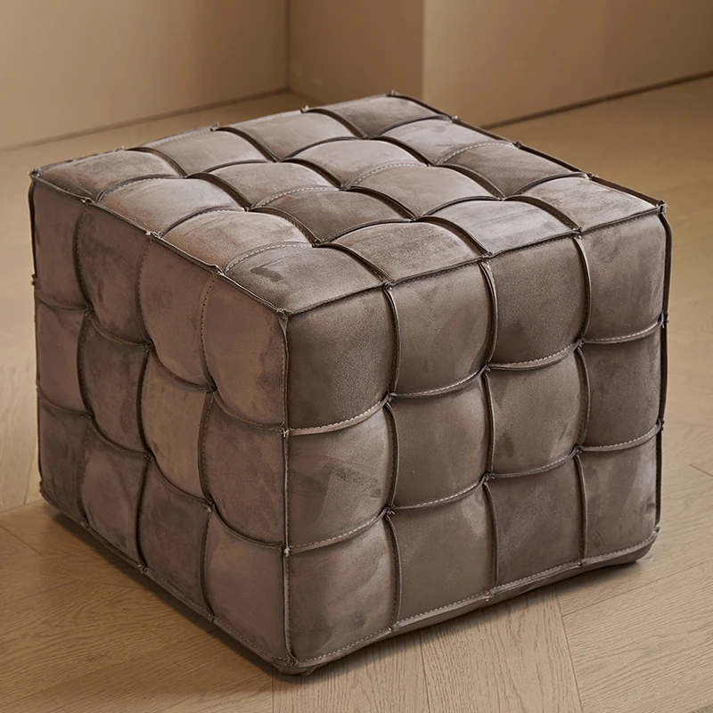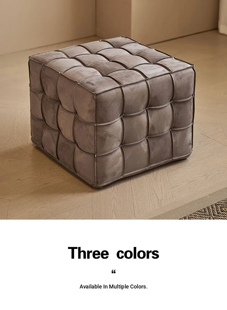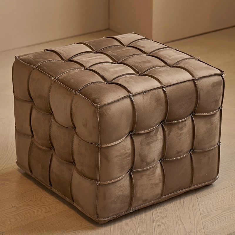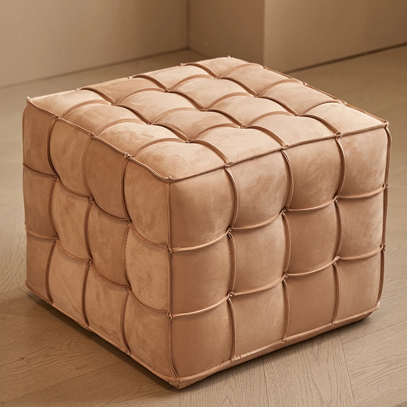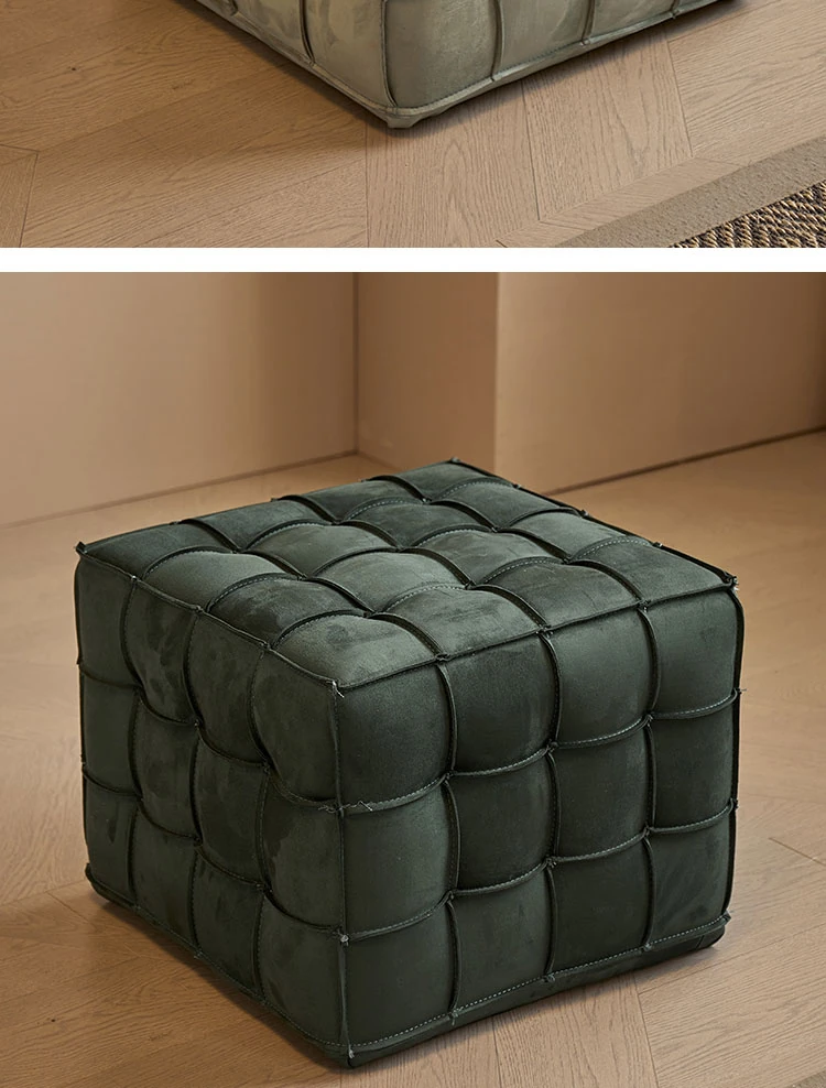 Stylish Velvet Upholstered Cube Ottoman - Versatile Genuine Leather Footstool for Dressing Room, Makeup, and Shoe Changing - Perfect for Home Decor and Comfort